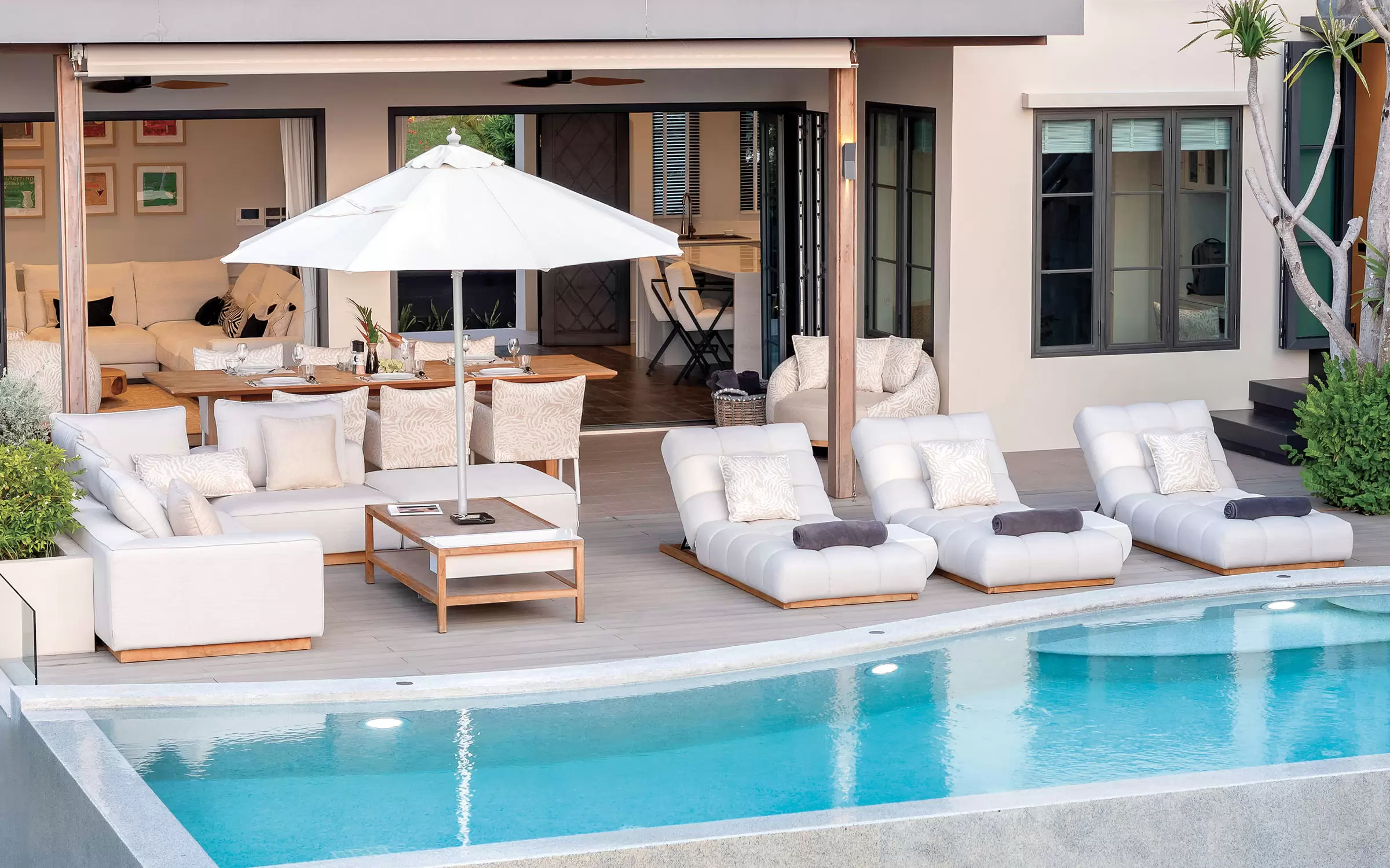 - Komfort: grube poduszki z szybkoschnącą pianką