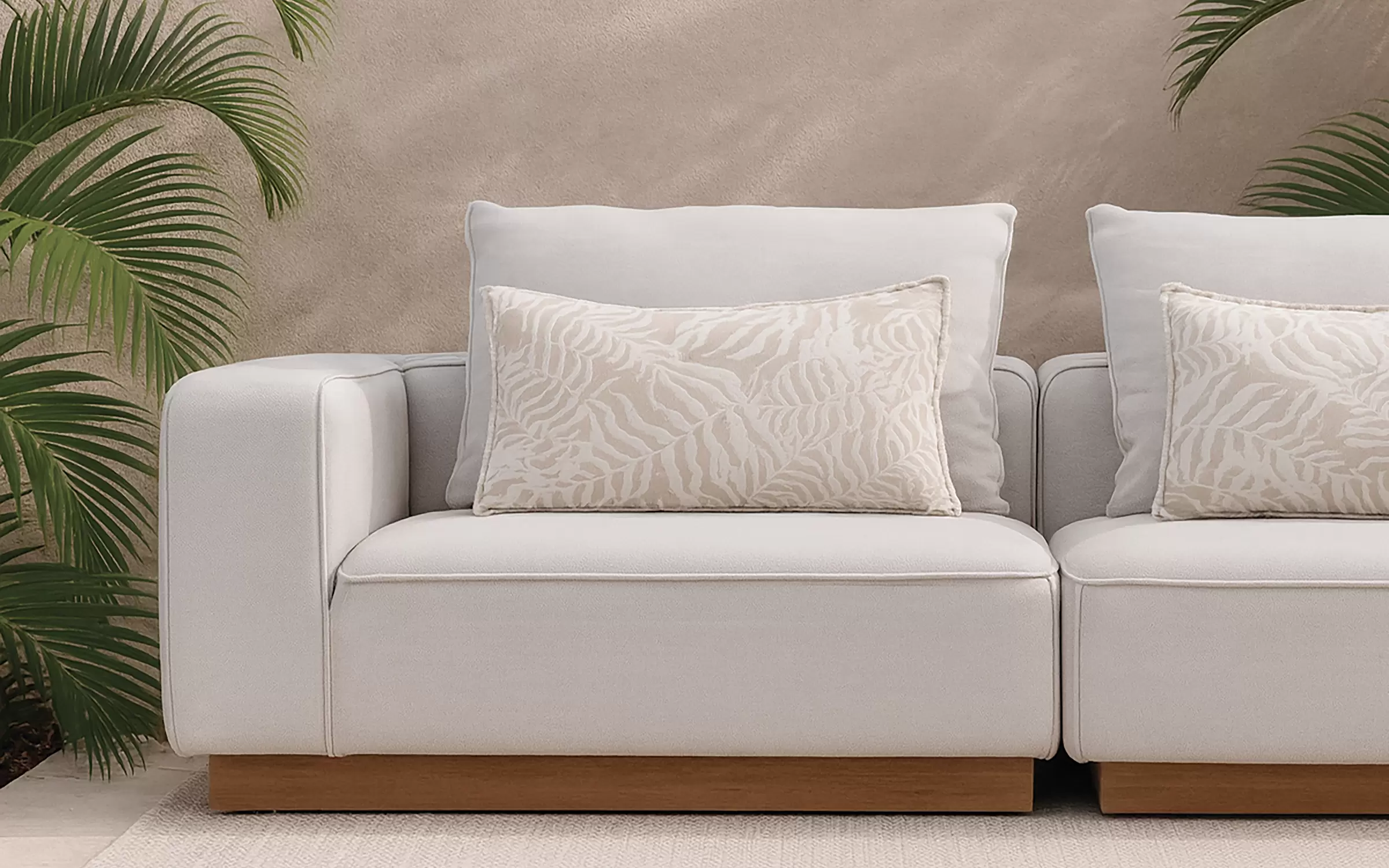 Poduszki z tkaniny akrylowej Olefin, wypełnione szybkoschnącą pianką quick dry foam. Materiały odporne na wilgoć, promieniowanie UV i warunki atmosferyczne.