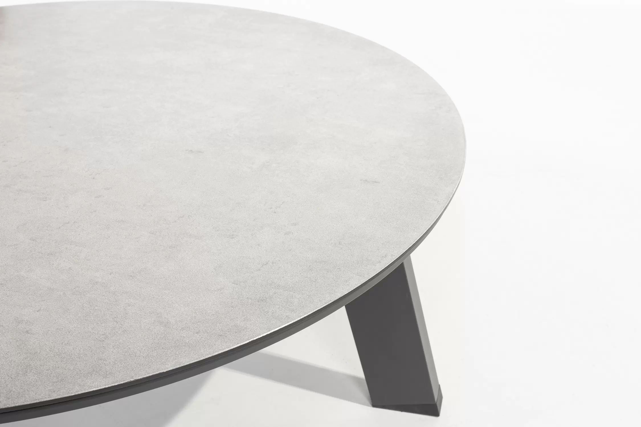 Podstawa stolików Emma składa się z trzech aluminiowych nóg, które rozchodzą się na zewnątrz.
