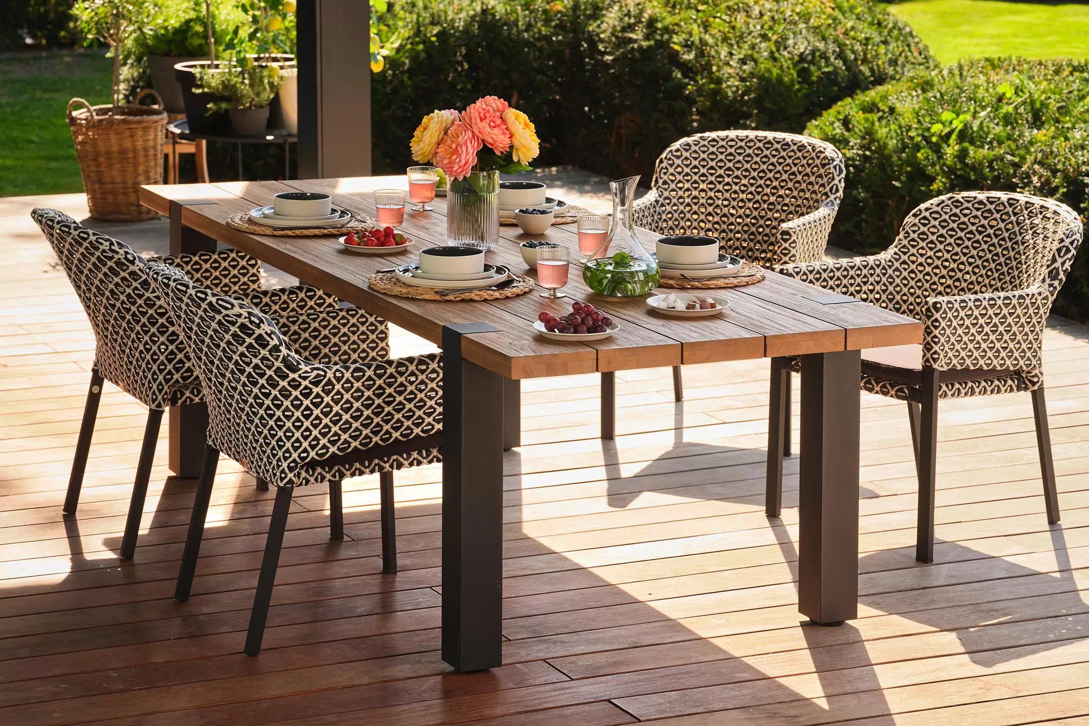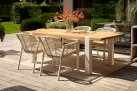 Trwałość i łatwa pielęgnacja. Dzięki zastosowaniu wysokiej jakości materiałów stół Hartman Esmee wyróżnia się odpornością na warunki atmosferyczne i długowiecznością. Aluminiowa rama jest lekka, a zarazem stabilna, natomiast blat z drewna teakowego wprowadza ciepło i przytulny klimat, a przy tym jest prosty w konserwacji. Przy minimalnym nakładzie pracy stół zachowa swój urok przez wiele lat.