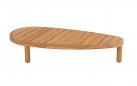 Stolik kawowy na taras z drewna tekowego ma solidną podstawę i blat w kształcie otoczaka o wymiarach 125 x 63 i wysokości 25 cm. Drewno tekowe jest znane z tego, że jest trwałe i solidne, więc możesz spodziewać się, że będziesz cieszyć się tym pięknym stołem wypoczynkowym przez wiele lat.
