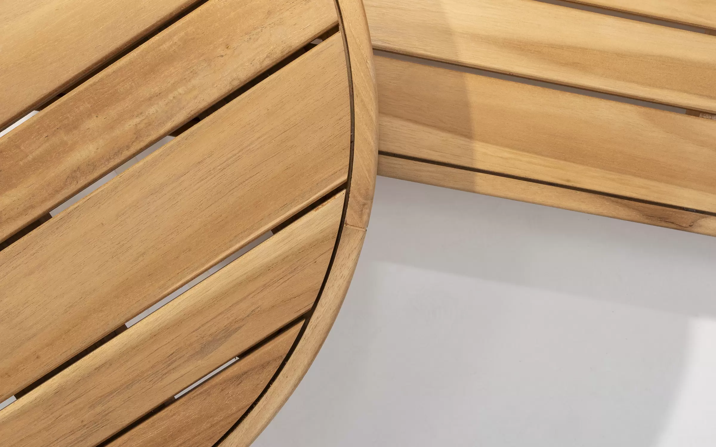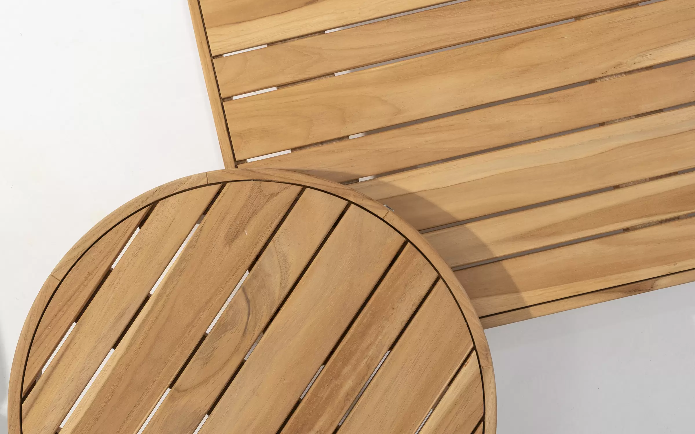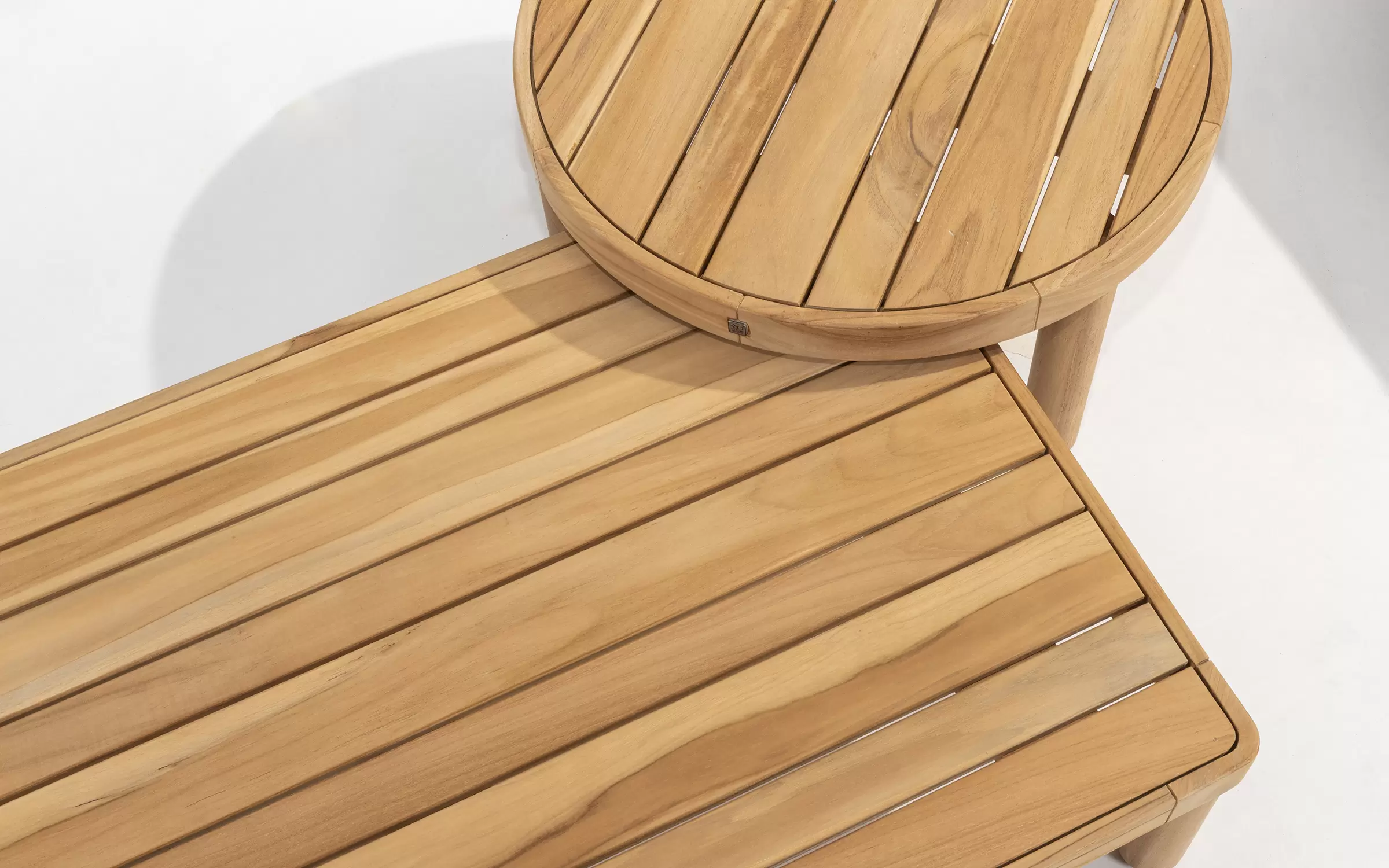 Drewno tekowe można doskonale łączyć z wieloma materiałami i kolorami. Stwórz zestaw z tego stolika kawowego Finn, wybierz kombinację dużego i/lub małego wariantu okrągłego lub prostokąta, aby uzyskać wyjątkowy dodatek do swojego zestawu wypoczynkowego.