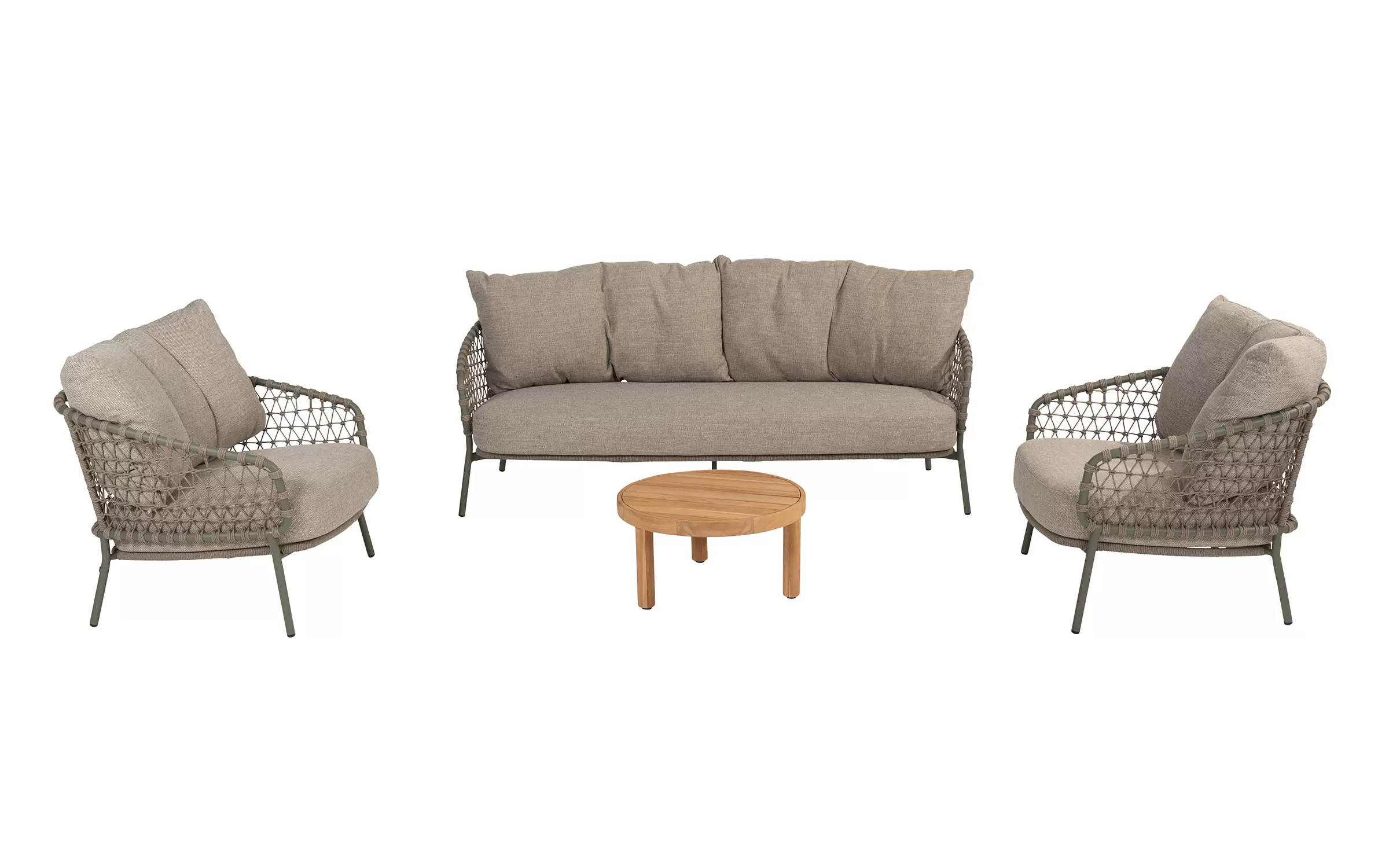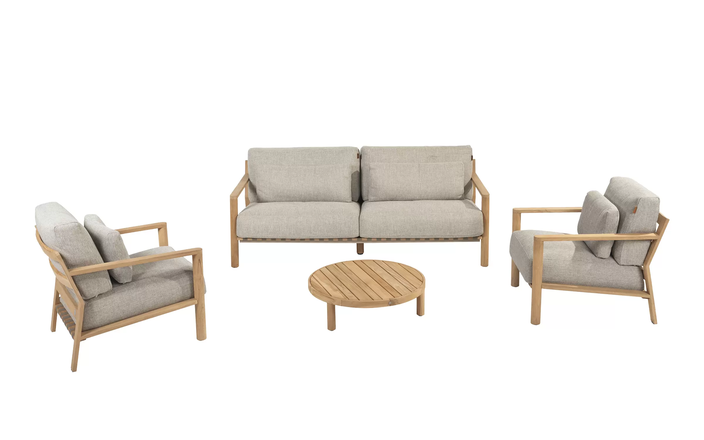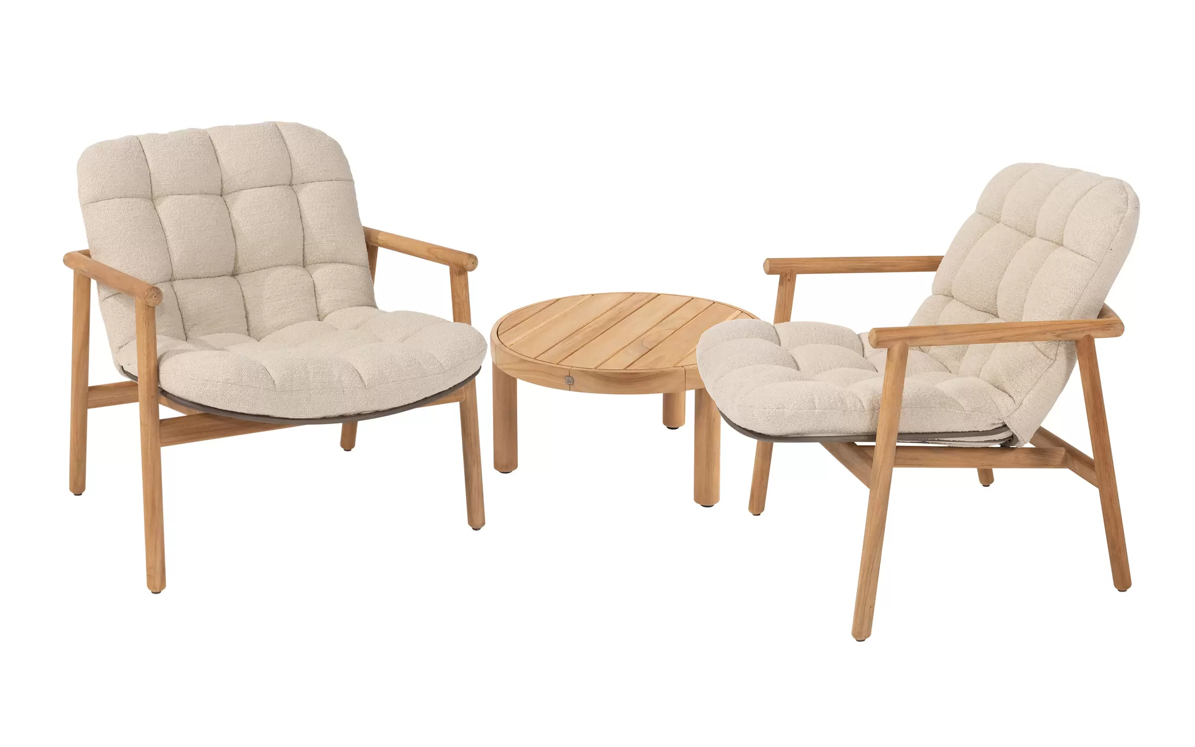 Okrągły stolik kawowy z drewna tekowego 4 Seasons Outdoor Finn można dodać do dużej części zestawów wypoczynkowych 4SeasonsOutdoor.