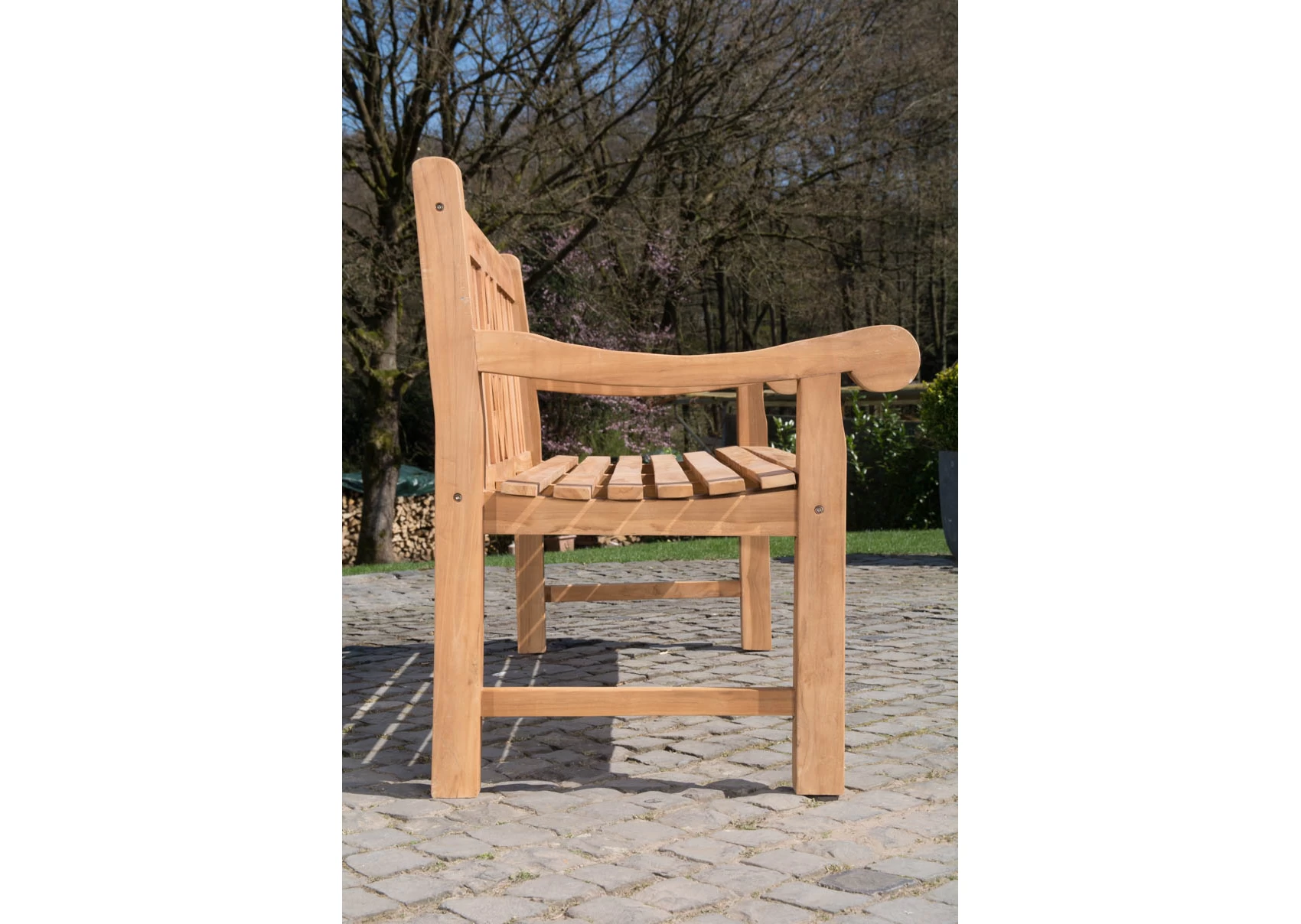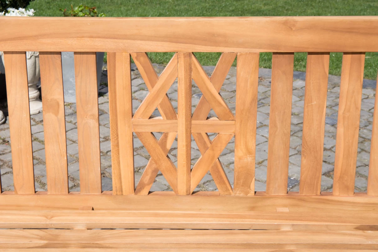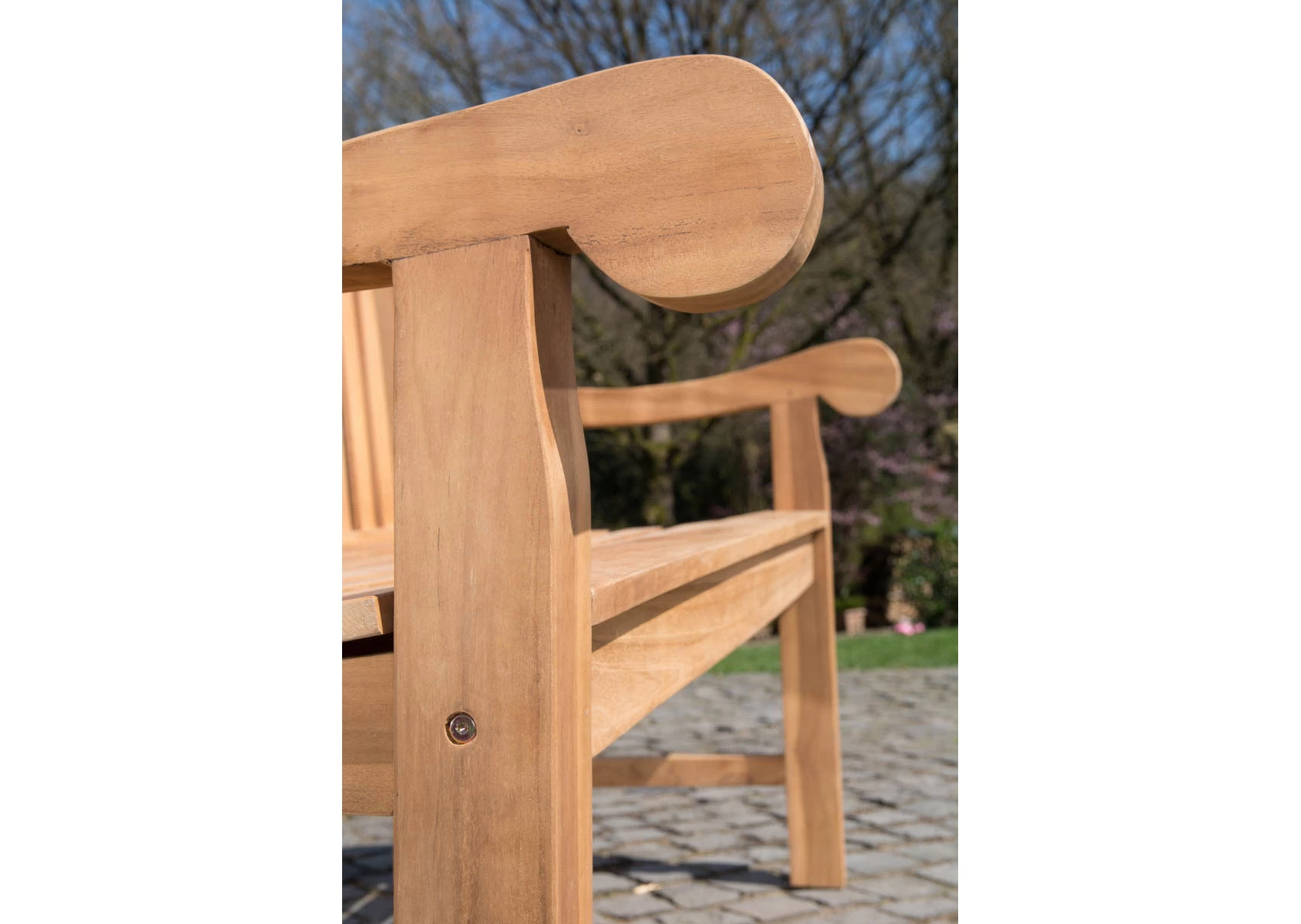 Solidna ławka z drewna tekowego. Dzięki ponadczasowej konstrukcji ławka ogrodowa doskonale pasuje do każdego otoczenia.