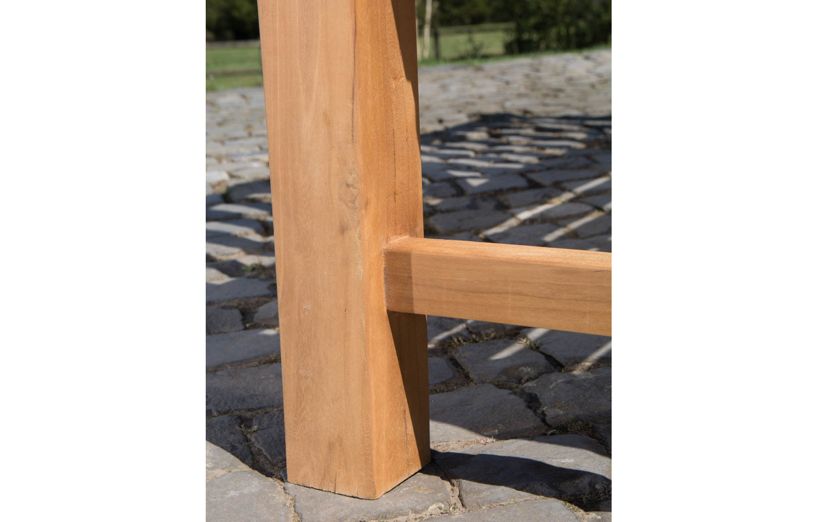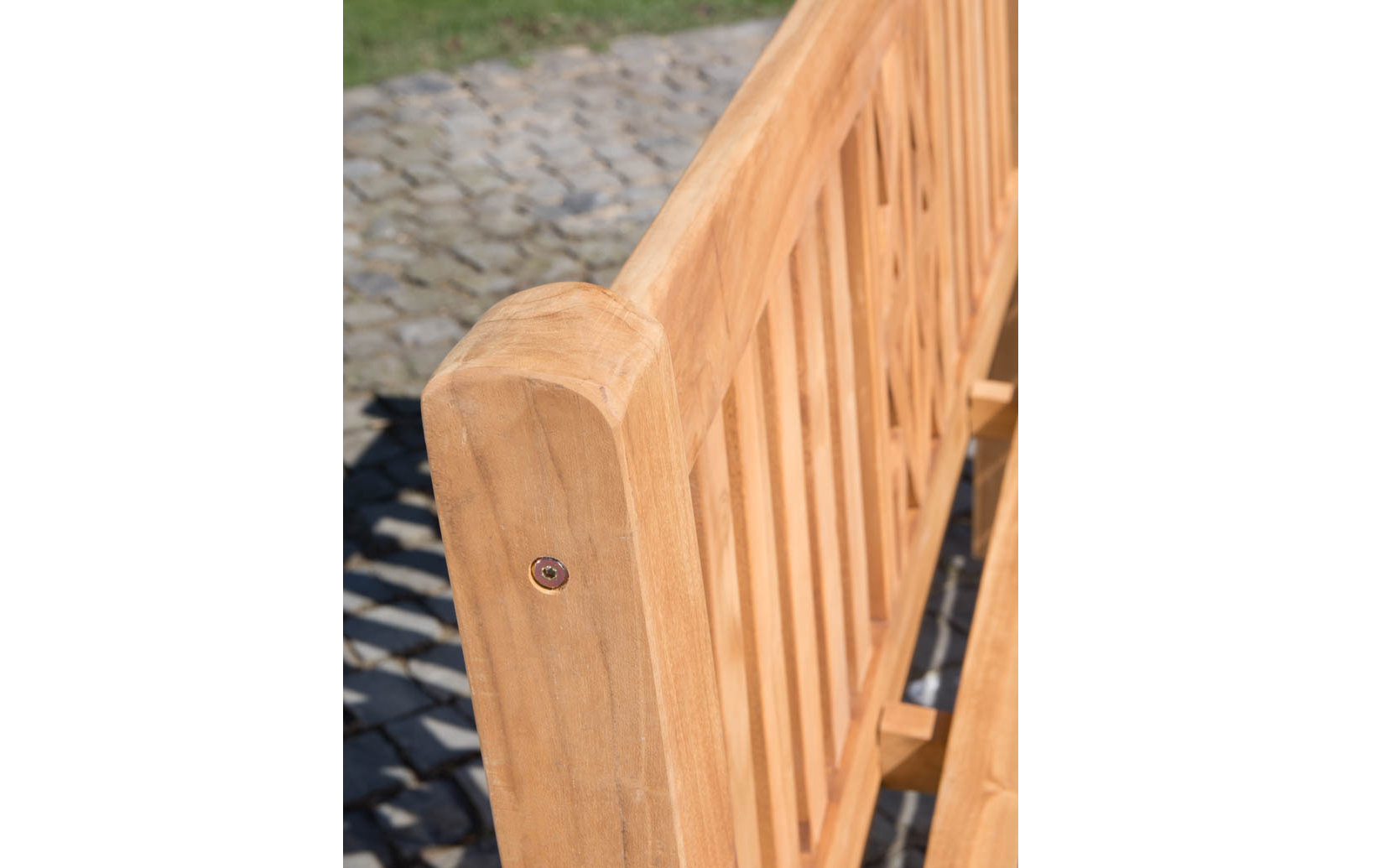 Solidna ławka z drewna tekowego. Dzięki ponadczasowej konstrukcji ławka ogrodowa doskonale pasuje do każdego otoczenia.