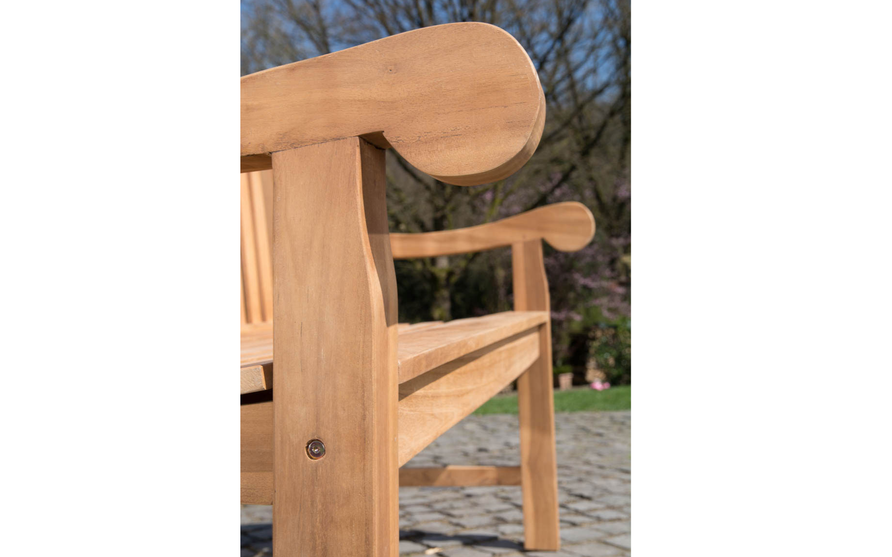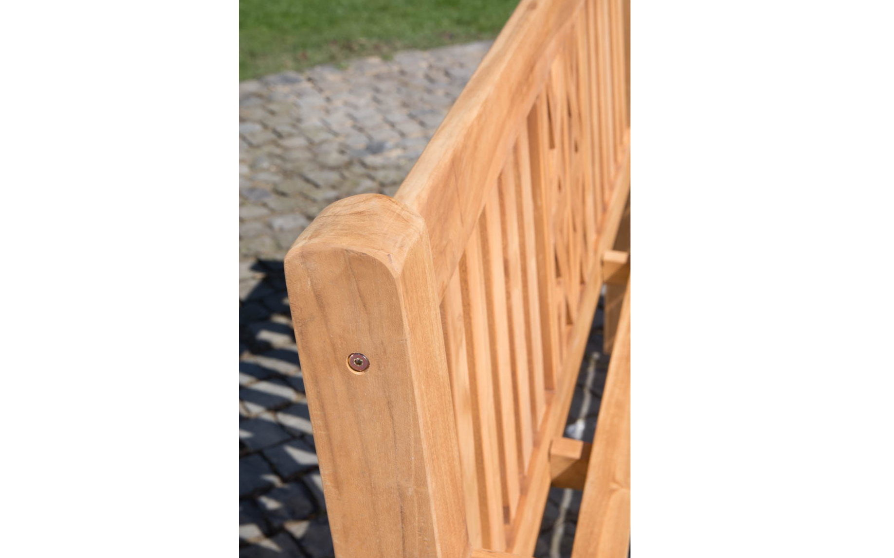Solidna ławka z drewna tekowego. Dzięki ponadczasowej konstrukcji ławka ogrodowa doskonale pasuje do każdego otoczenia.