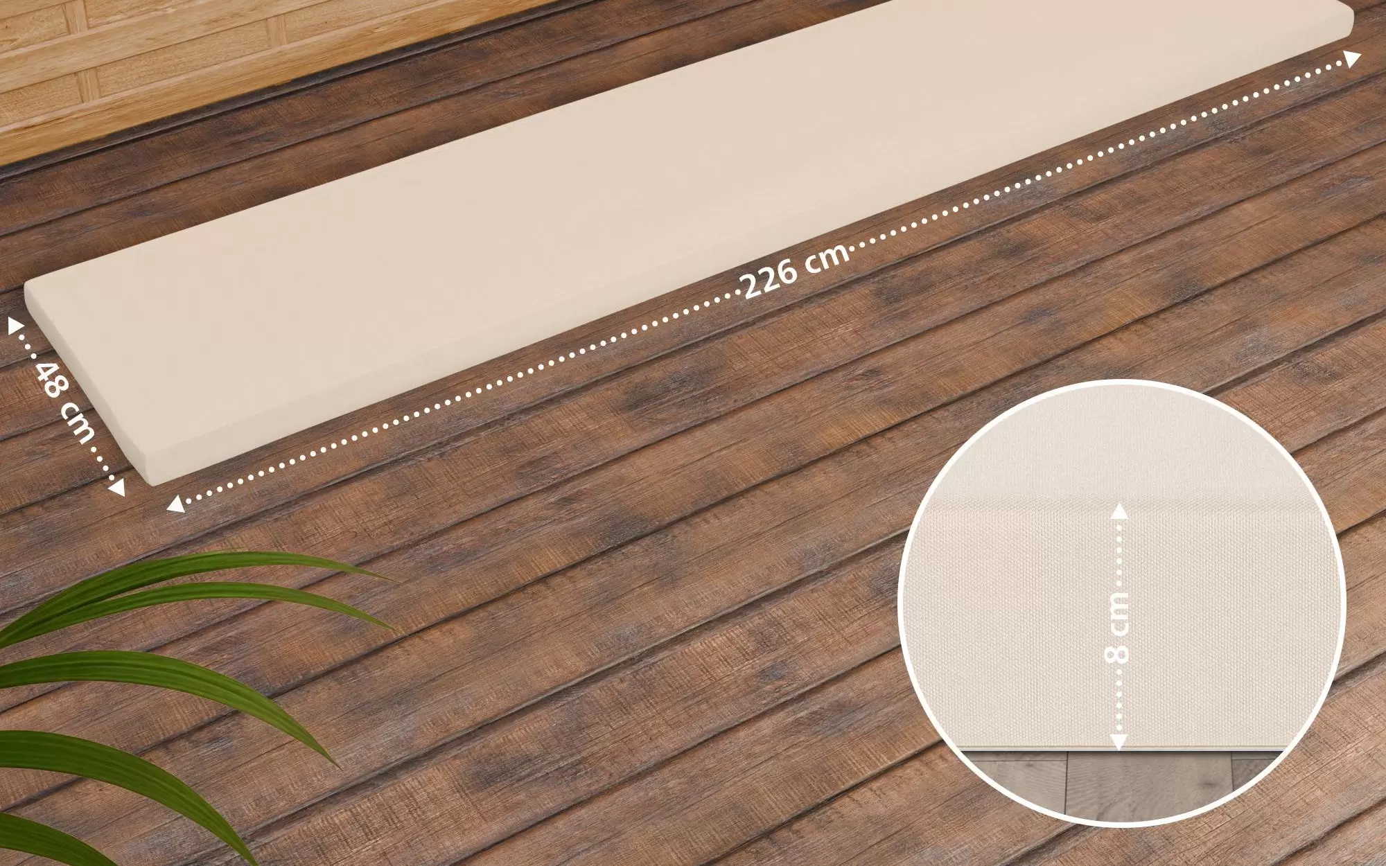 Gwarancja nie obejmuje zmian wynikających ze zużycia materiałów zastosowanych w poduszkach, w tym blaknięcia poszewek w wyniku długiego pozostawania pod wpływem promieni słonecznych.