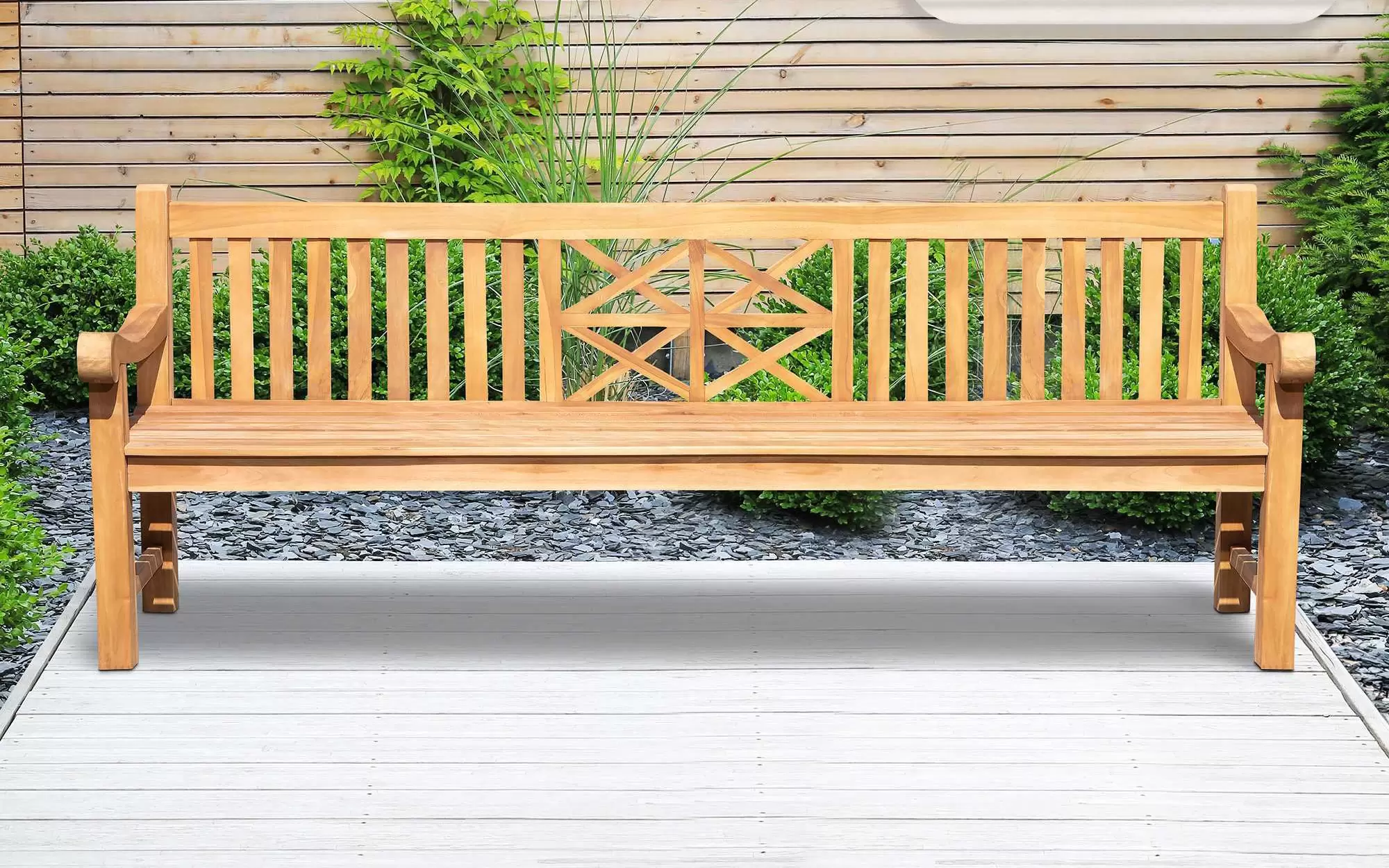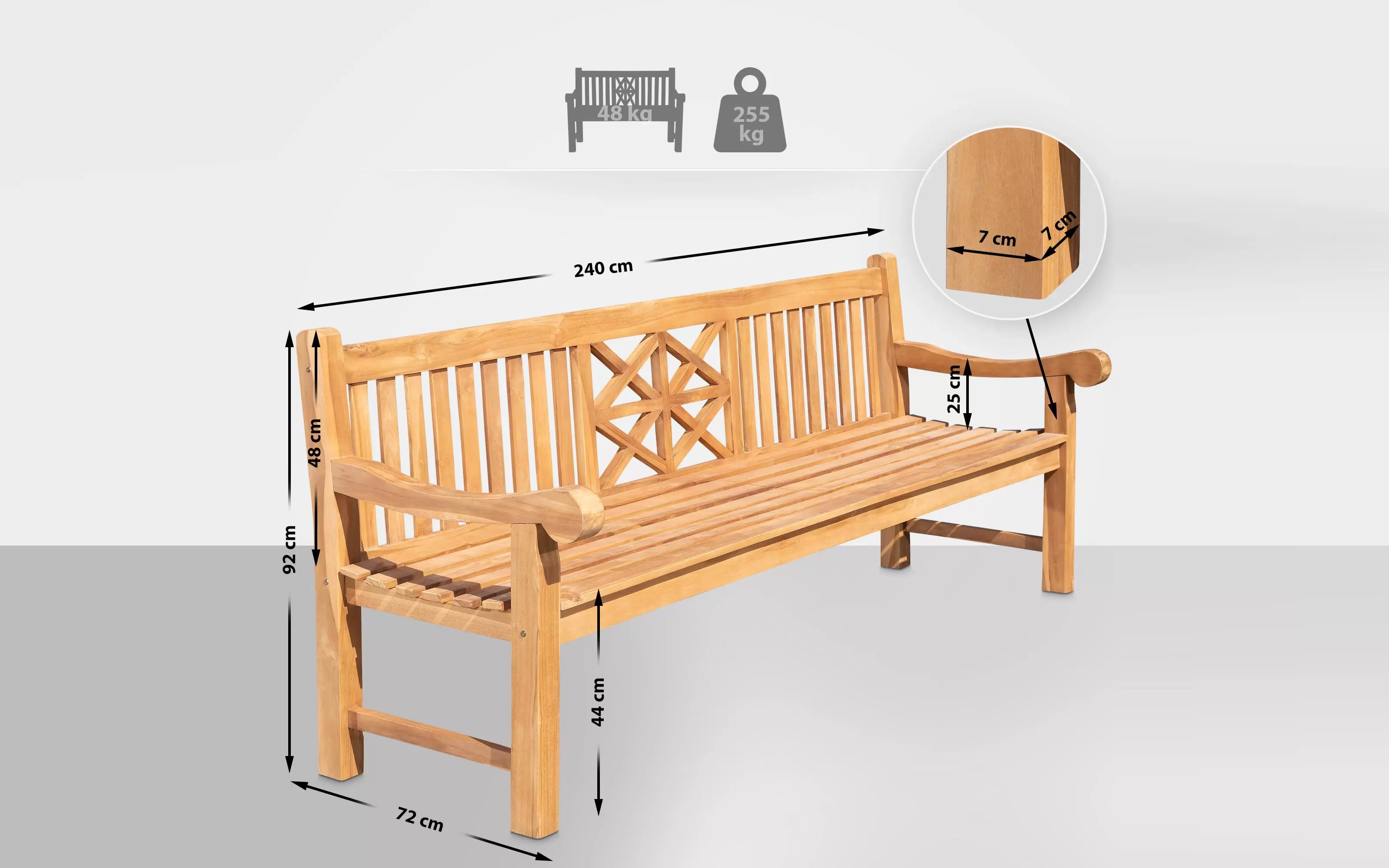 Solidna ławka z drewna tekowego. Dzięki ponadczasowej konstrukcji ławka ogrodowa doskonale pasuje do każdego otoczenia.