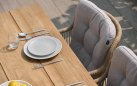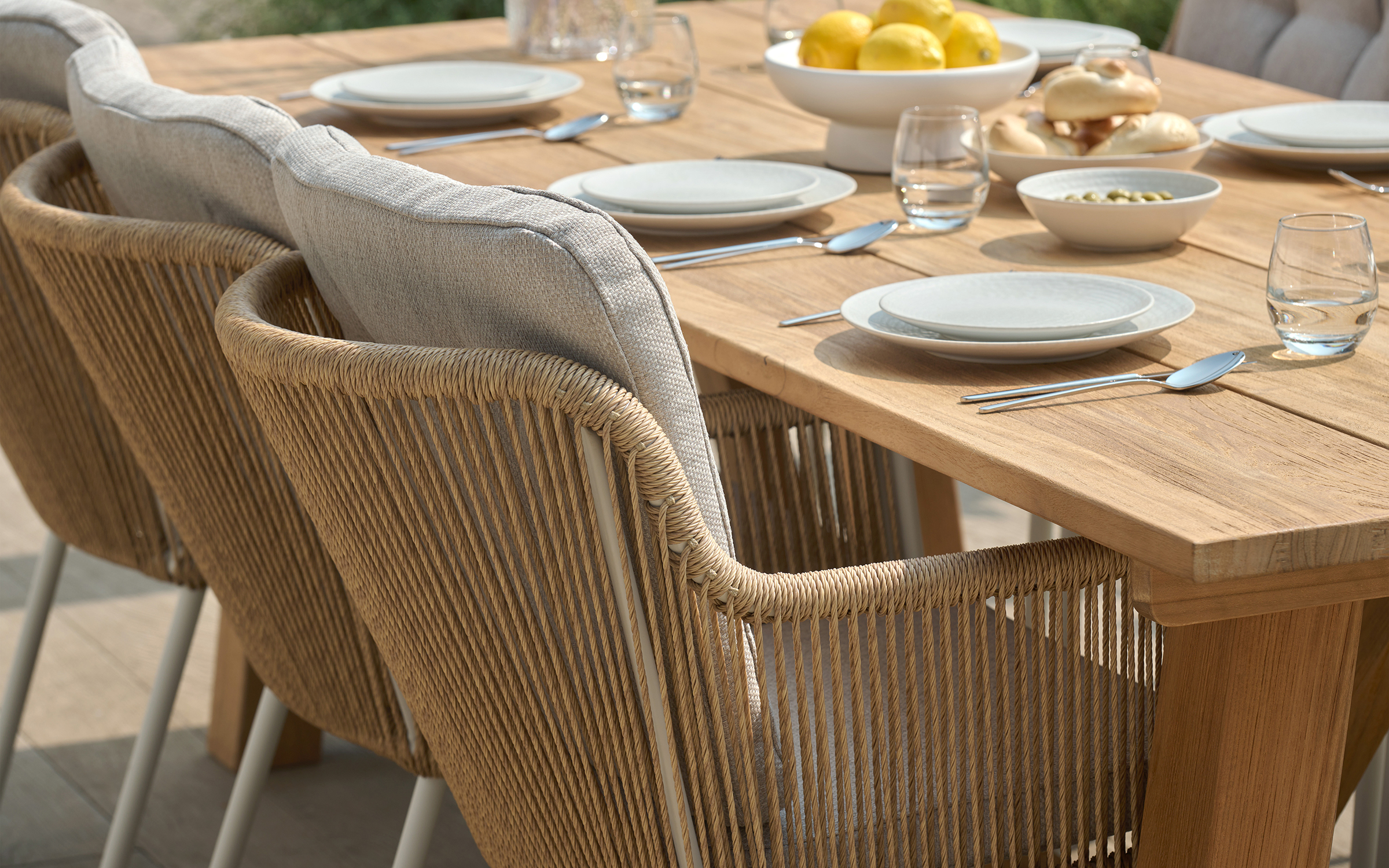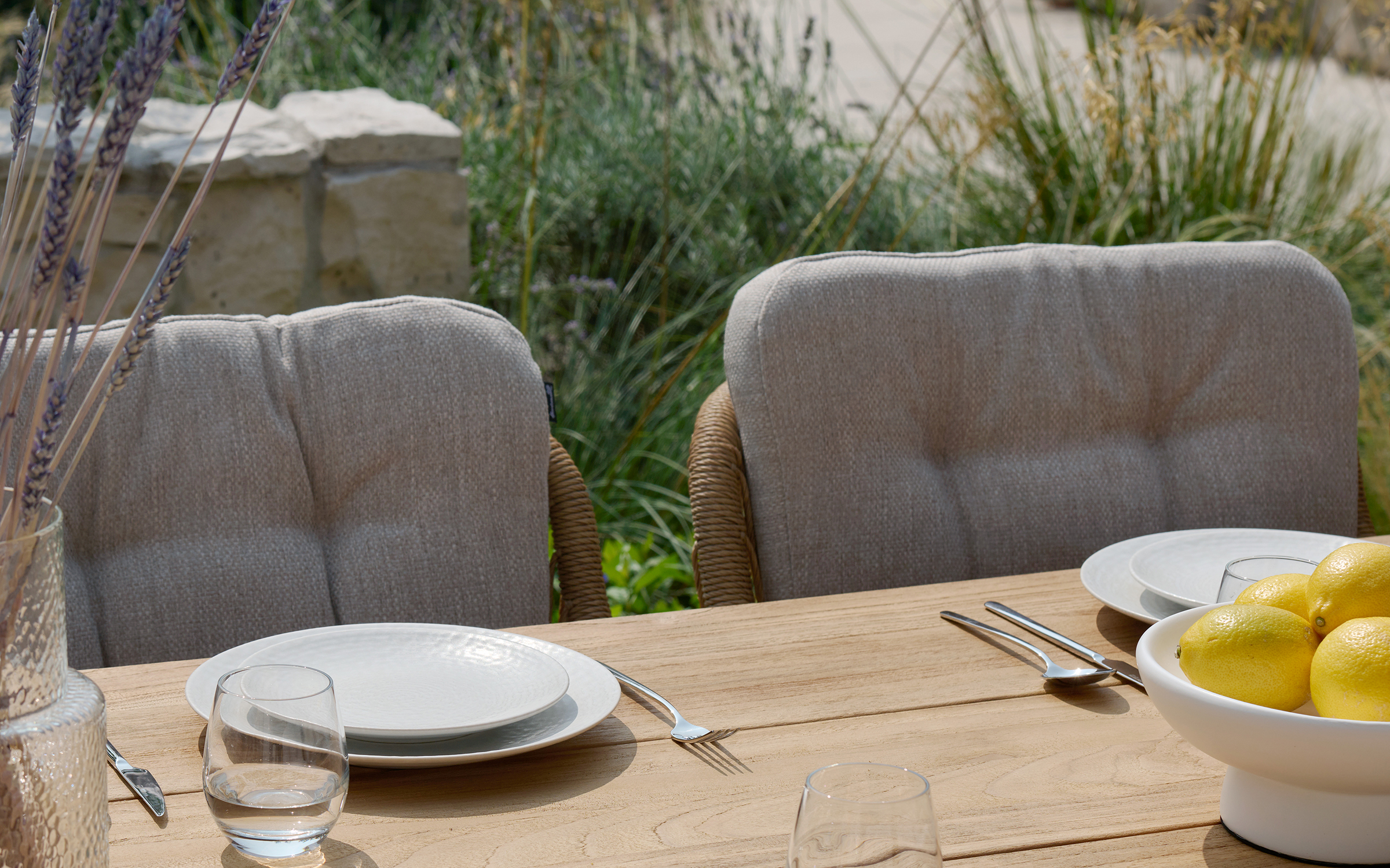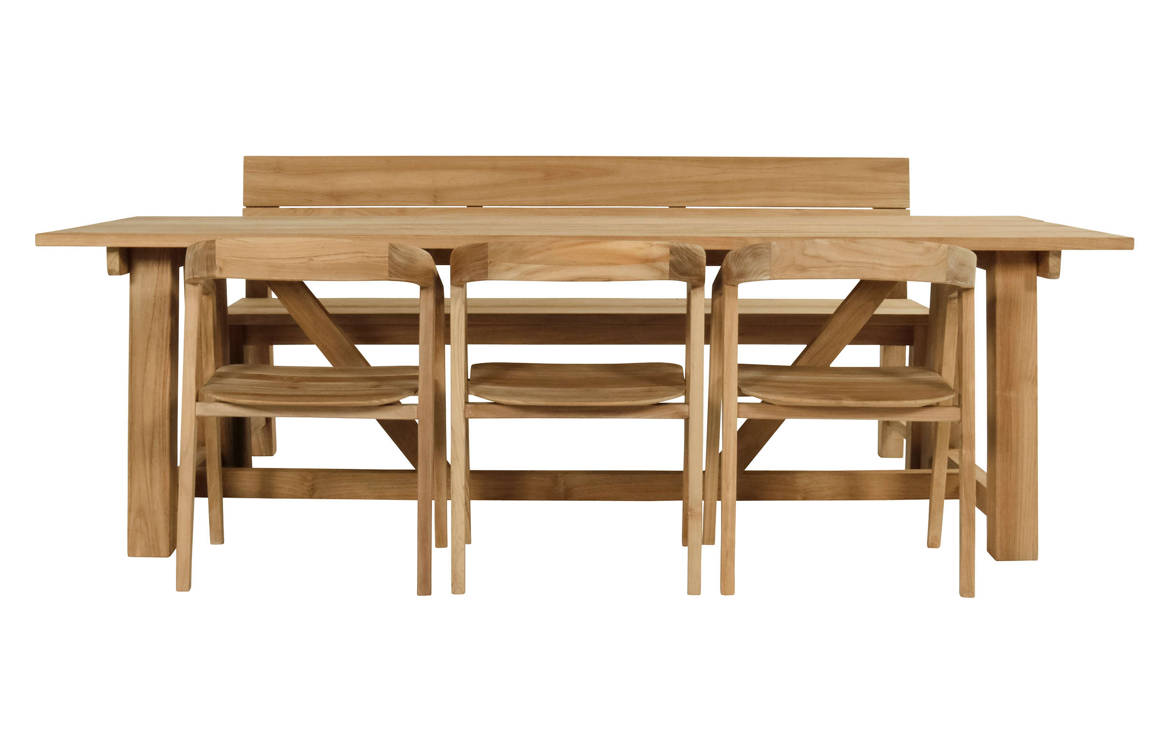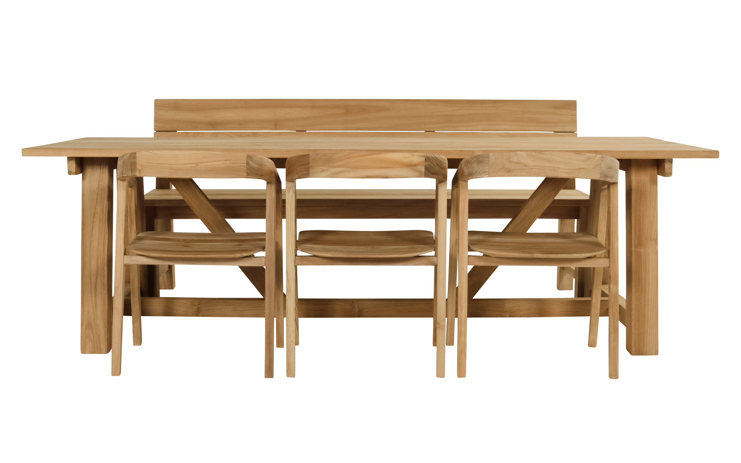 Konstrukcja oraz blat wykonane są w całości z certyfikowanego drewna teakowego (SVLK), które wyróżnia się odpornością na wilgoć, zmienne temperatury i promieniowanie UV. Stół jest przeznaczony do całorocznego użytku zewnętrznego, a jego naturalne wykończenie nadaje mu ponadczasowy wygląd i ciepły charakter.
