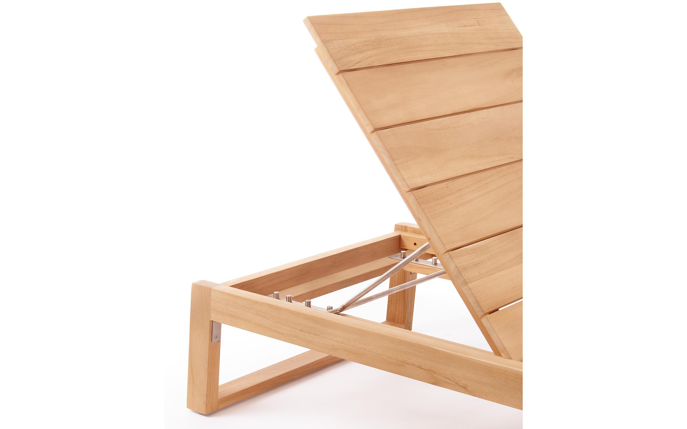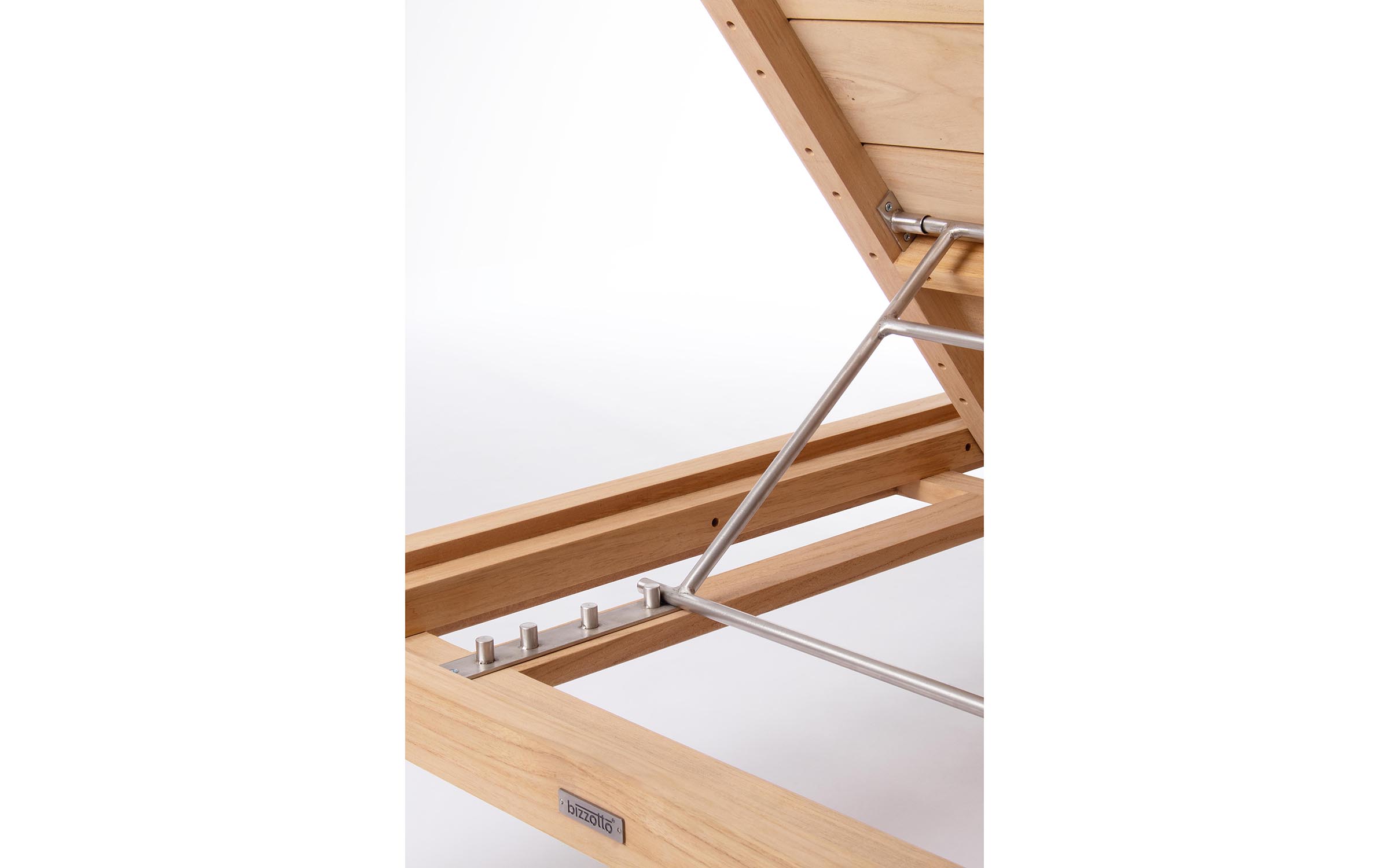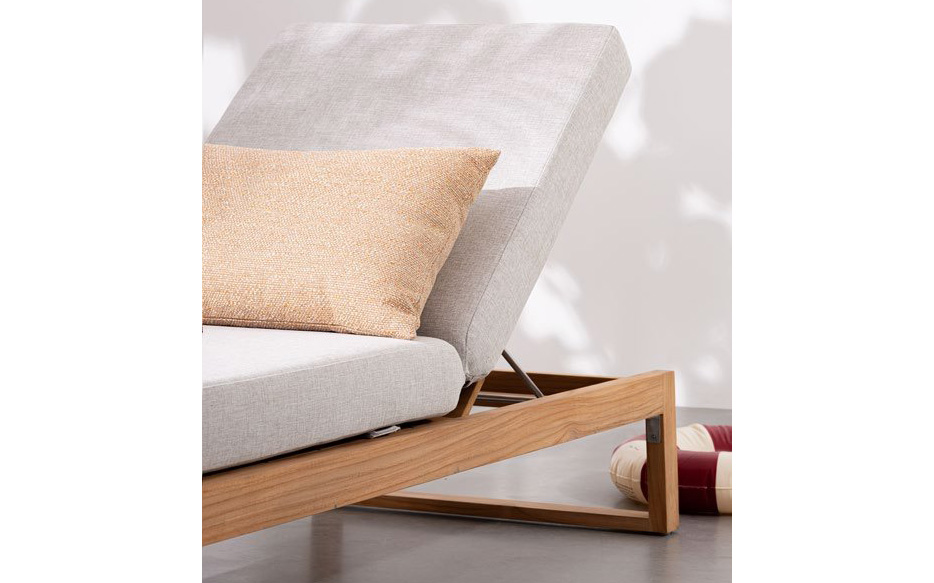 Model wyposażono w oparcie regulowane w 4 pozycjach, co pozwala dopasować kąt nachylenia do wypoczynku, czytania lub opalania. Elementy konstrukcyjne wykonane są ze stali nierdzewnej 304, odpornej na korozję i warunki atmosferyczne.