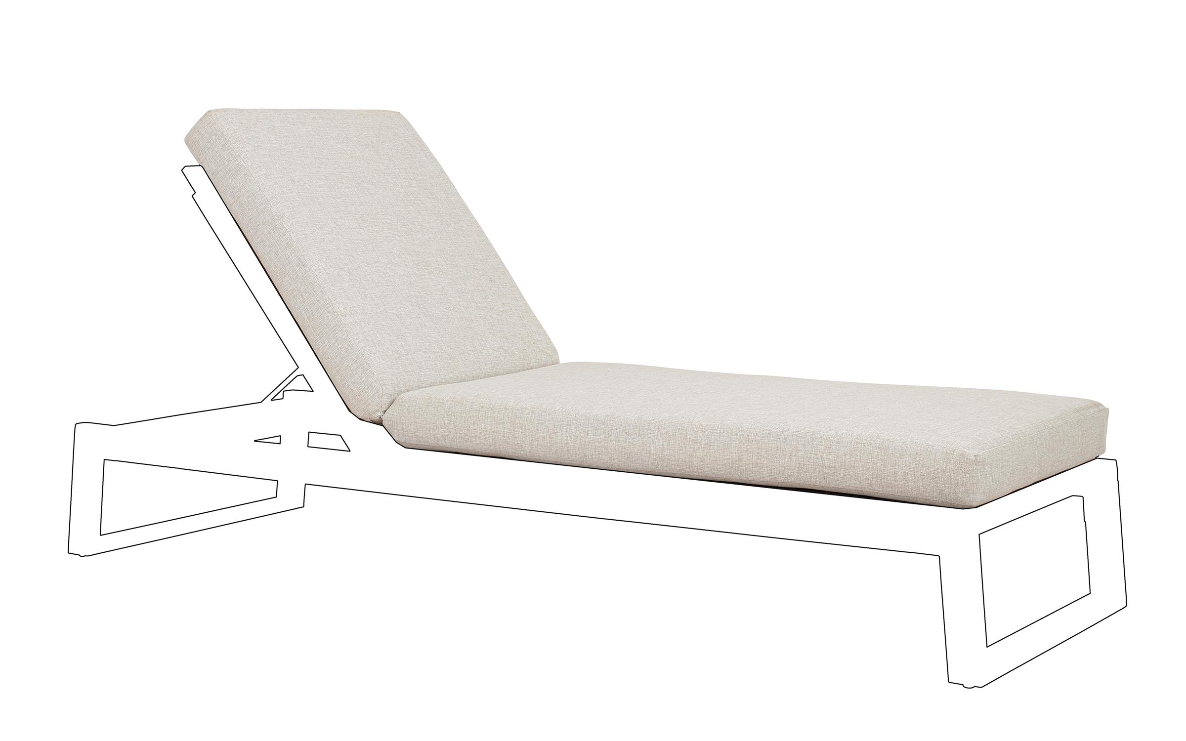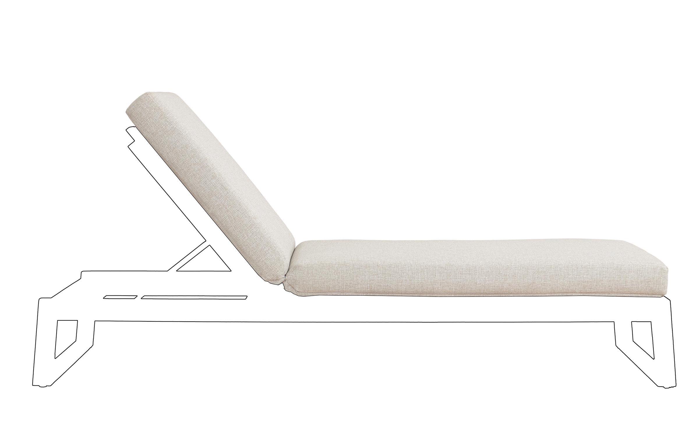 Leżak nie zawiera materaca — jest to wersja podstawowa, przeznaczona do użytkowania solo lub z opcjonalną poduszką dostępną osobno.