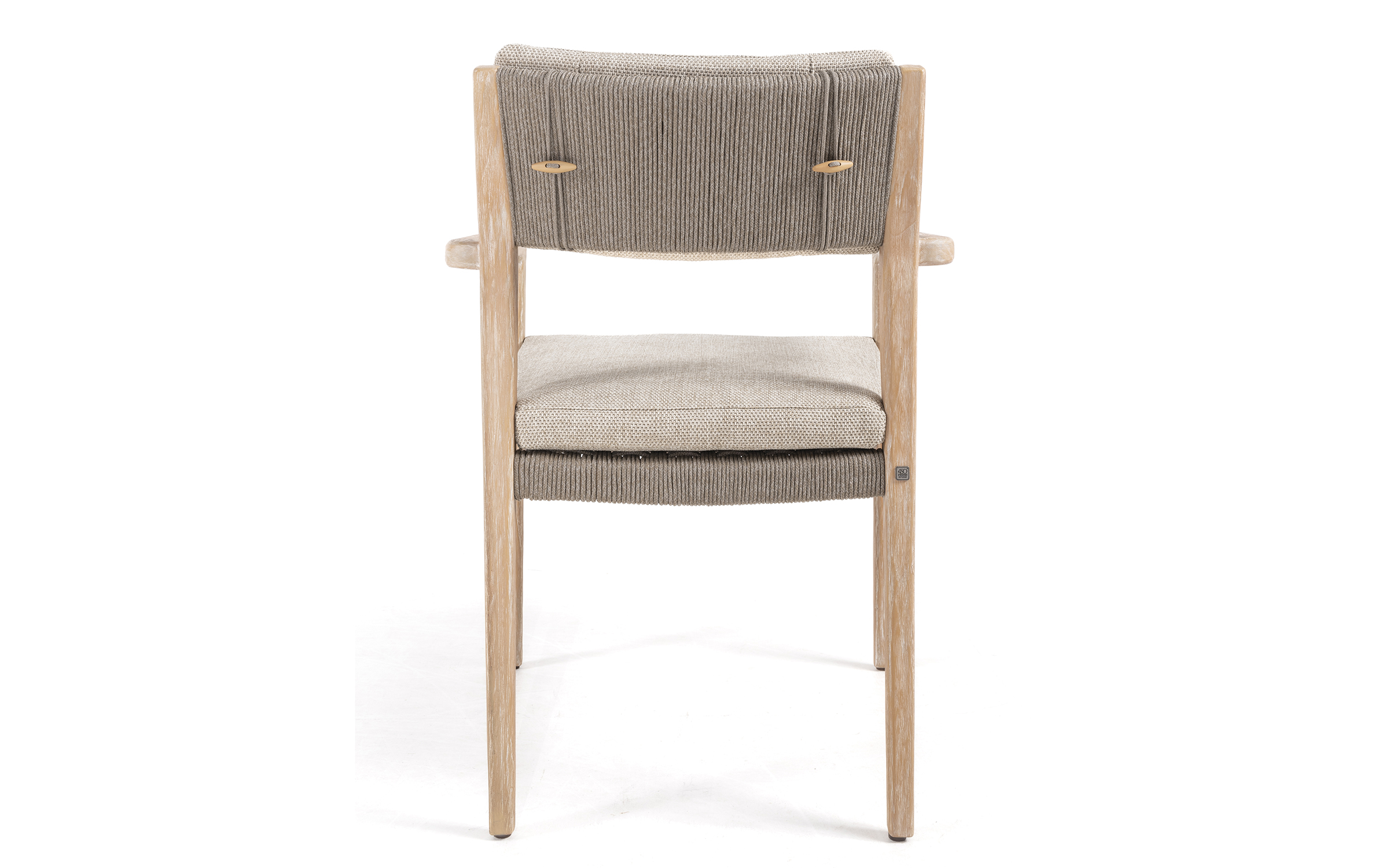 Krzesło jest wyposażone w wygodne poduszki w kolorze taupe, które zapewniają dodatkowy komfort i styl.