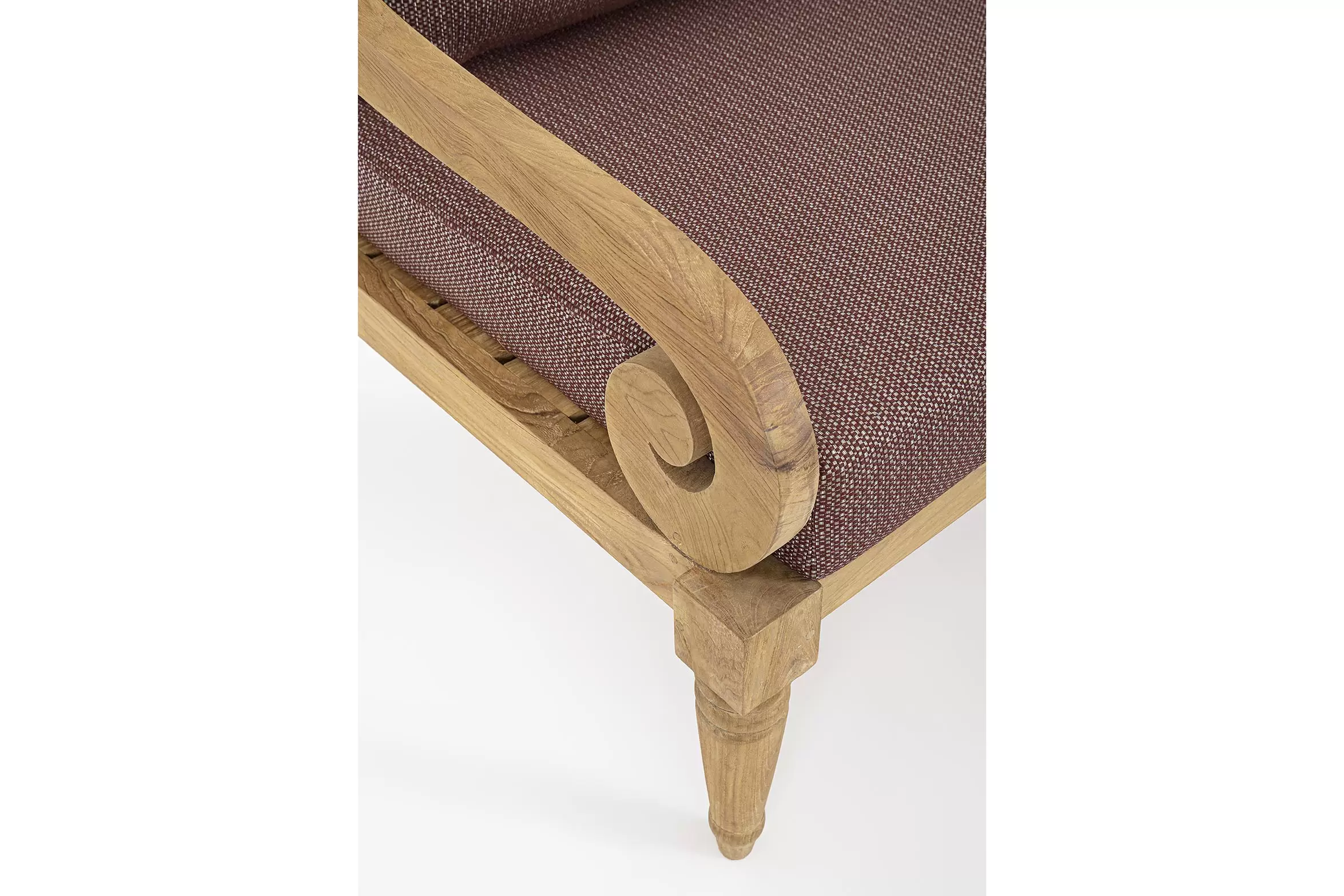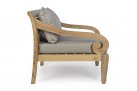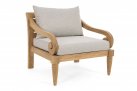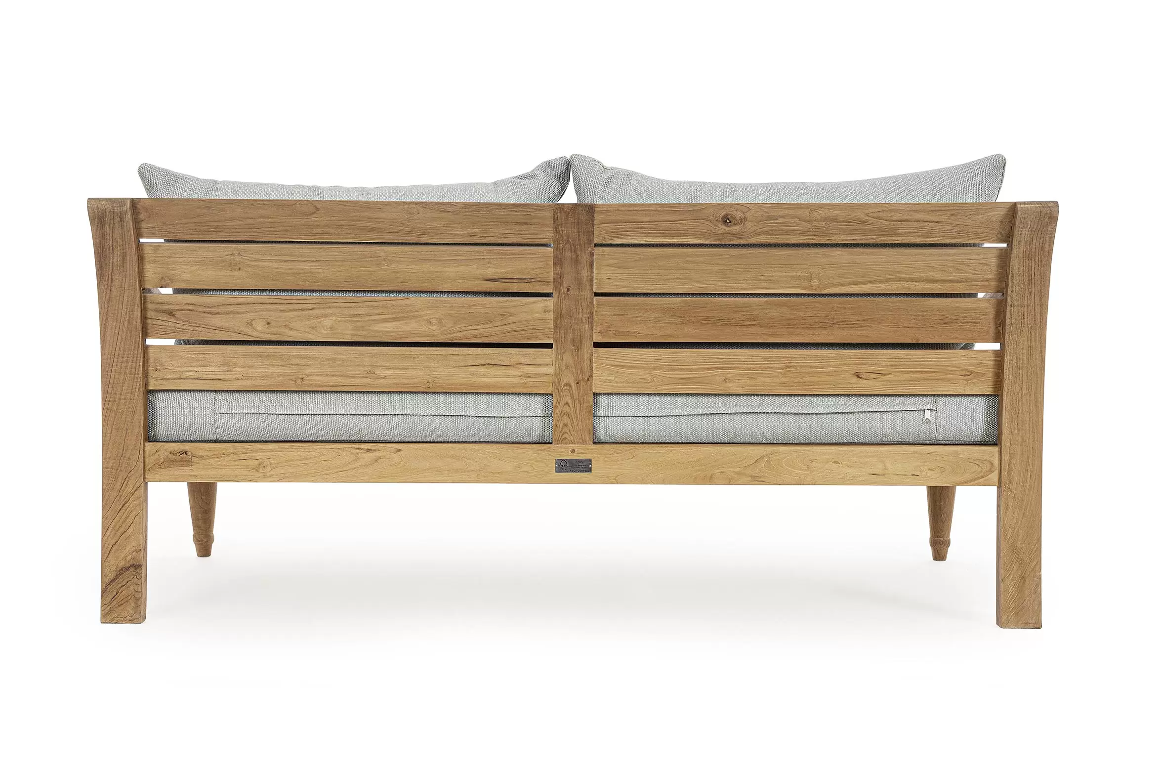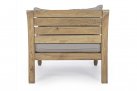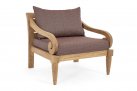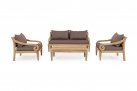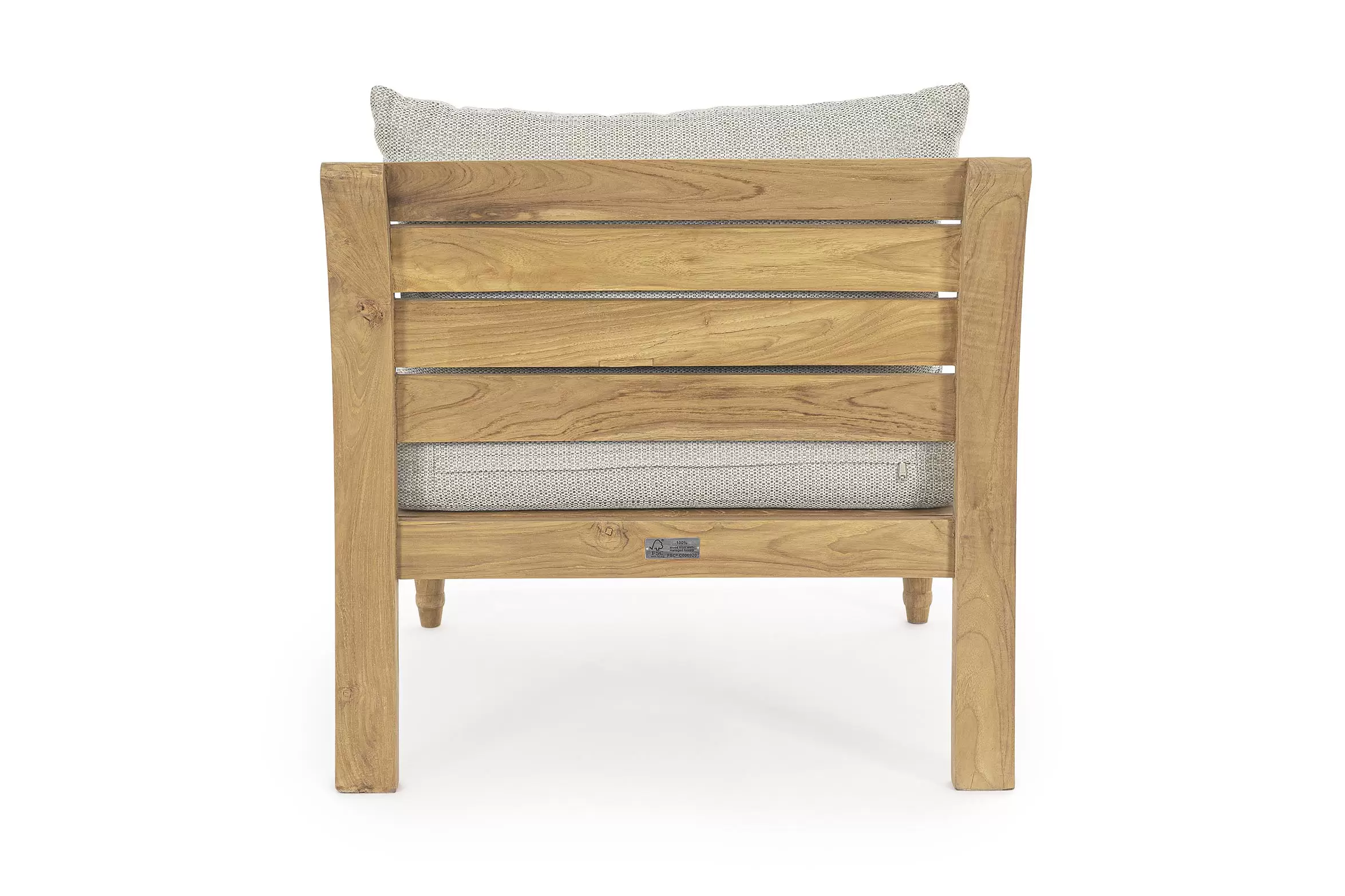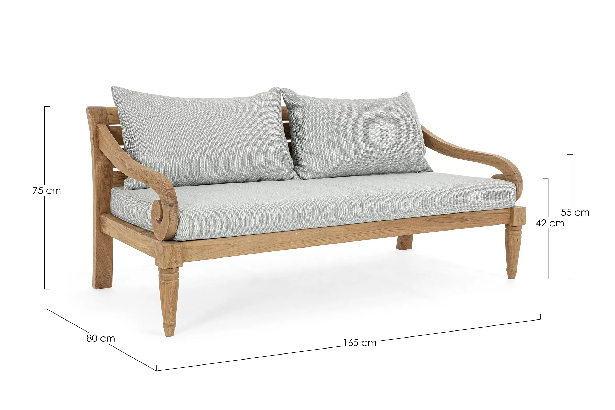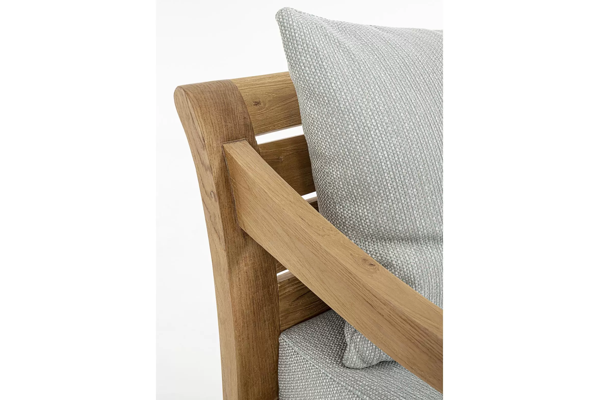 Zestaw wypoczynkowy teakowy na taras w stylu indyjskim. Beżowe poduszki wodoodporne.