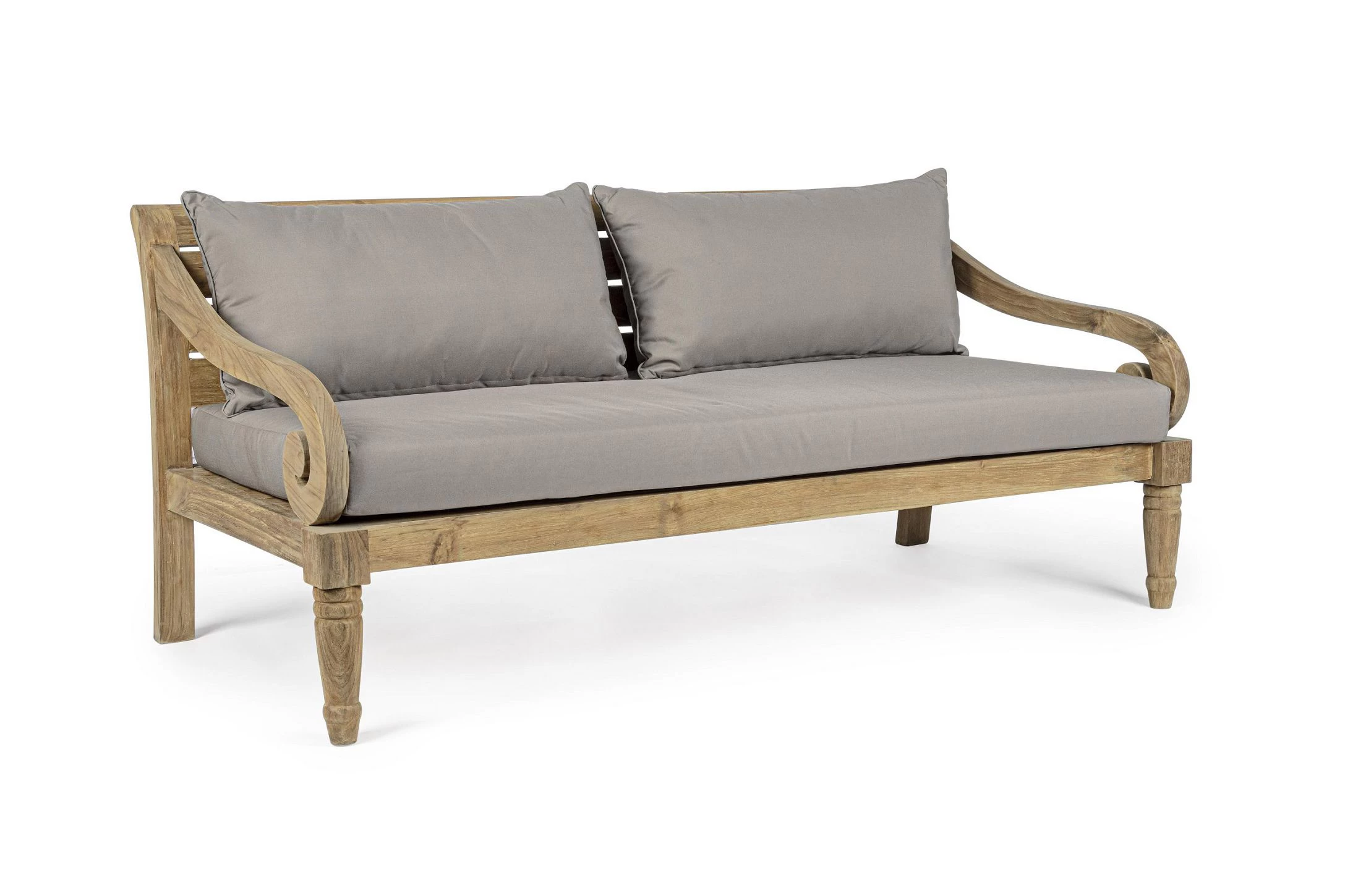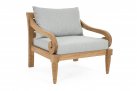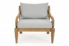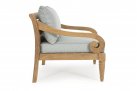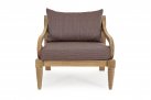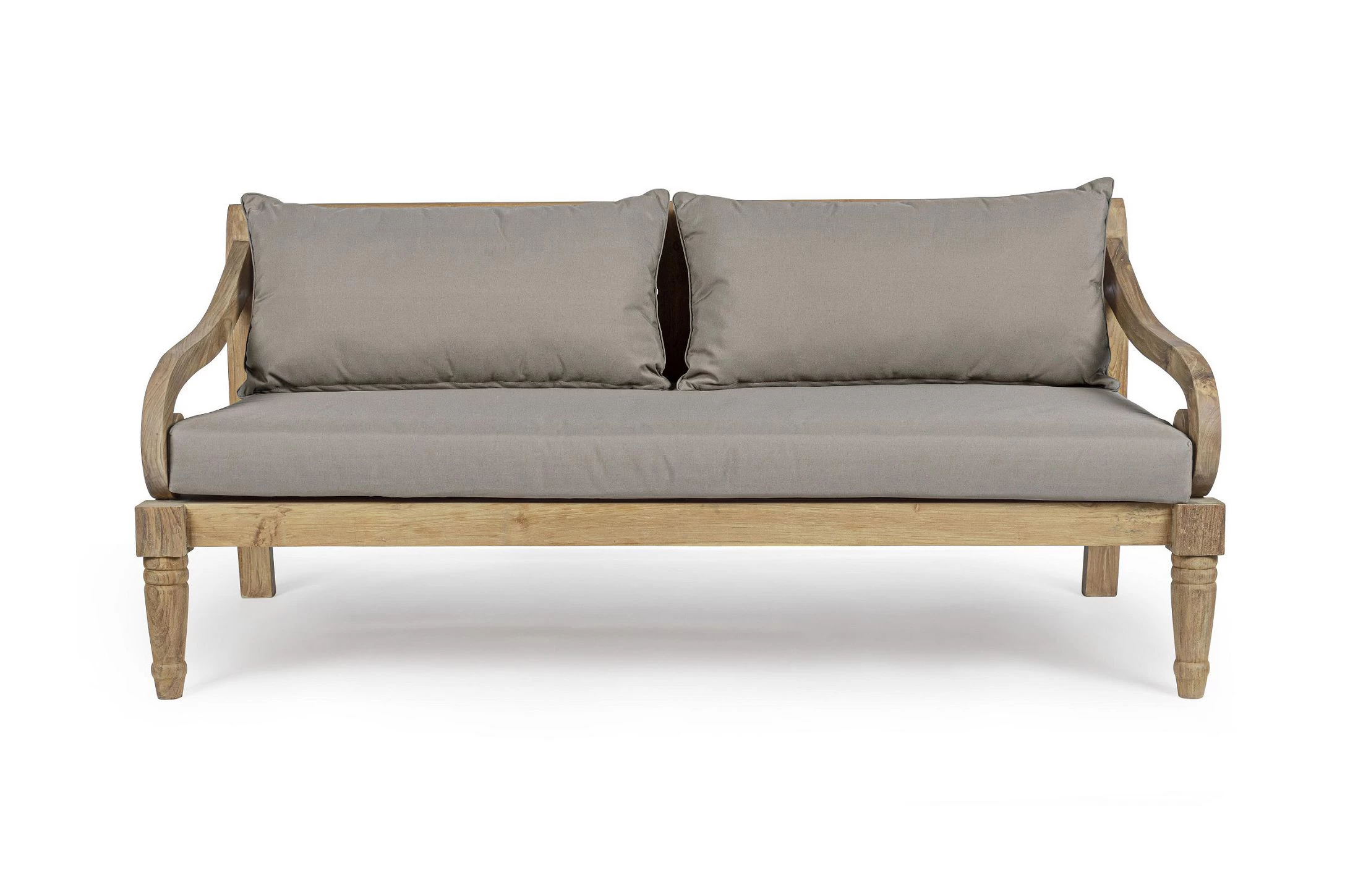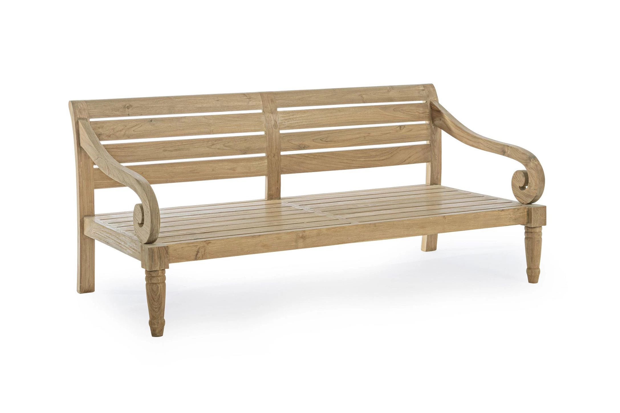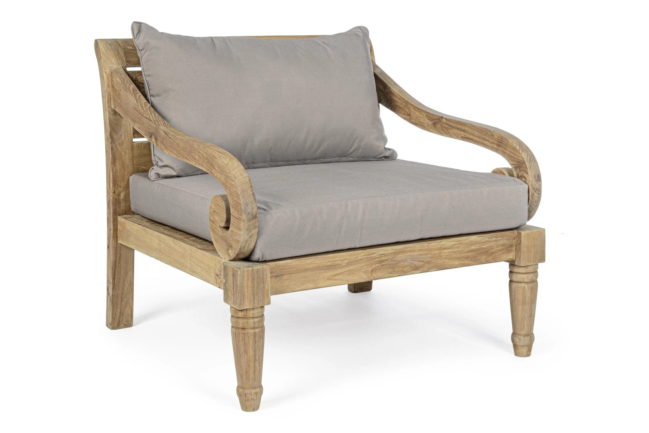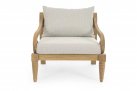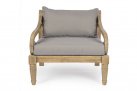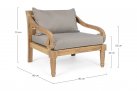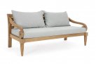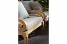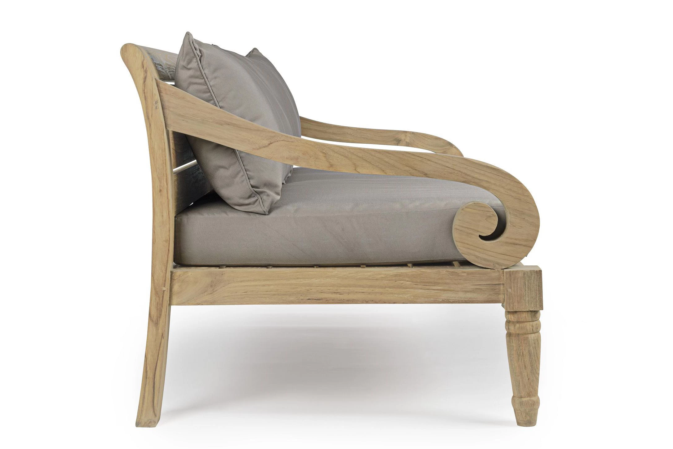Zestaw wypoczynkowy teakowy na taras w stylu indyjskim. Beżowe poduszki wodoodporne.