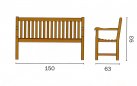 Ławka ogrodowa LAMPEDUSA to klasyczny model wykonany z naturalnego drewna teak. Dzięki długości 150 cm zapewnia wygodne miejsce dla 3 osób. Stylowa forma z podłokietnikami i profilowanym oparciem doskonale sprawdzi się na tarasie, patio lub w ogrodzie. Drewno teak gwarantuje trwałość i odporność na warunki atmosferyczne.