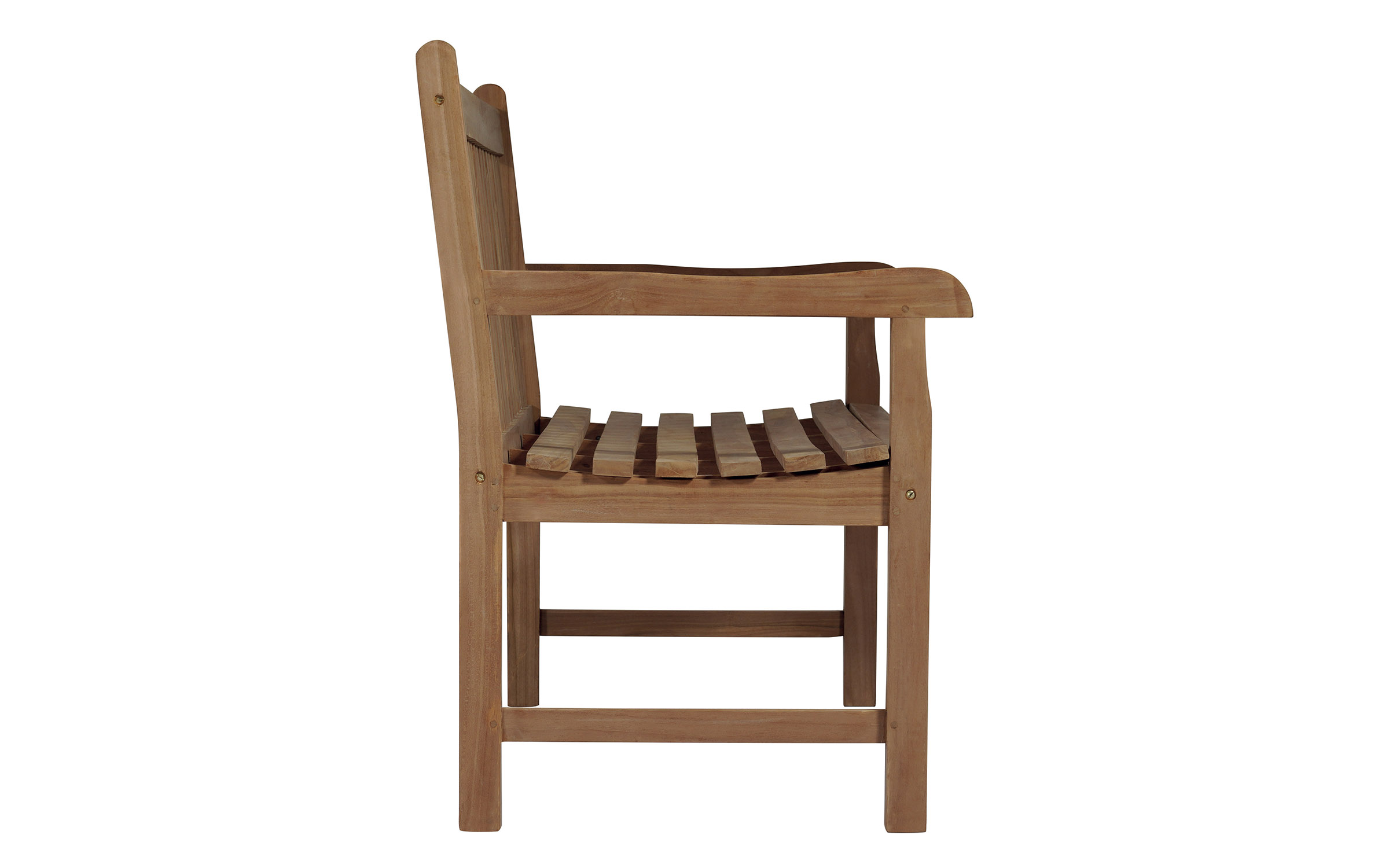Wykonana z naturalnego drewna teak, odpornego na wilgoć, promieniowanie UV i zmienne warunki atmosferyczne. Drewno egzotyczne o wysokiej trwałości i eleganckim wyglądzie. Zalecana regularna konserwacja olejem teakowym.