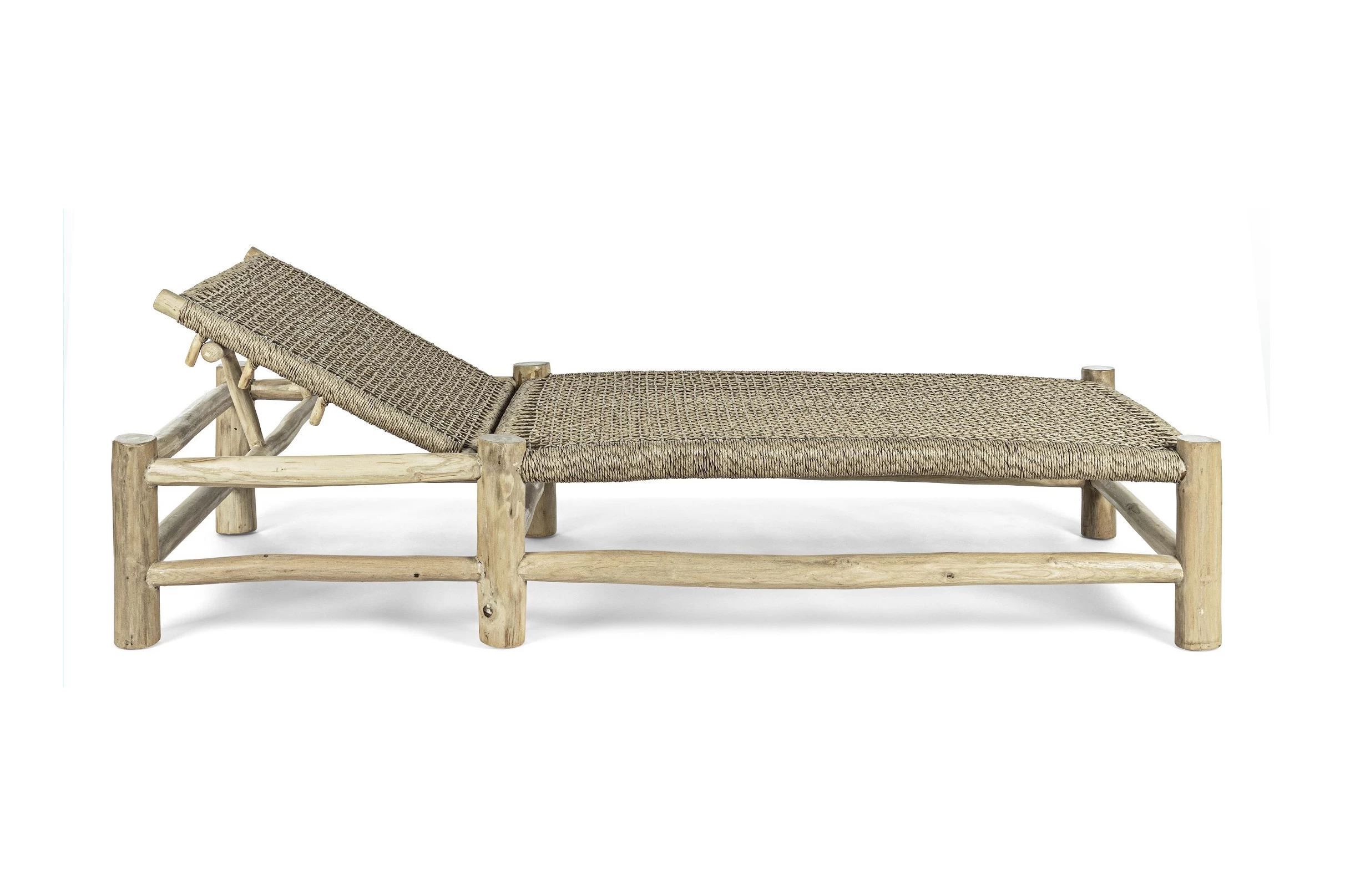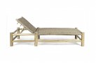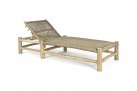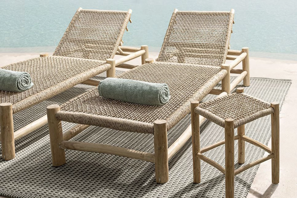 Leżak ogrodowy z drewna teakowego i technorattanu.