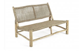 Wieszak z drewna teakowego i technorattanu.