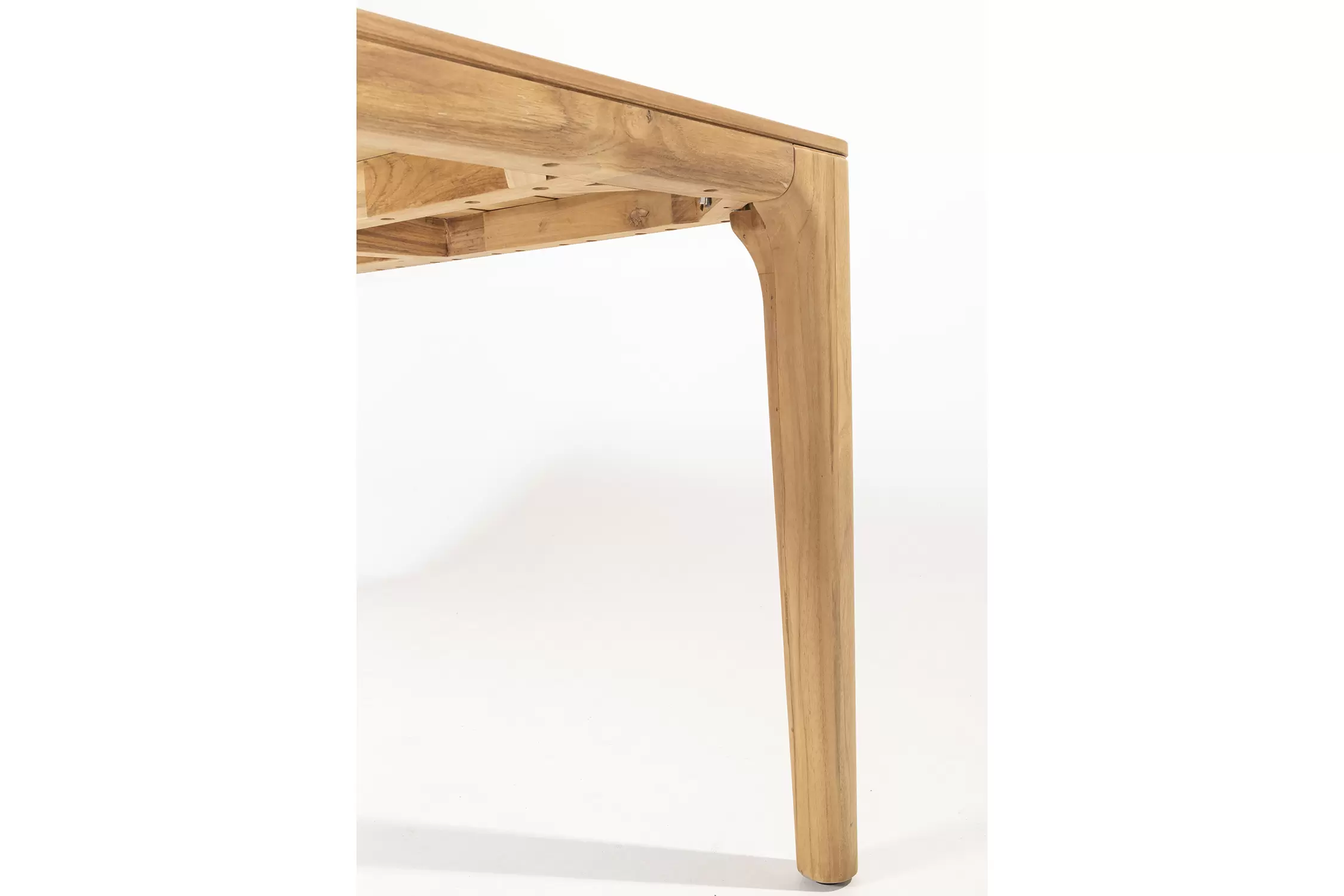 LIAM to elegancki stół ogrodowy marki Taste by 4 Seasons Outdoor, wykonany w całości z naturalnego drewna teakowego. Model o wymiarach 180×100 cm wyróżnia się prostokątnym blatem z szerokimi listwami ułożonymi w poprzek, co nadaje mu nowoczesny i charakterystyczny wygląd.