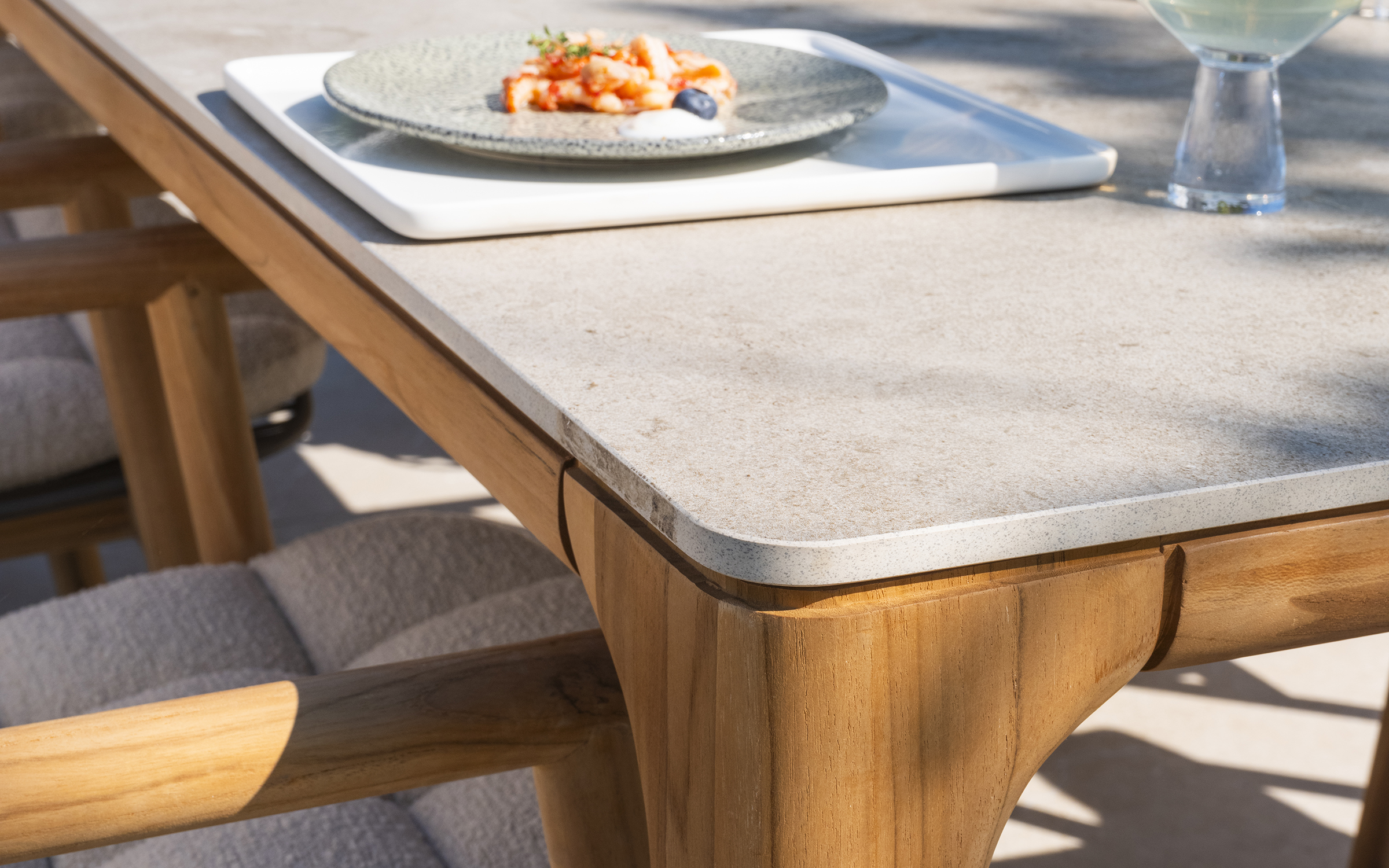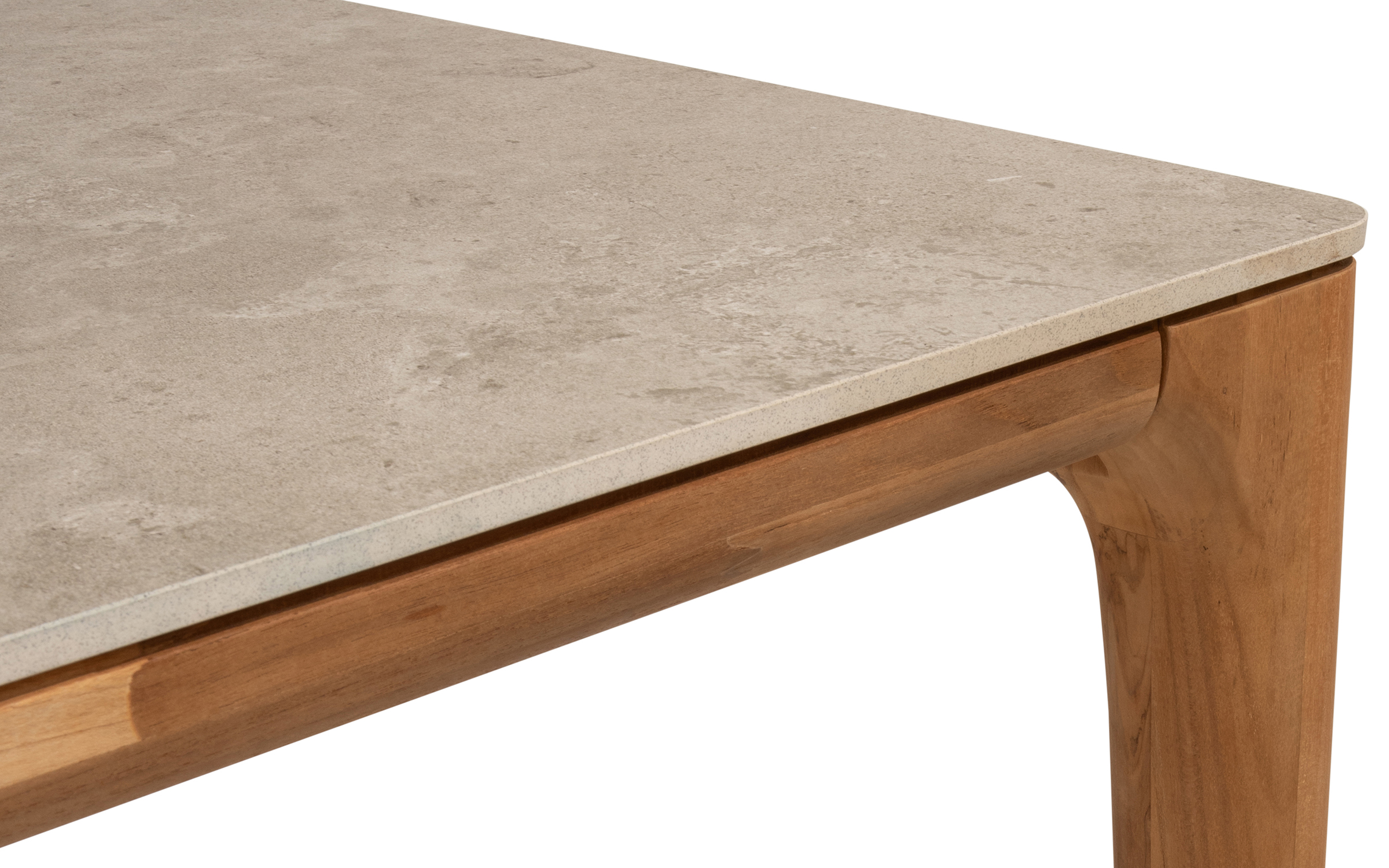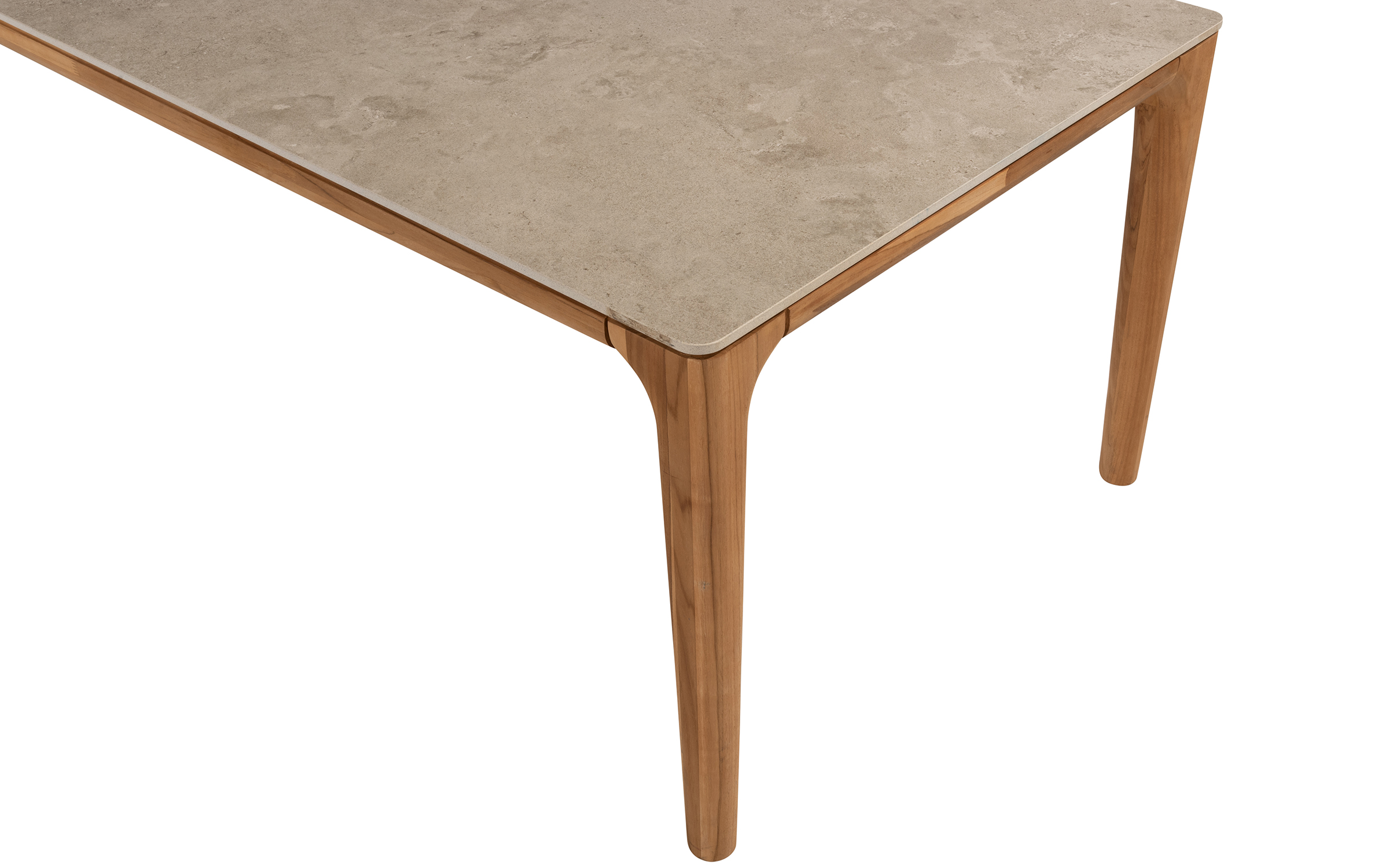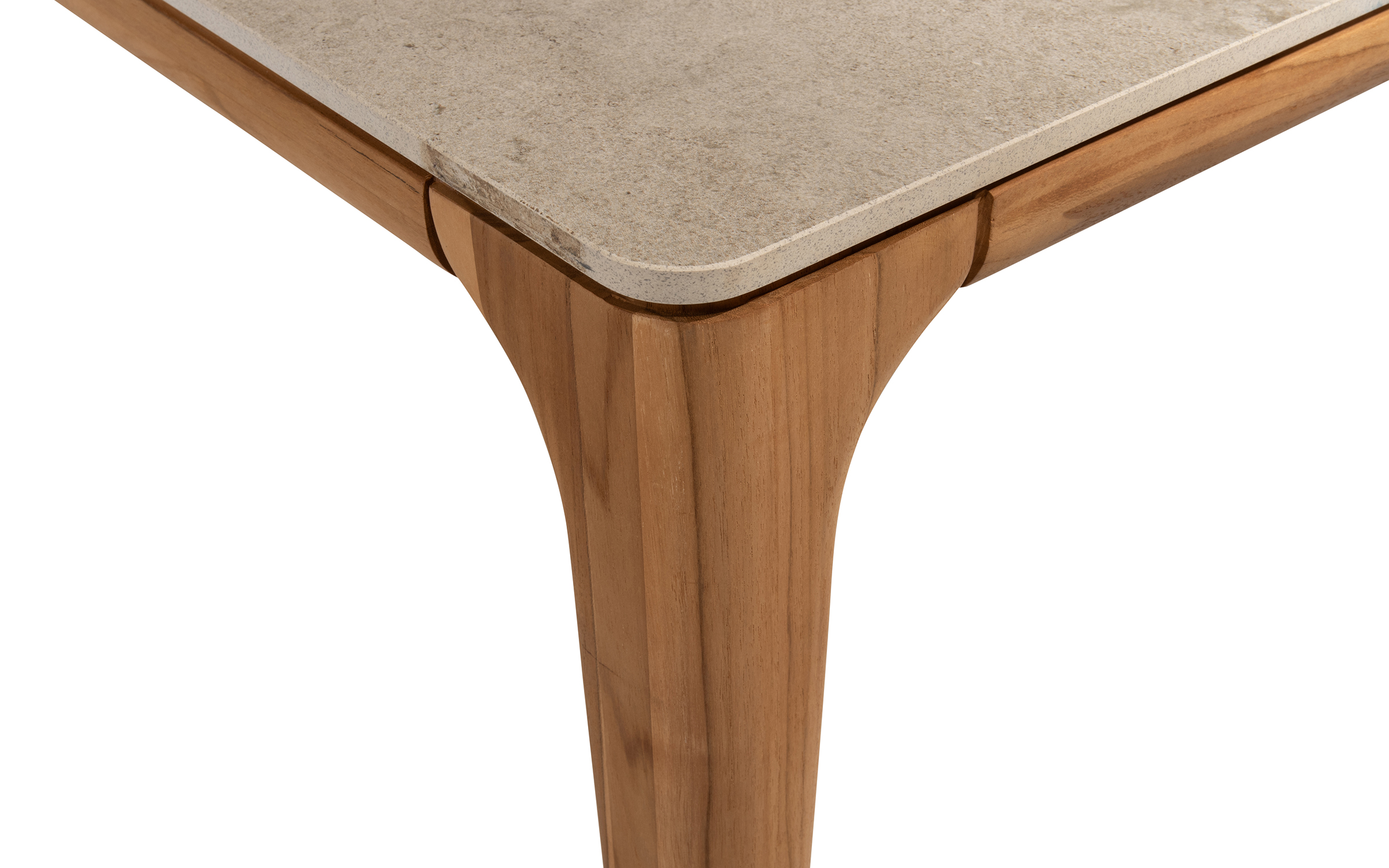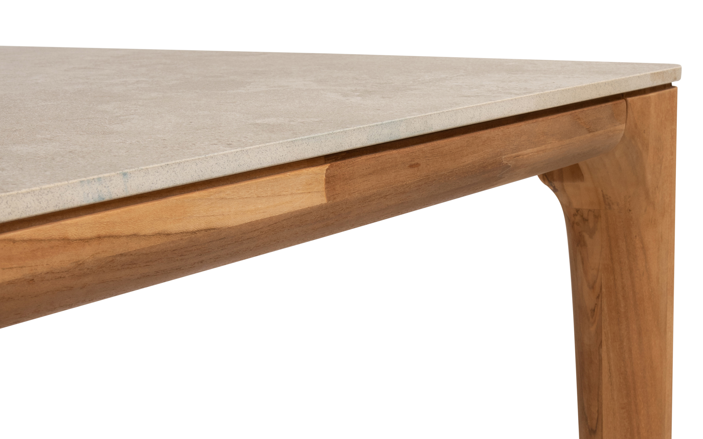 Stół LIAM 240 to piękny stół z podstawą z drewna tekowego. Wersja stołu z blatem ceramicznym.