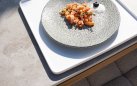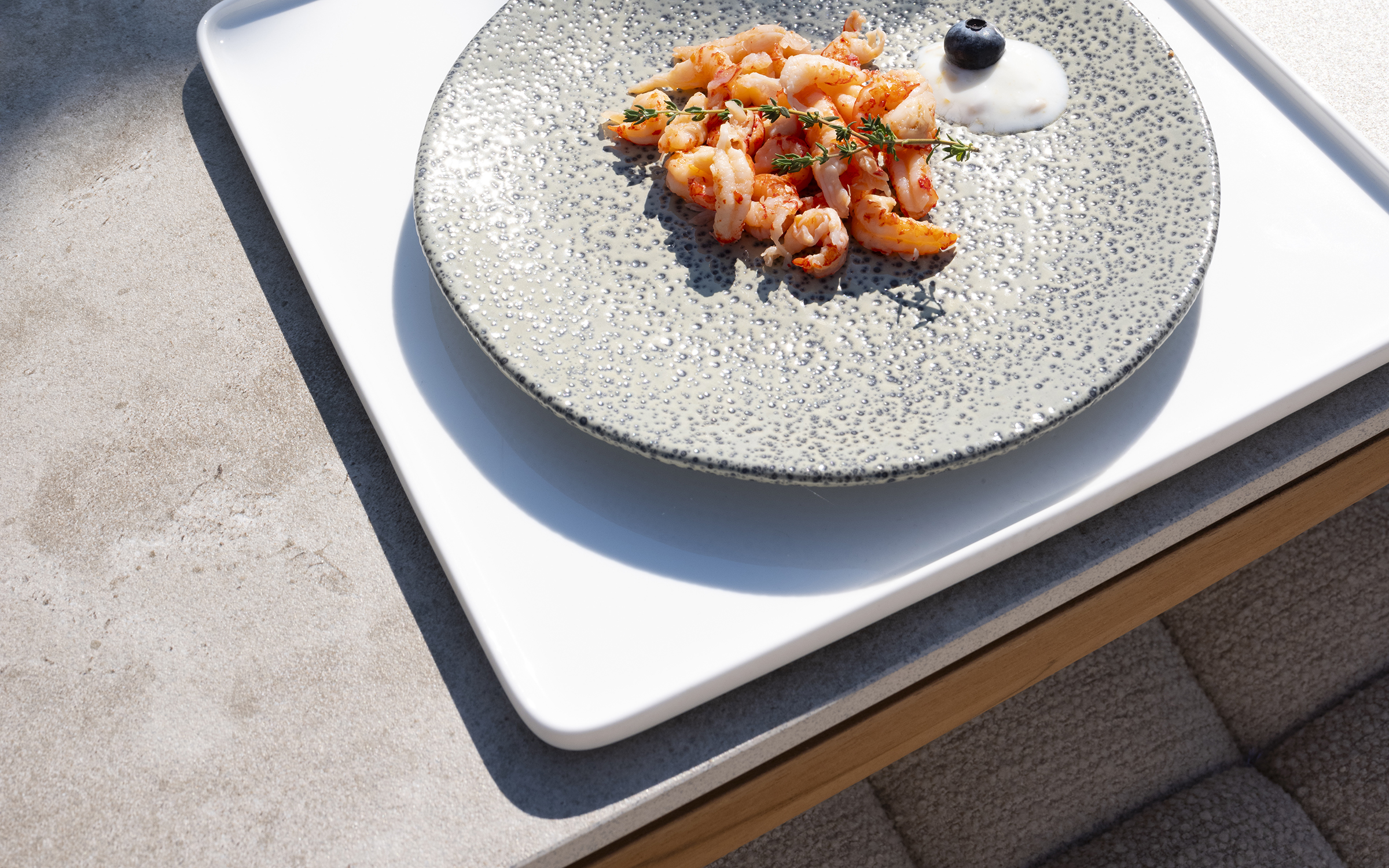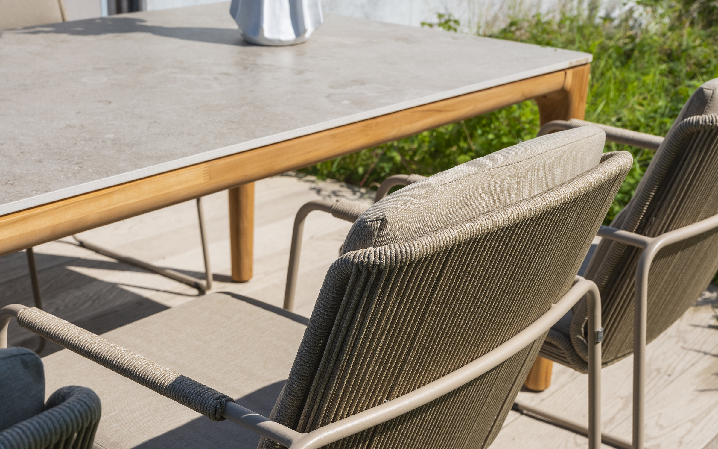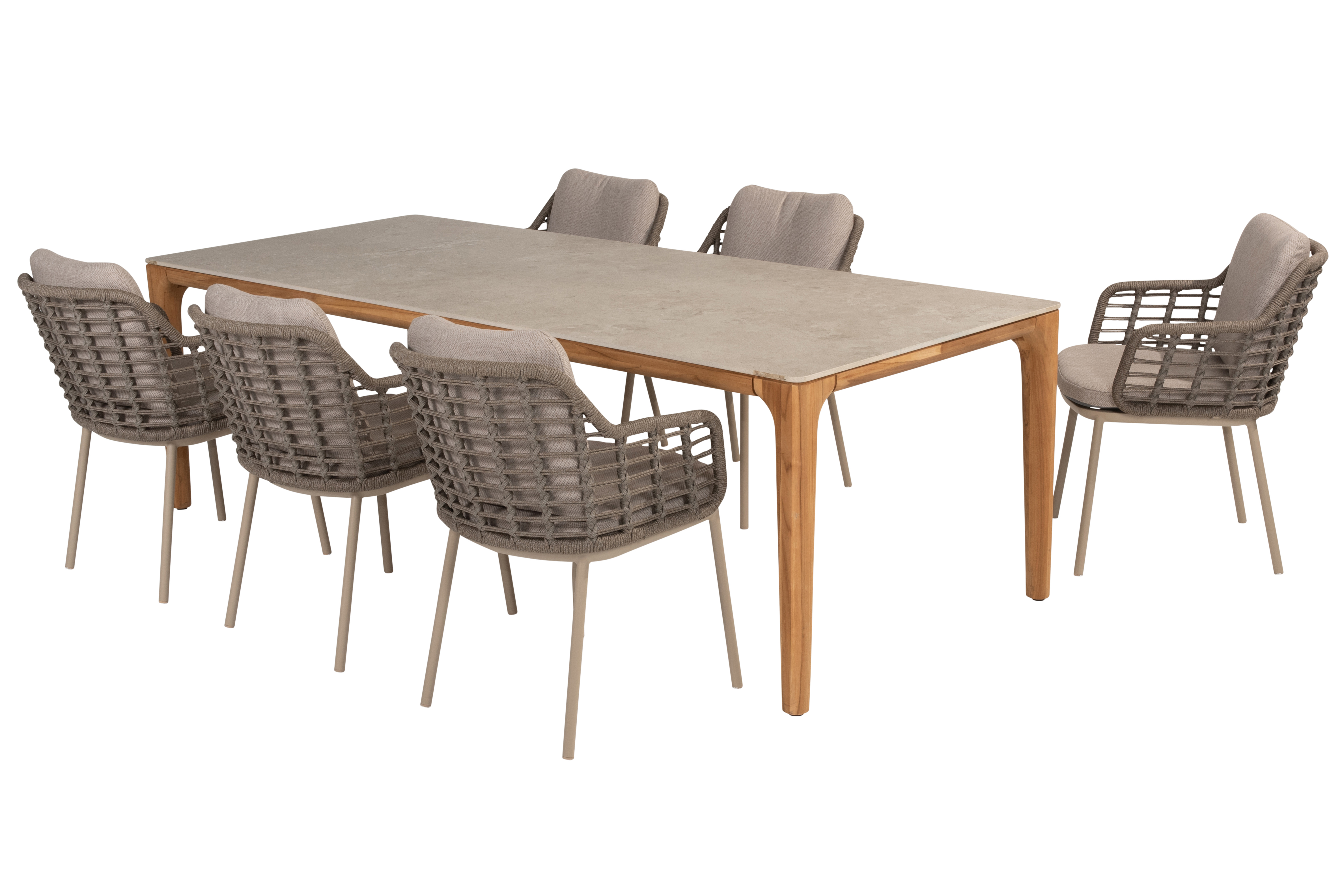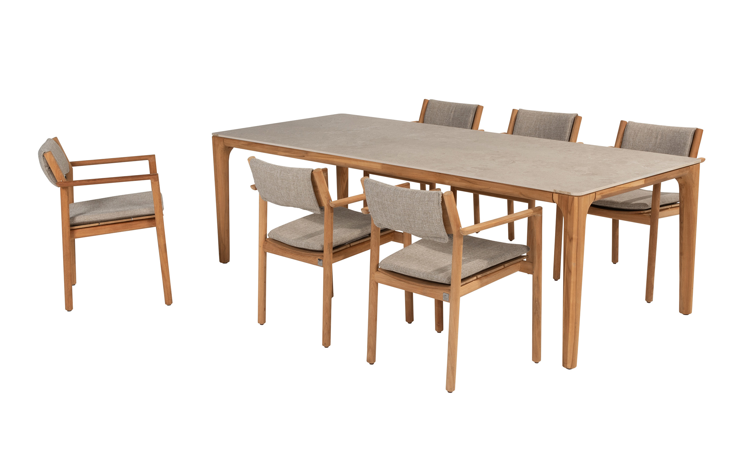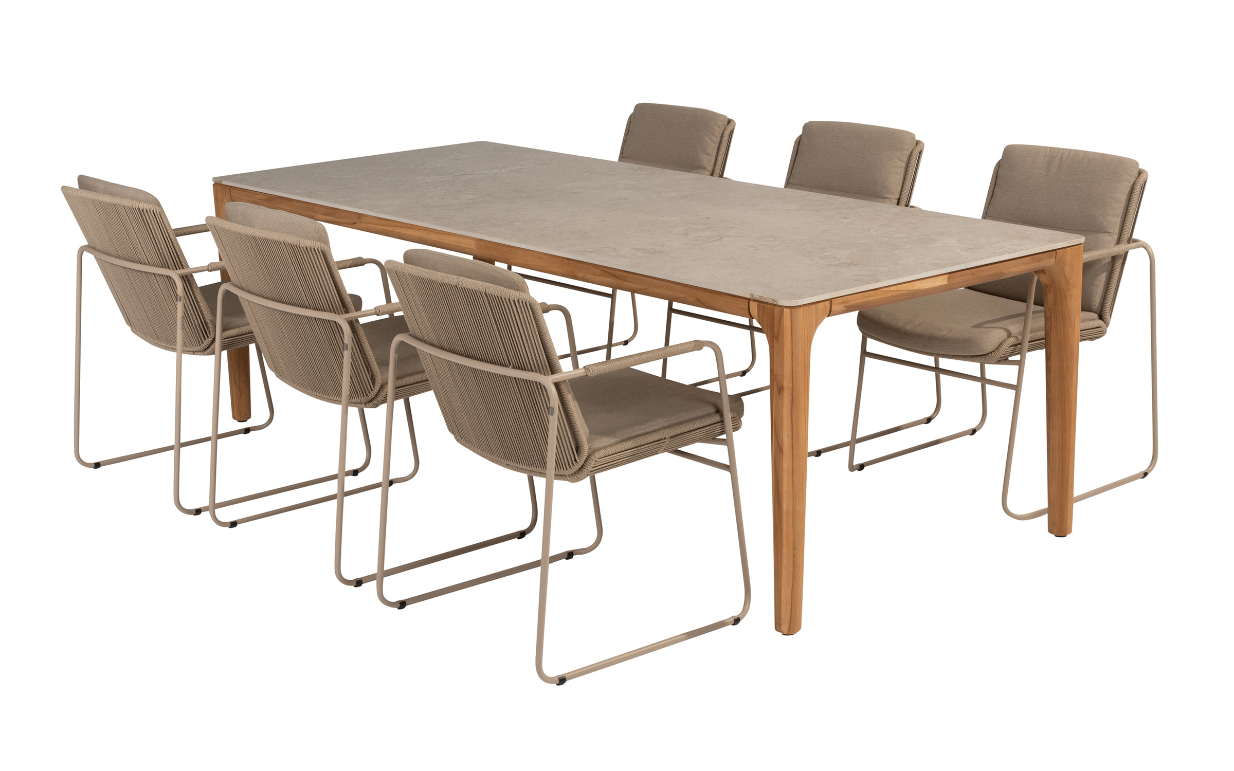 Stół LIAM 240 to piękny stół z podstawą z drewna tekowego. Wersja stołu z blatem ceramicznym.