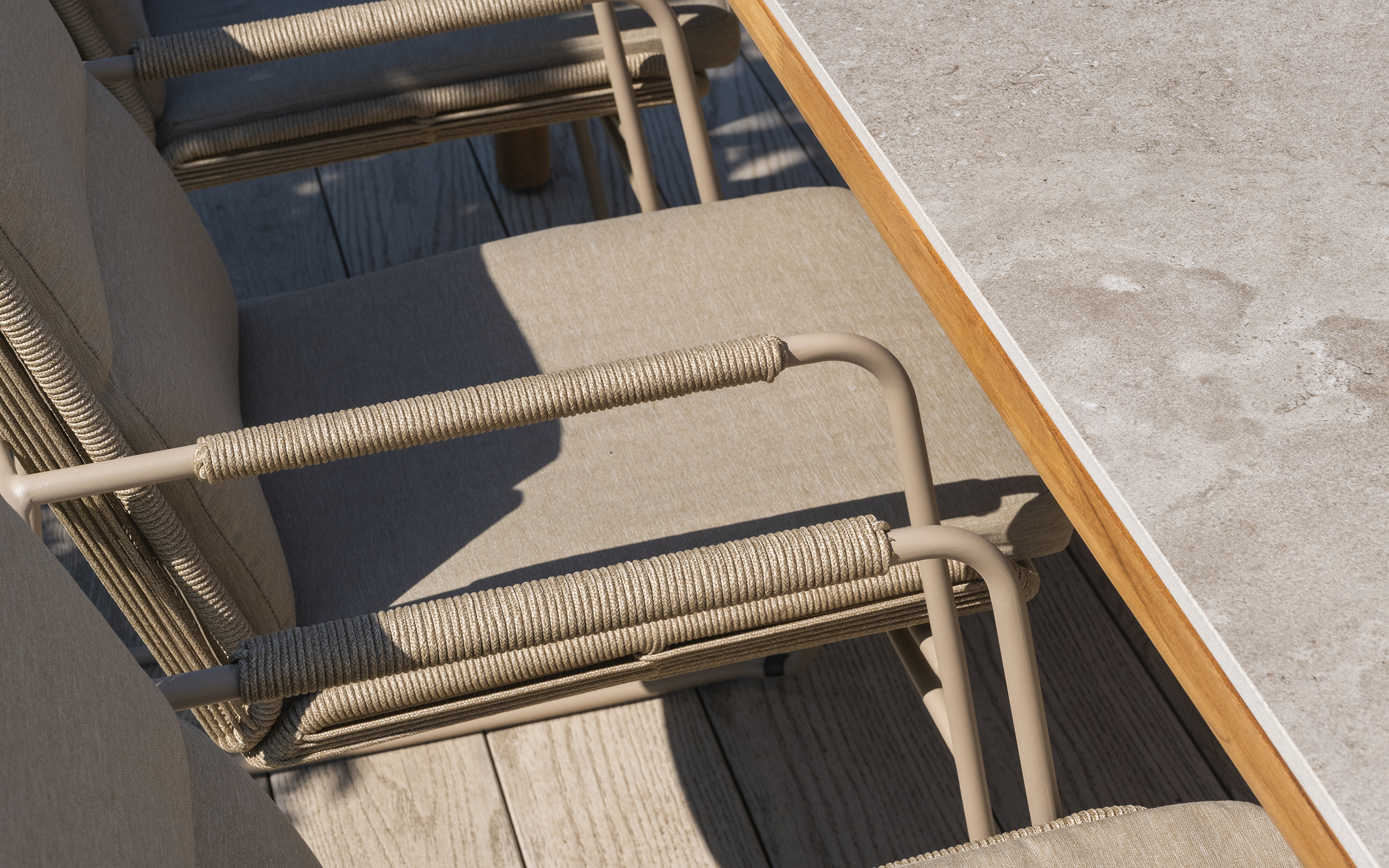 Stół jest odporny na różne warunki pogodowe, doskonale pasuje do naszych popularnych krzeseł ogrodowych, zwłaszcza jeśli posiadają one także elementy z drewna tekowego.
