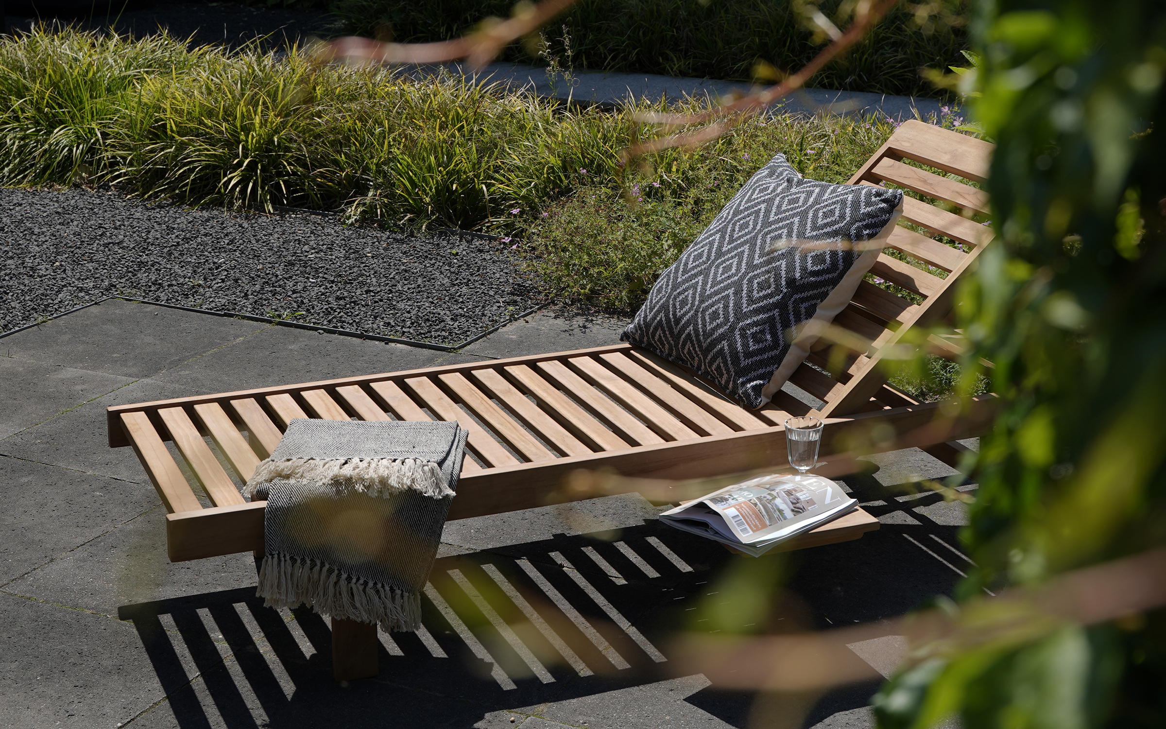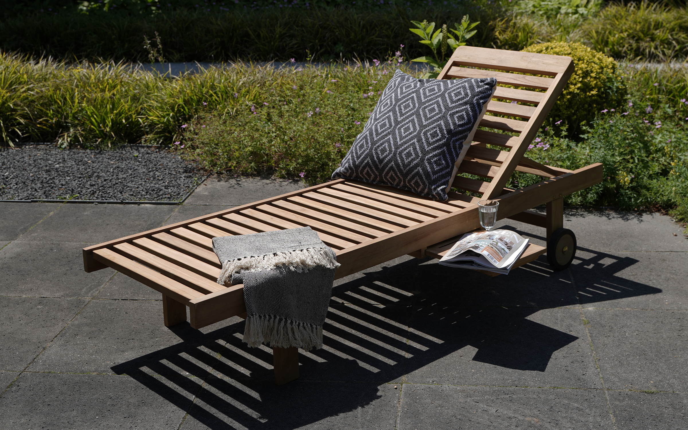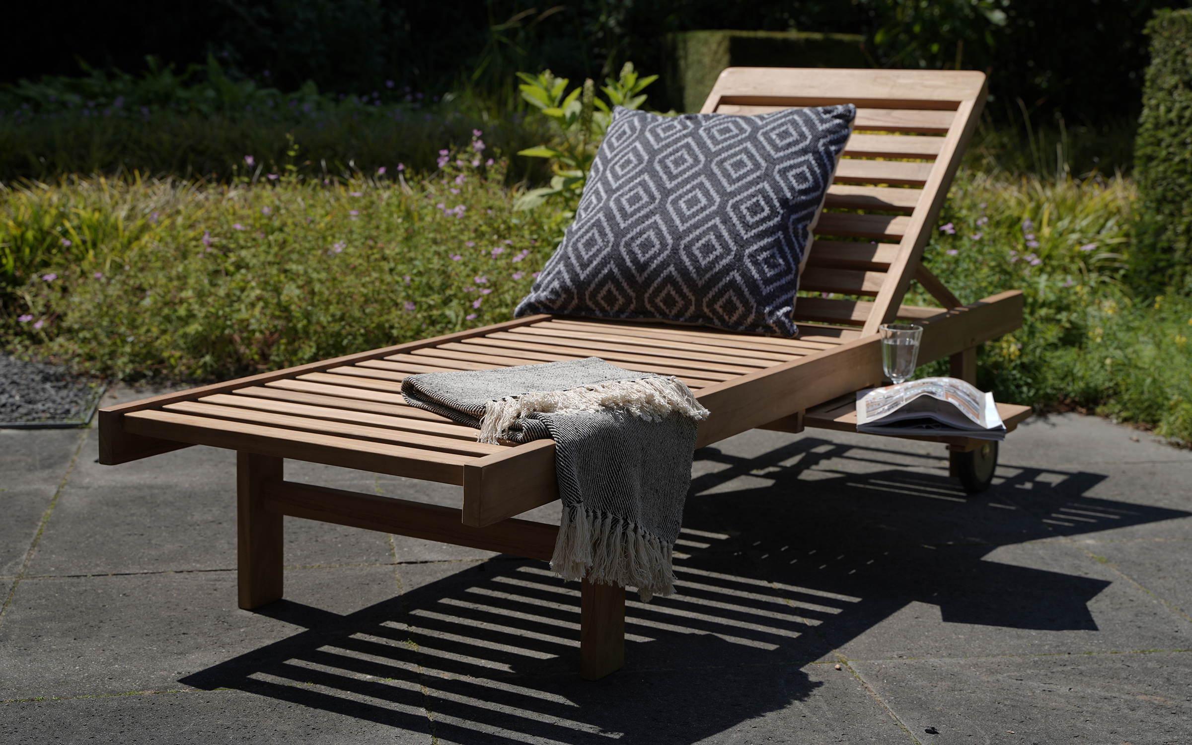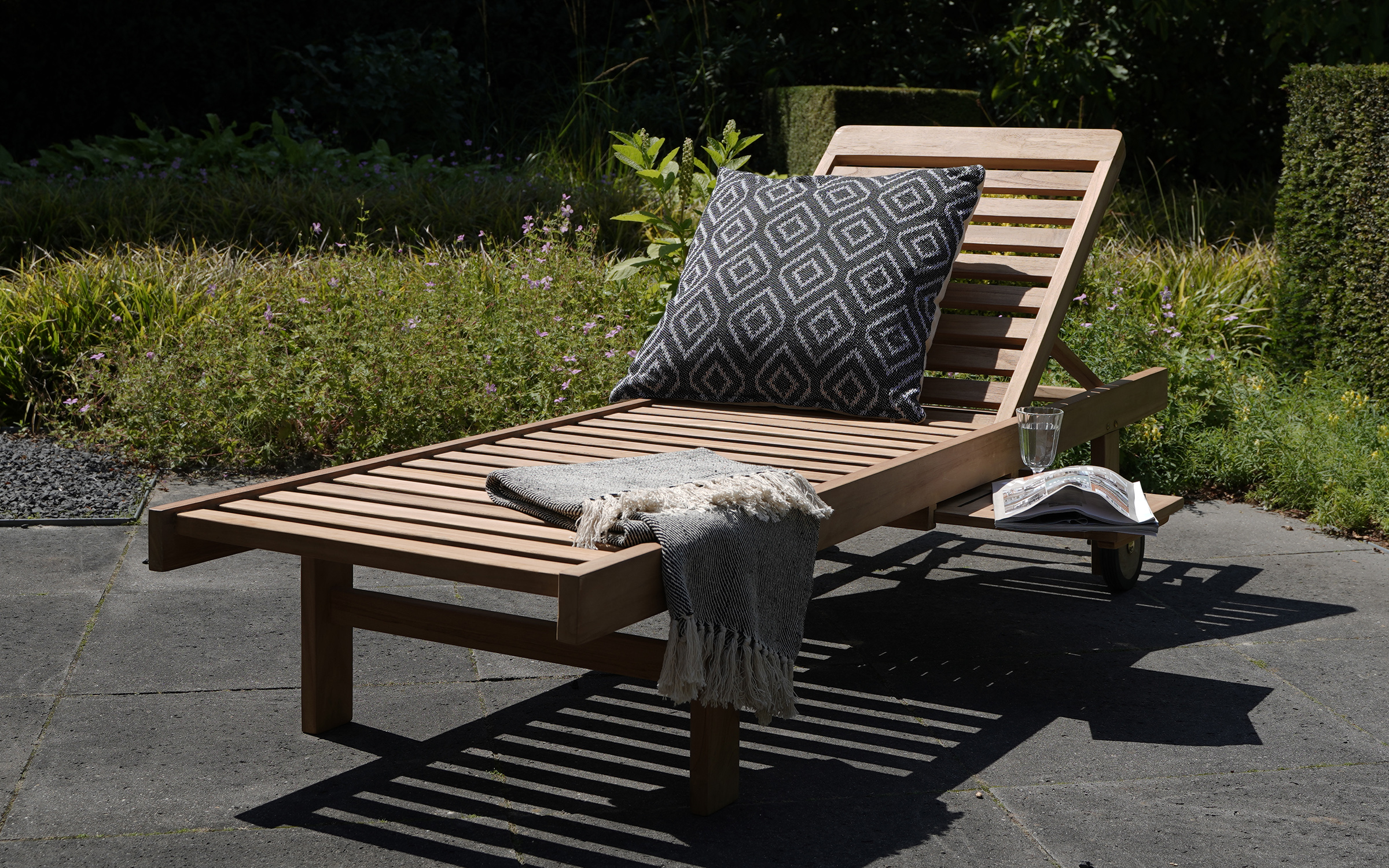 Teak, z którego wykonano leżak, wyróżnia się wyjątkową trwałością i odpornością na zmienne warunki atmosferyczne, co czyni go doskonałym wyborem zarówno na taras, balkon, jak i do ogrodu.