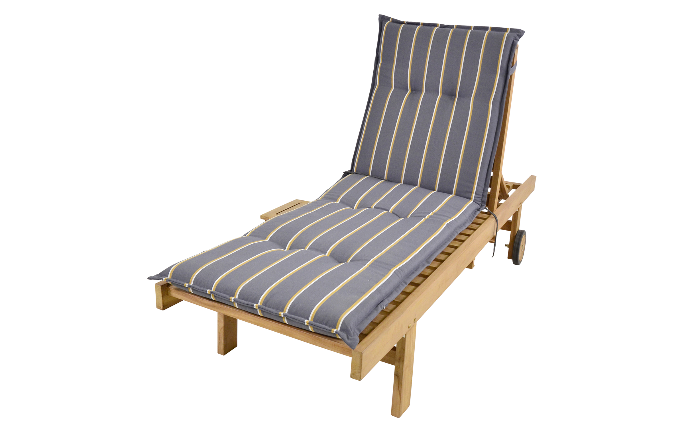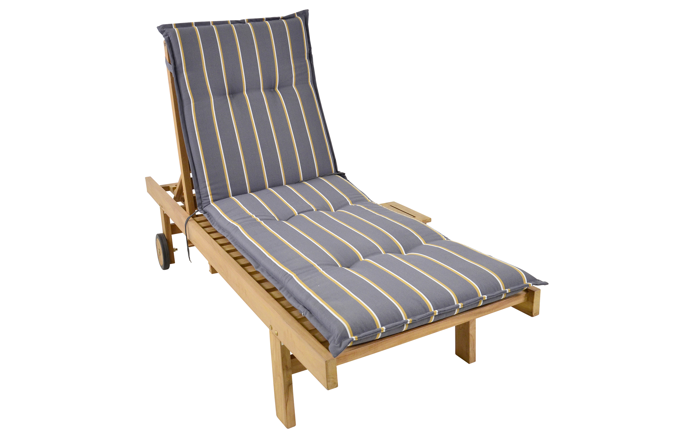 Dla jeszcze większego komfortu dostępna jest opcjonalna poduszka w eleganckim, szarym wzorze w pasy. Wykonana w 100% z poliestru, z wypełnieniem z pianki PU o grubości 3,5 cm oraz włókniną 300 g/m², zapewnia miękkość i wygodę podczas wypoczynku. Poduszka o wymiarach 190×60×8 cm posiada paski mocujące, dzięki czemu stabilnie utrzymuje się na miejscu nawet podczas dłuższego użytkowania.