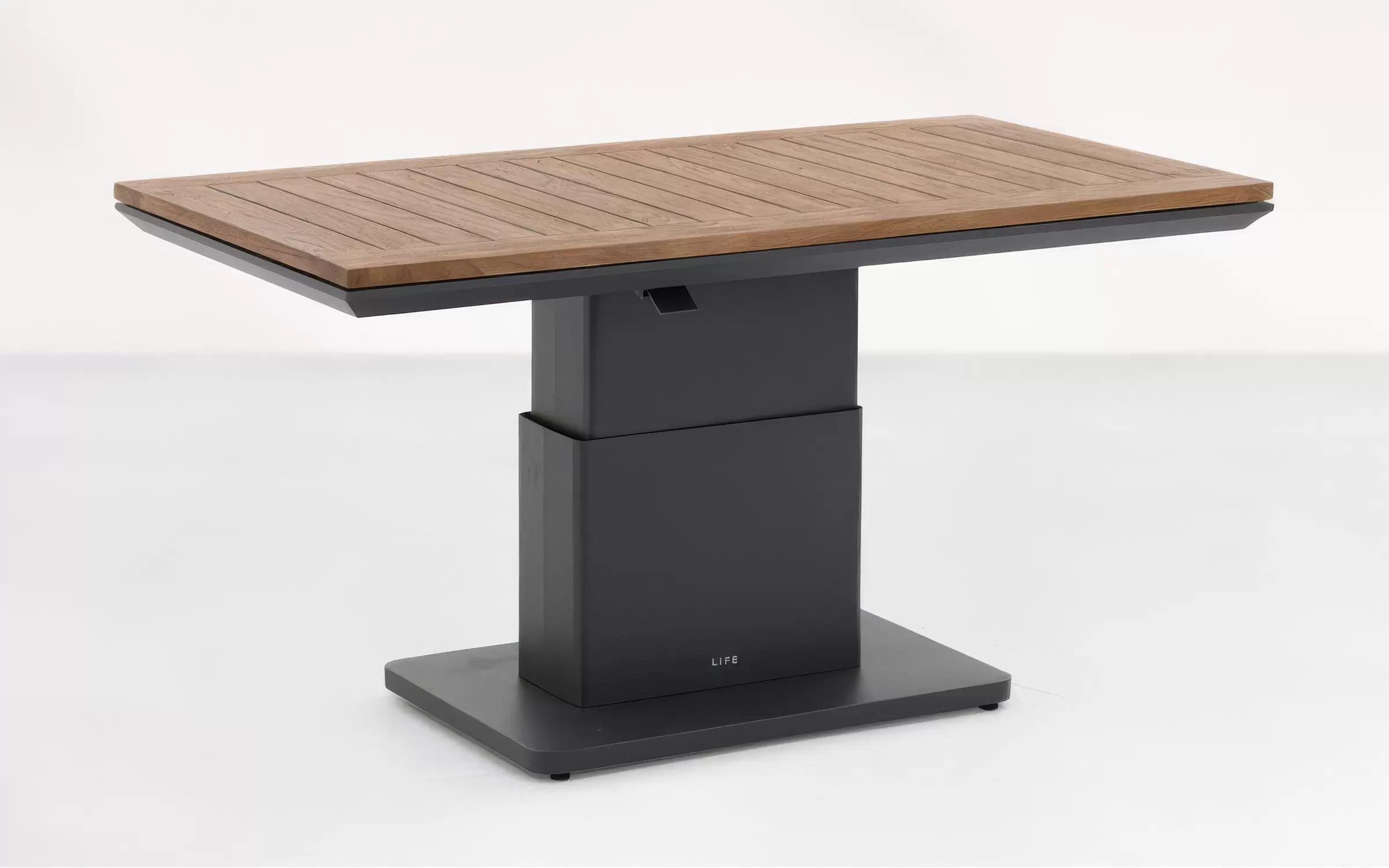 LUCA Stolik ogrodowy podnoszony 140×75 cm aluminium antracyt z blatem teak
