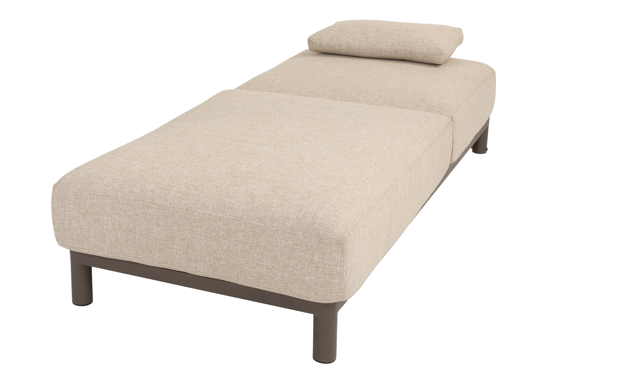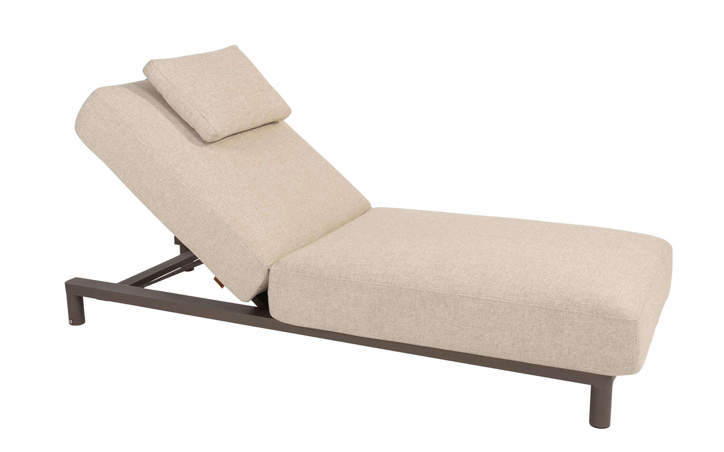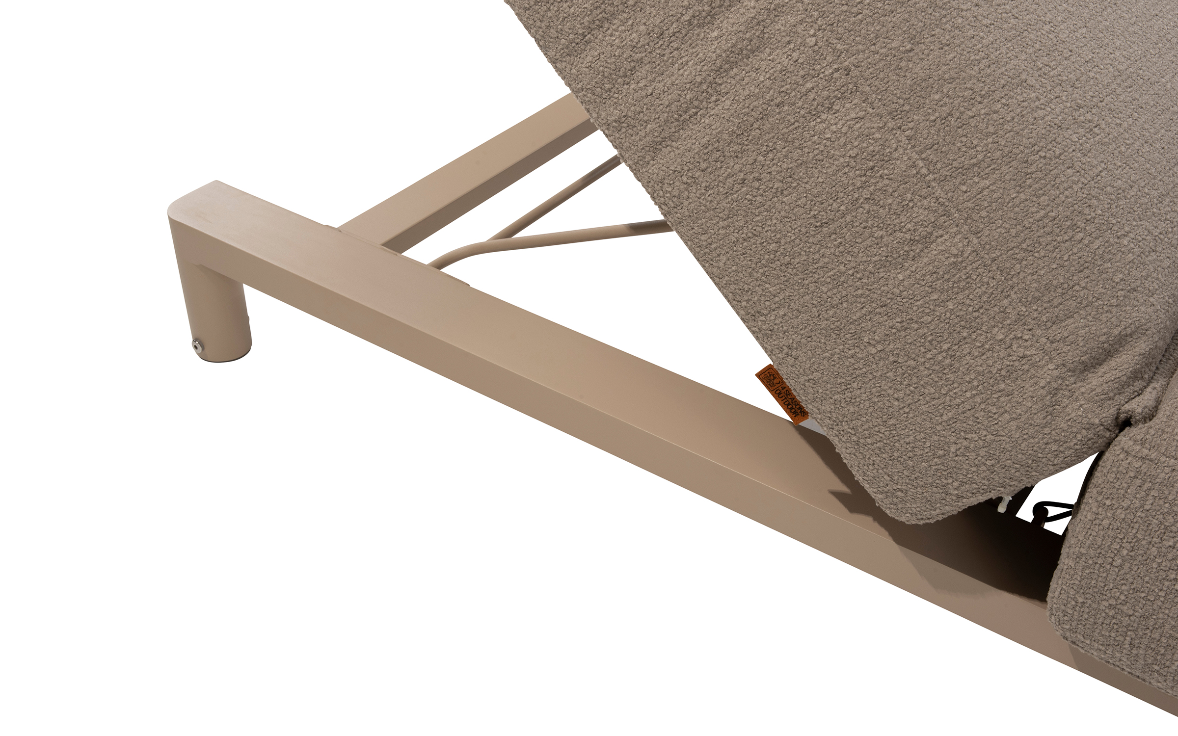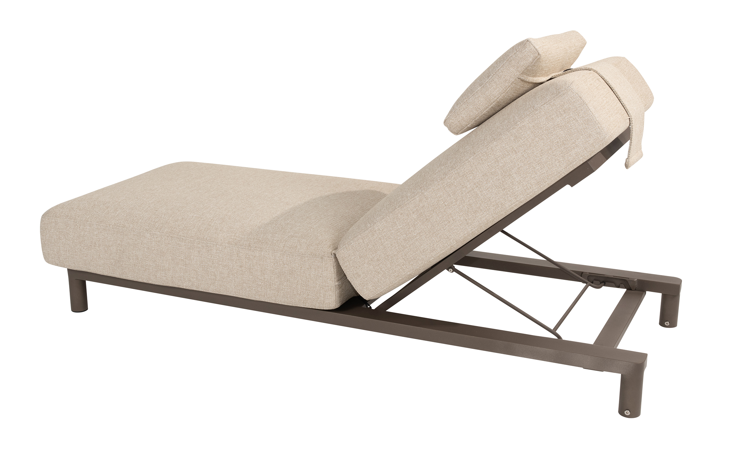 Leżak Madeira to luksusowa leżanka, która łączy w sobie styl i wygodę z solidną aluminiową ramą w eleganckim kolorze terre (ciemny brąz) lub beżowym oraz wyjątkowo okazałymi poduszkami.