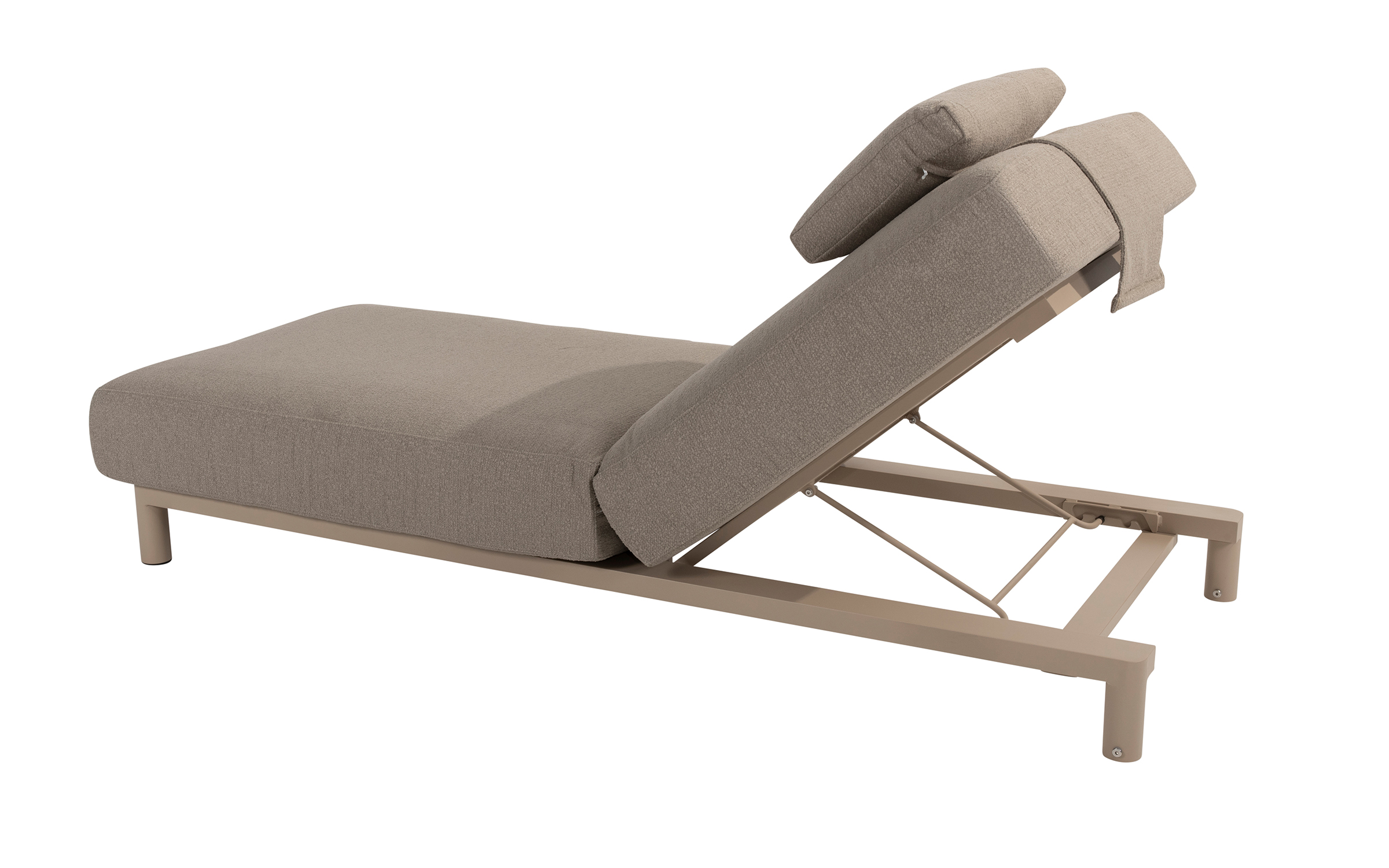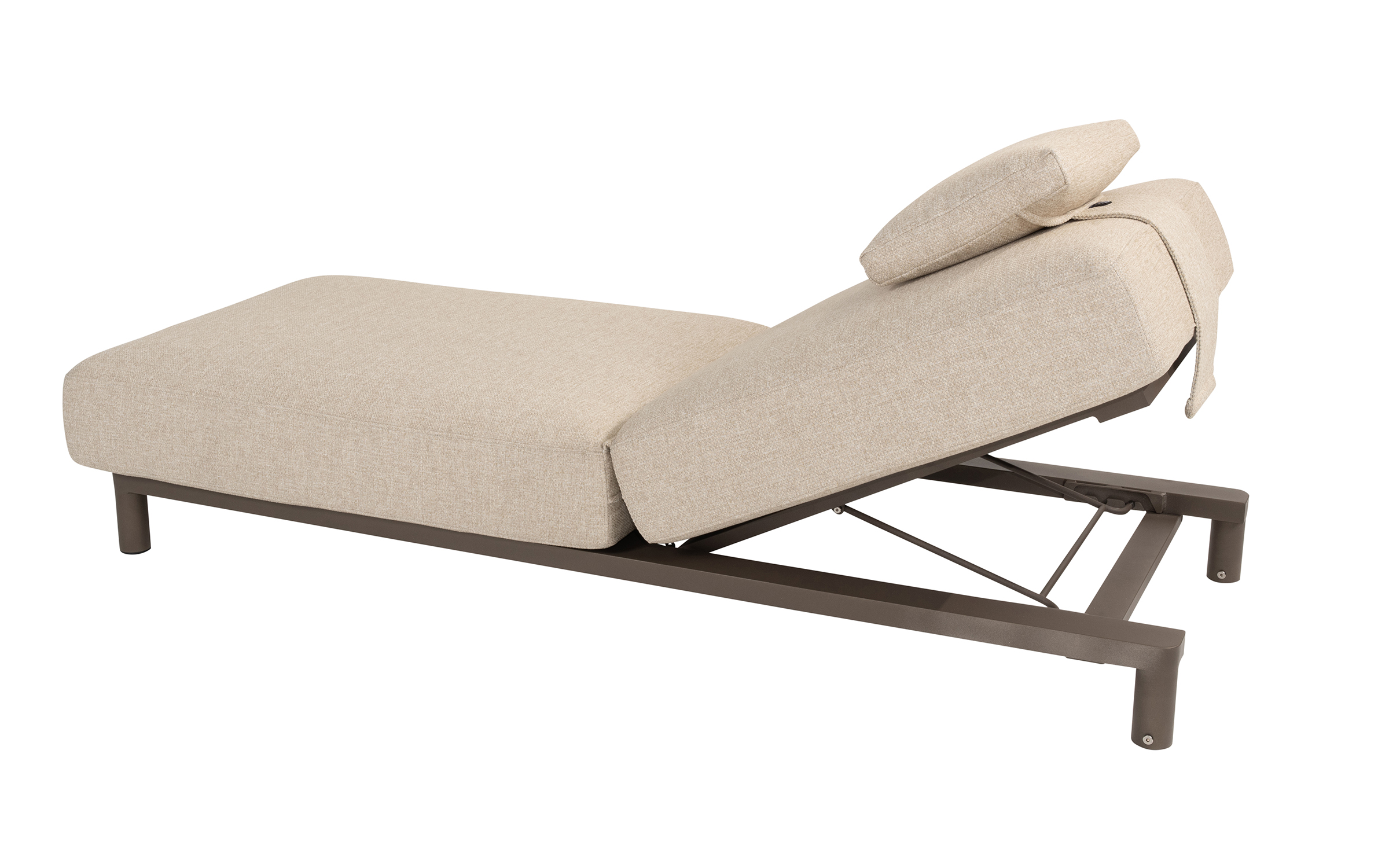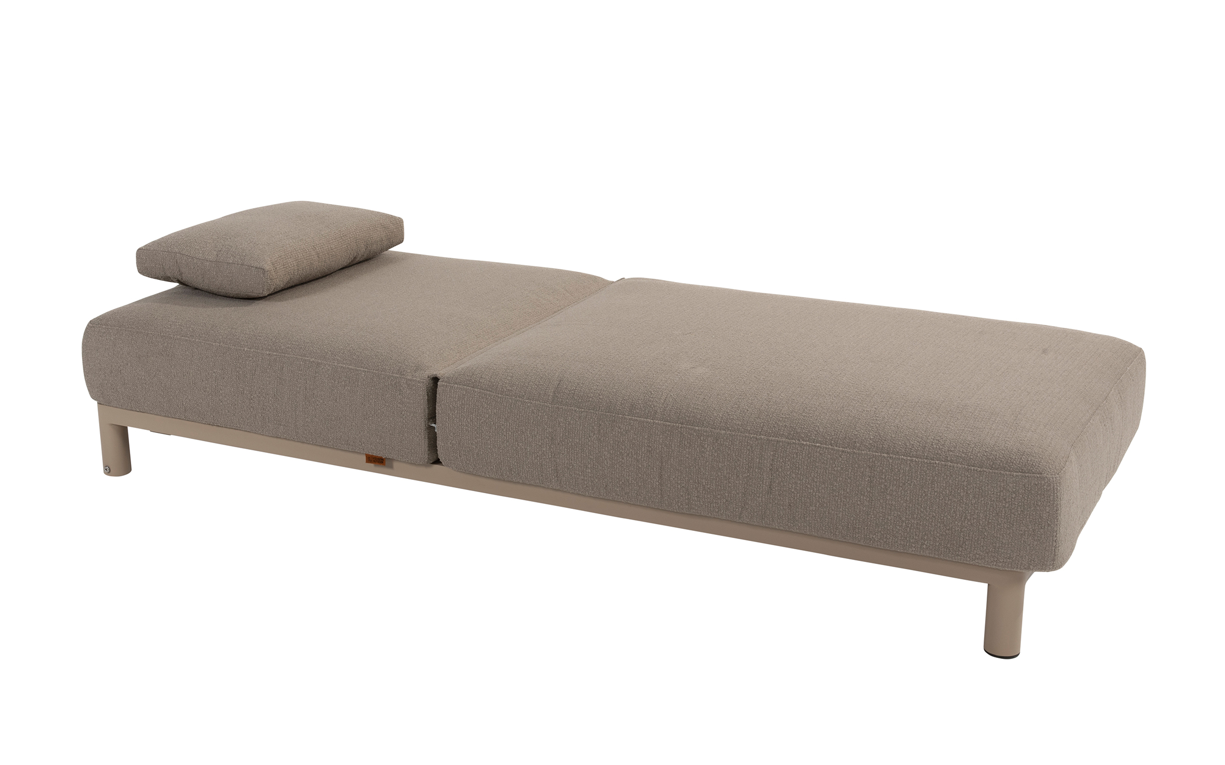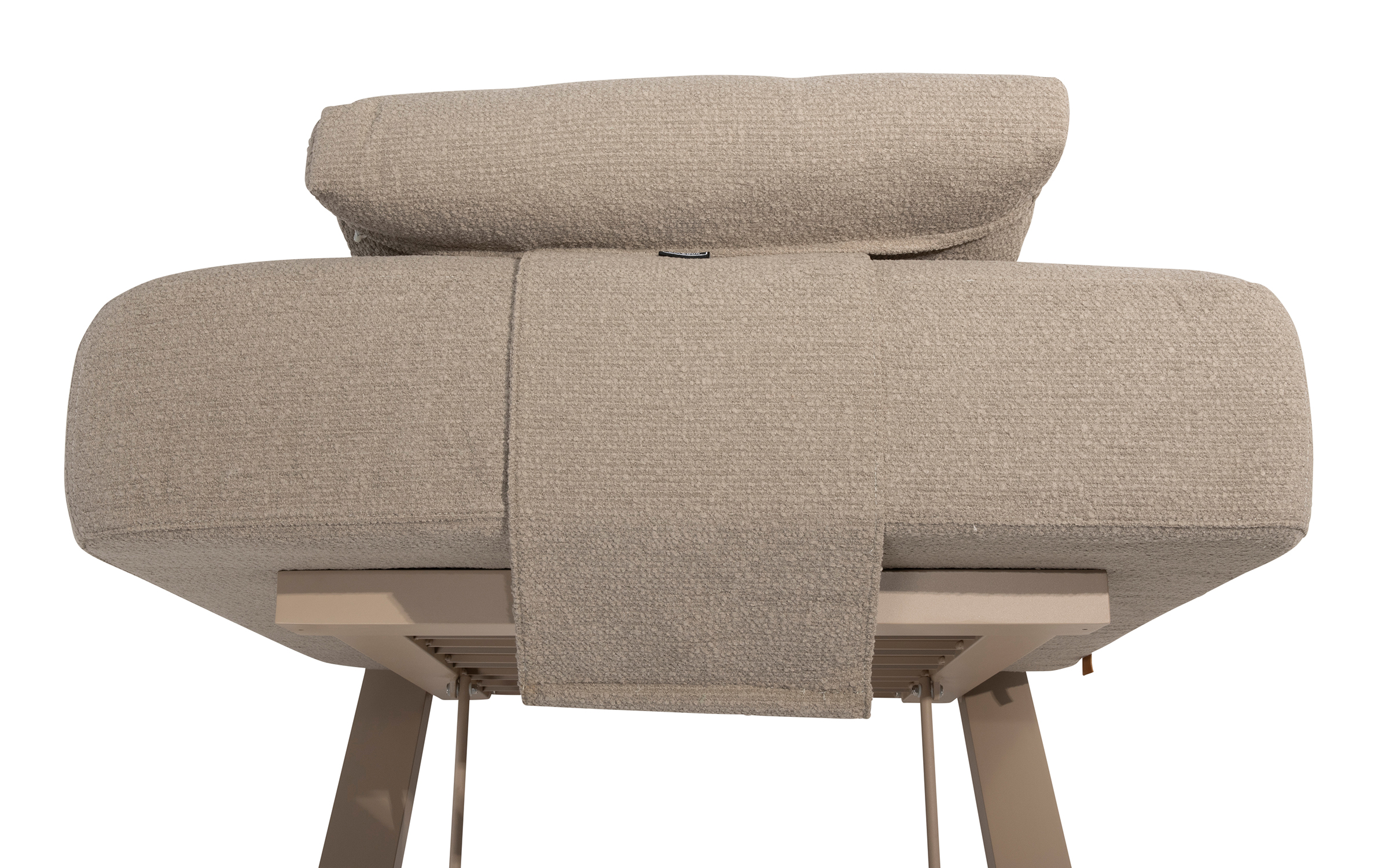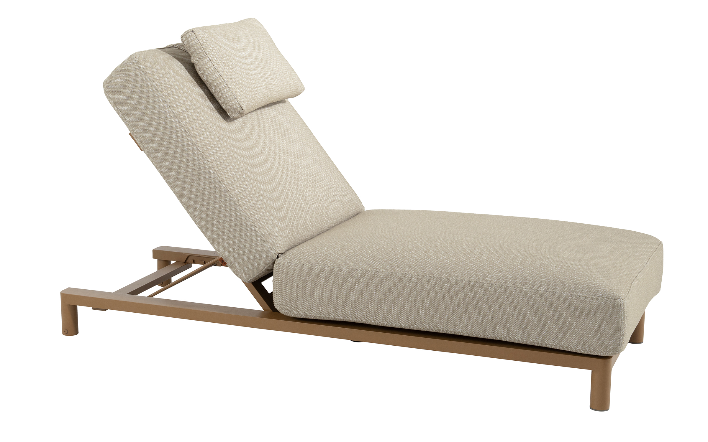 Leżak Madeira to luksusowa leżanka, która łączy w sobie styl i wygodę z solidną aluminiową ramą w eleganckim kolorze terre (ciemny brąz) lub beżowym oraz wyjątkowo okazałymi poduszkami.