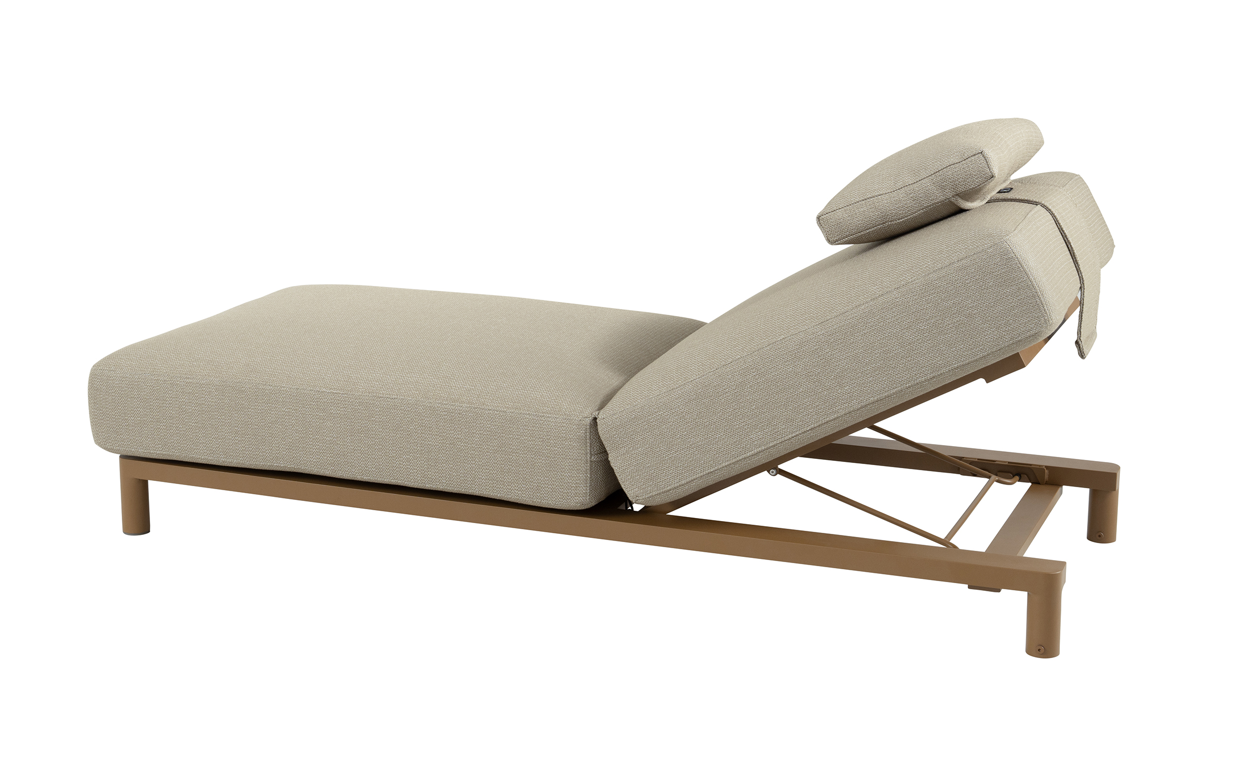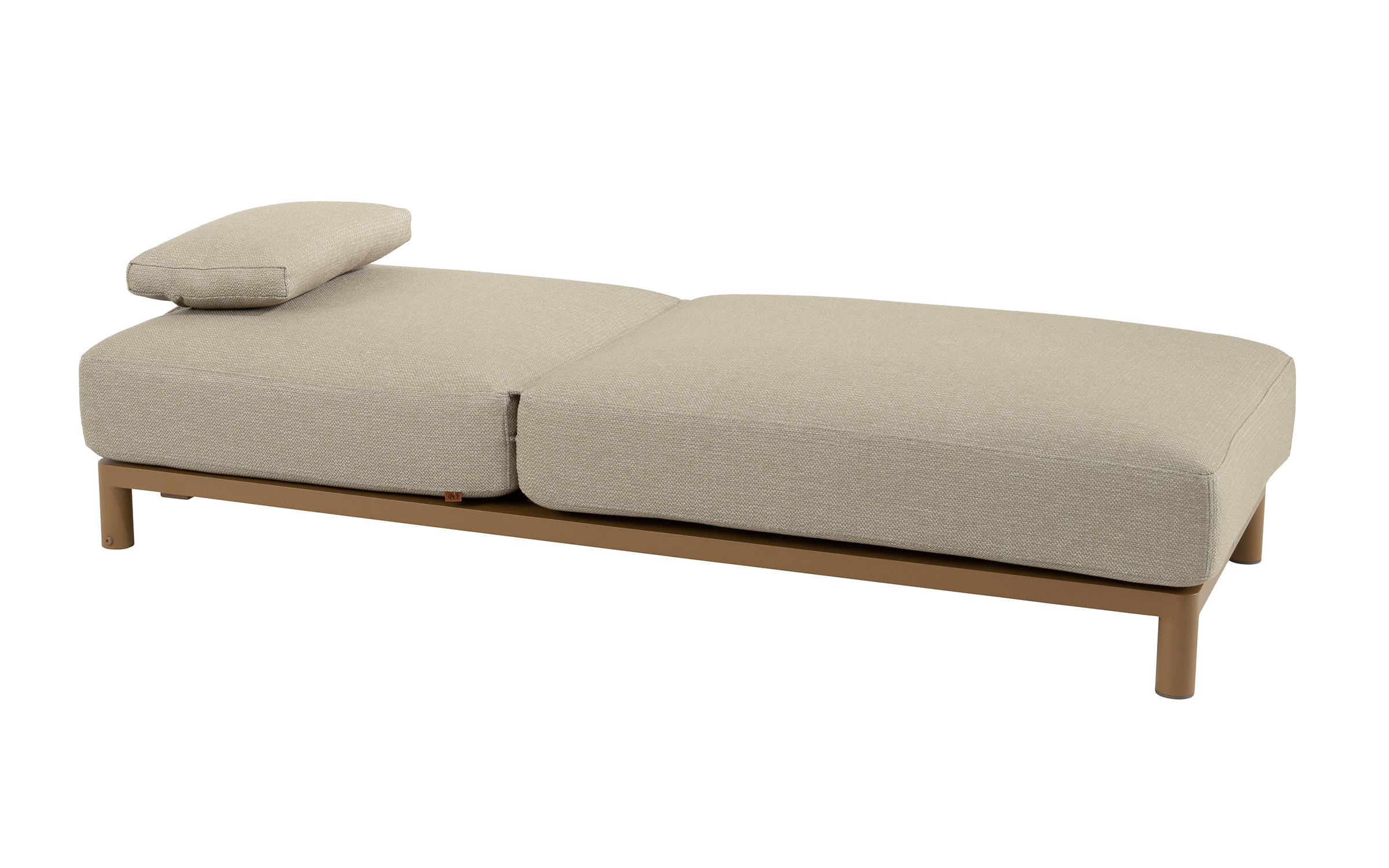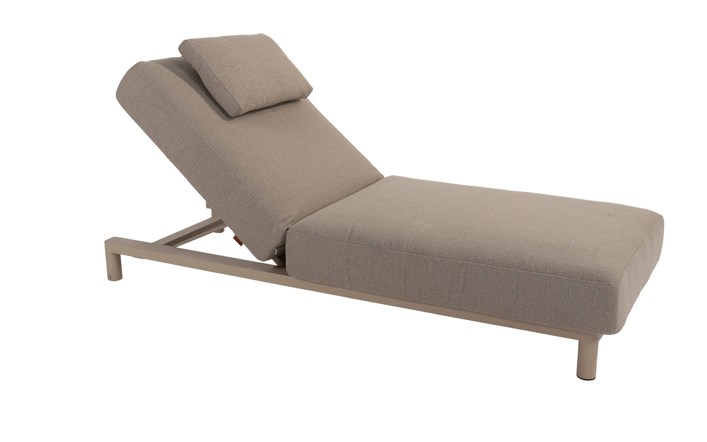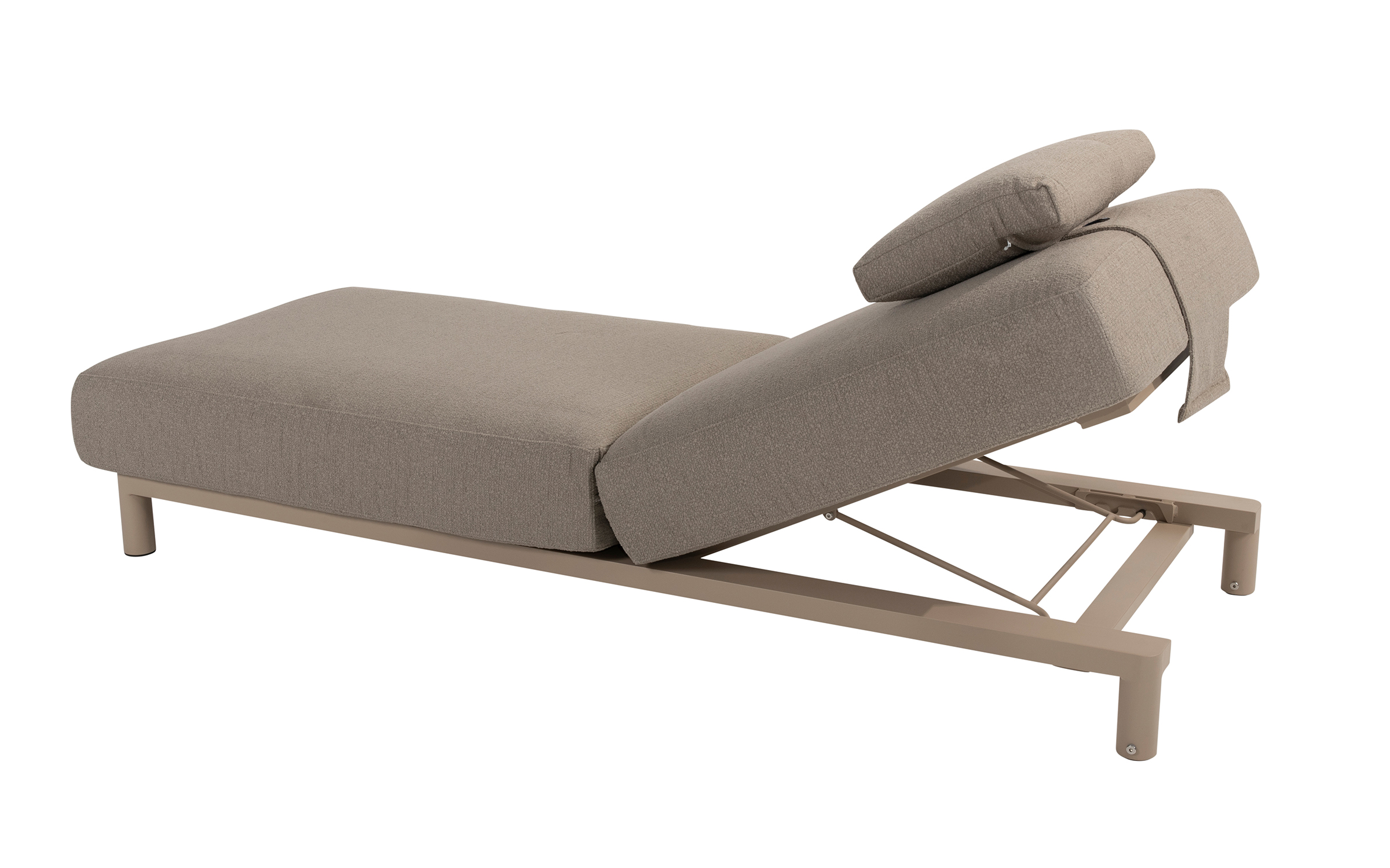Leżak Madeira to luksusowa leżanka, która łączy w sobie styl i wygodę z solidną aluminiową ramą w eleganckim kolorze terre (ciemny brąz) lub beżowym oraz wyjątkowo okazałymi poduszkami.