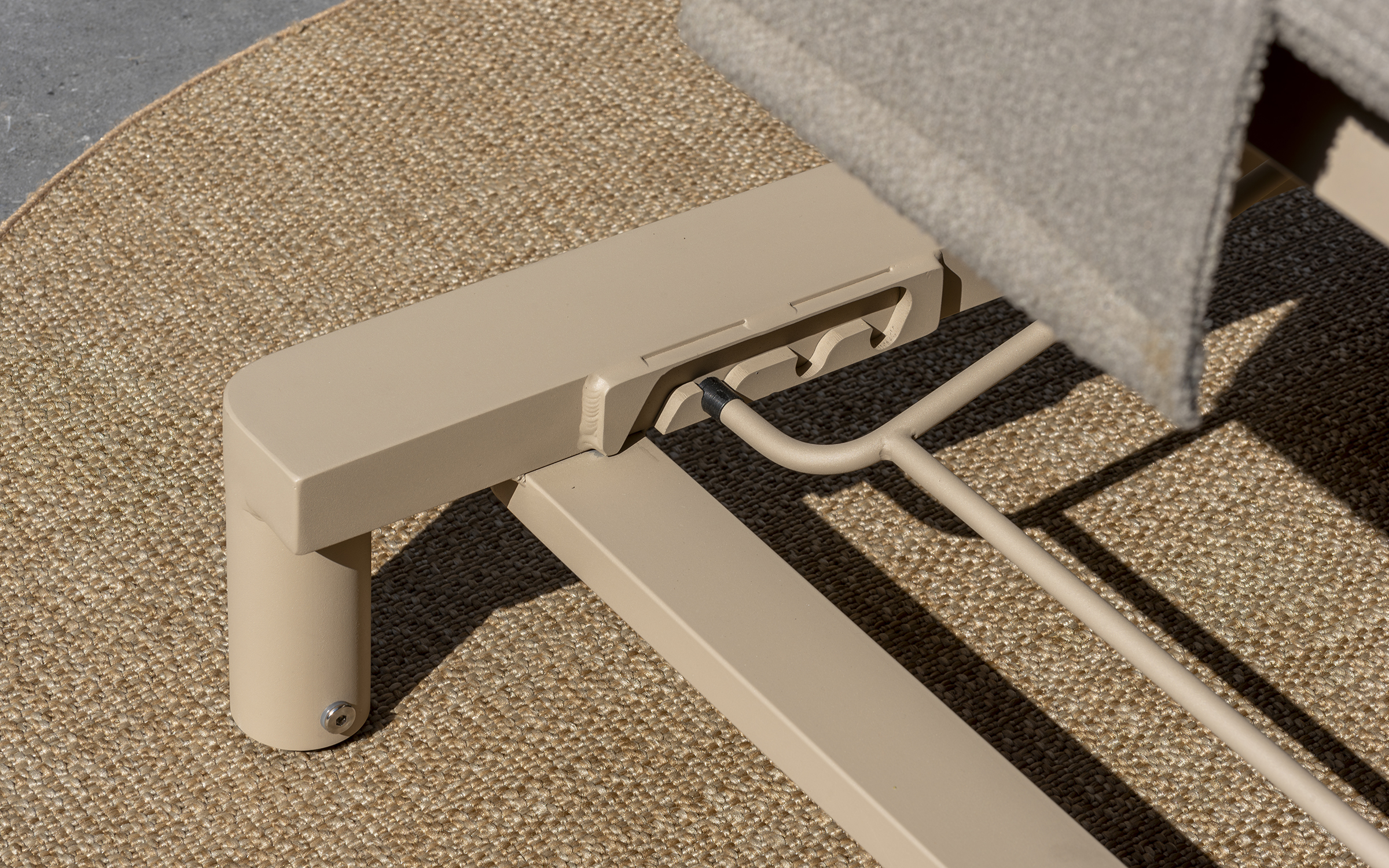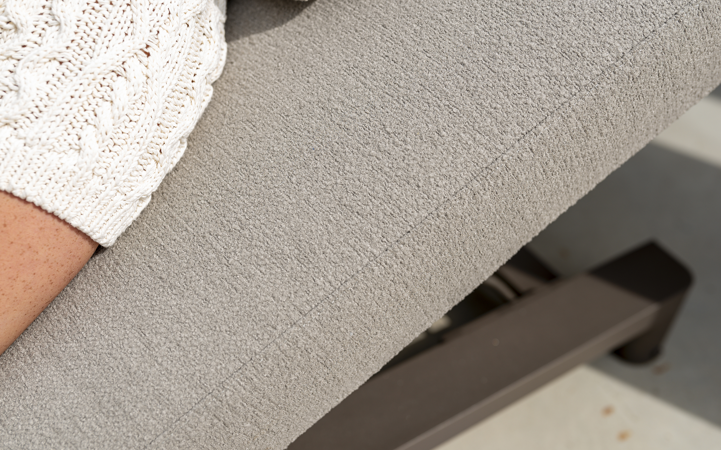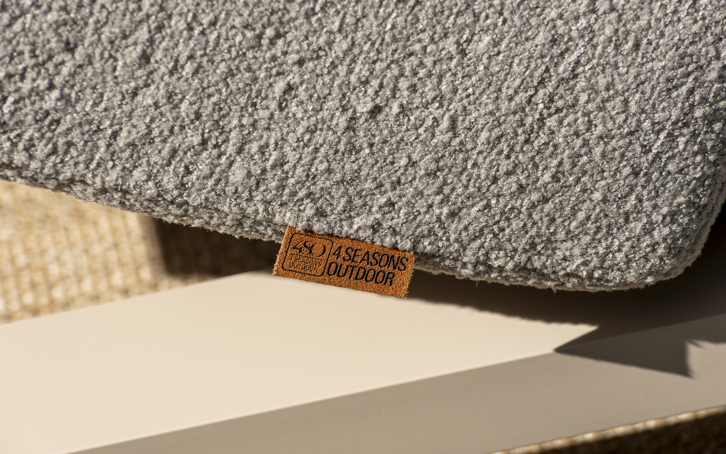 Zdejmowane poszewki obiciowe z materiału Boucle wyplecionego z odpornych na działanie UV i wody włókien polipropylenowych.