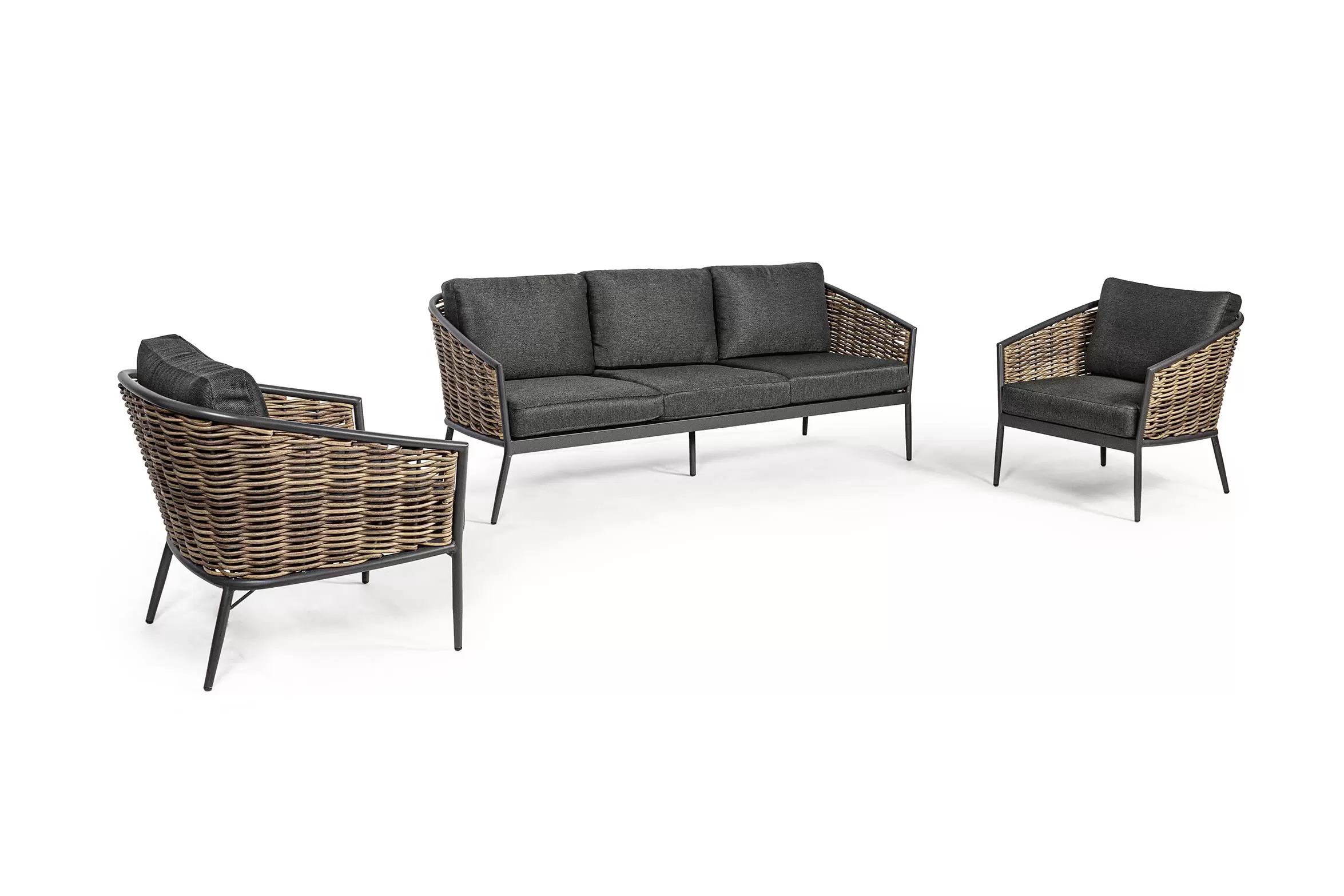 Ciemnoszare meble ogrodowe wypoczynkowe aluminiowe boki technorattan MARIBELA bizzotto