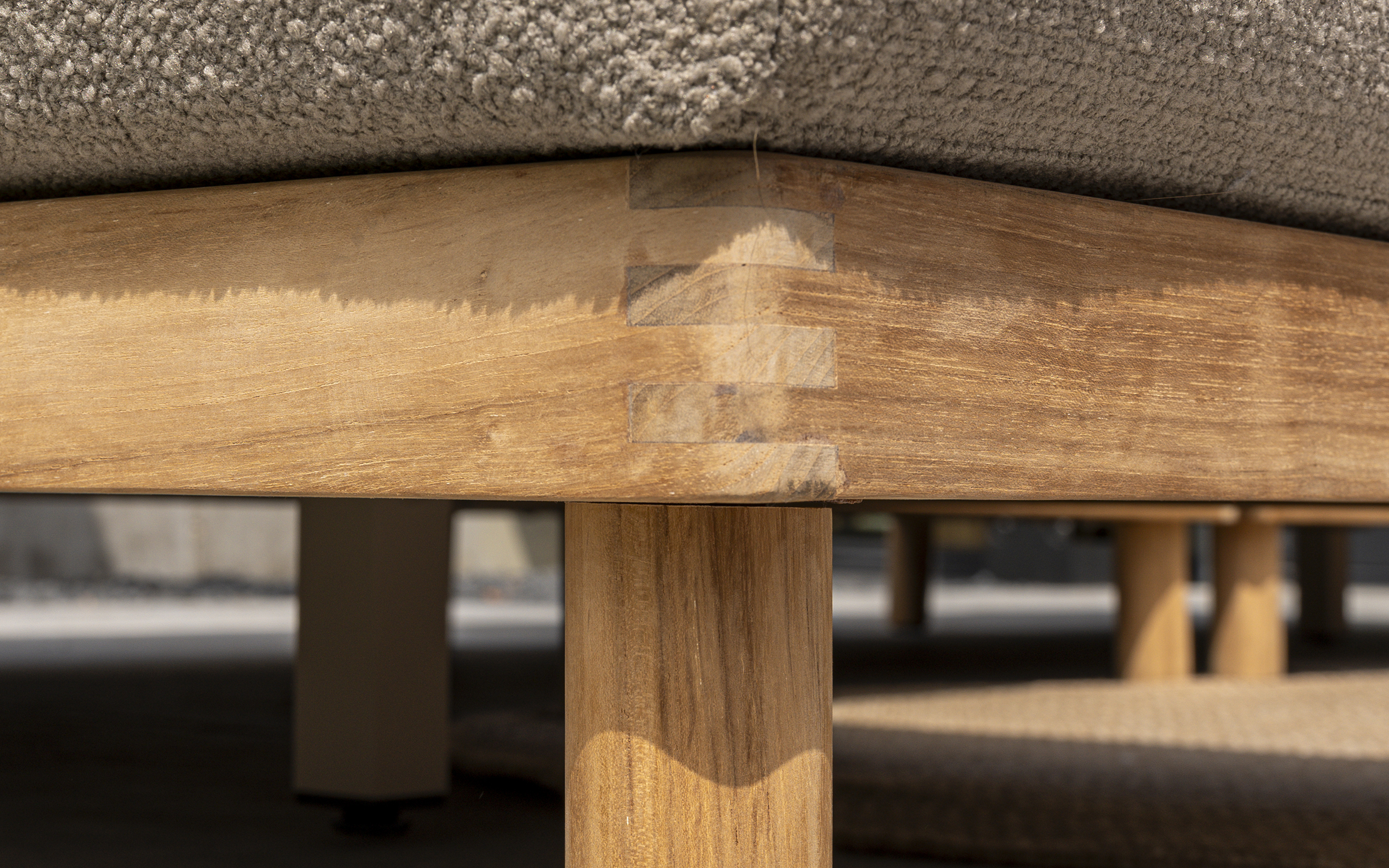 Zdejmowane poszewki obiciowe z materiału Boucle wyplecionego z odpornych na działanie UV i wody włókien polipropylenowych.