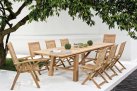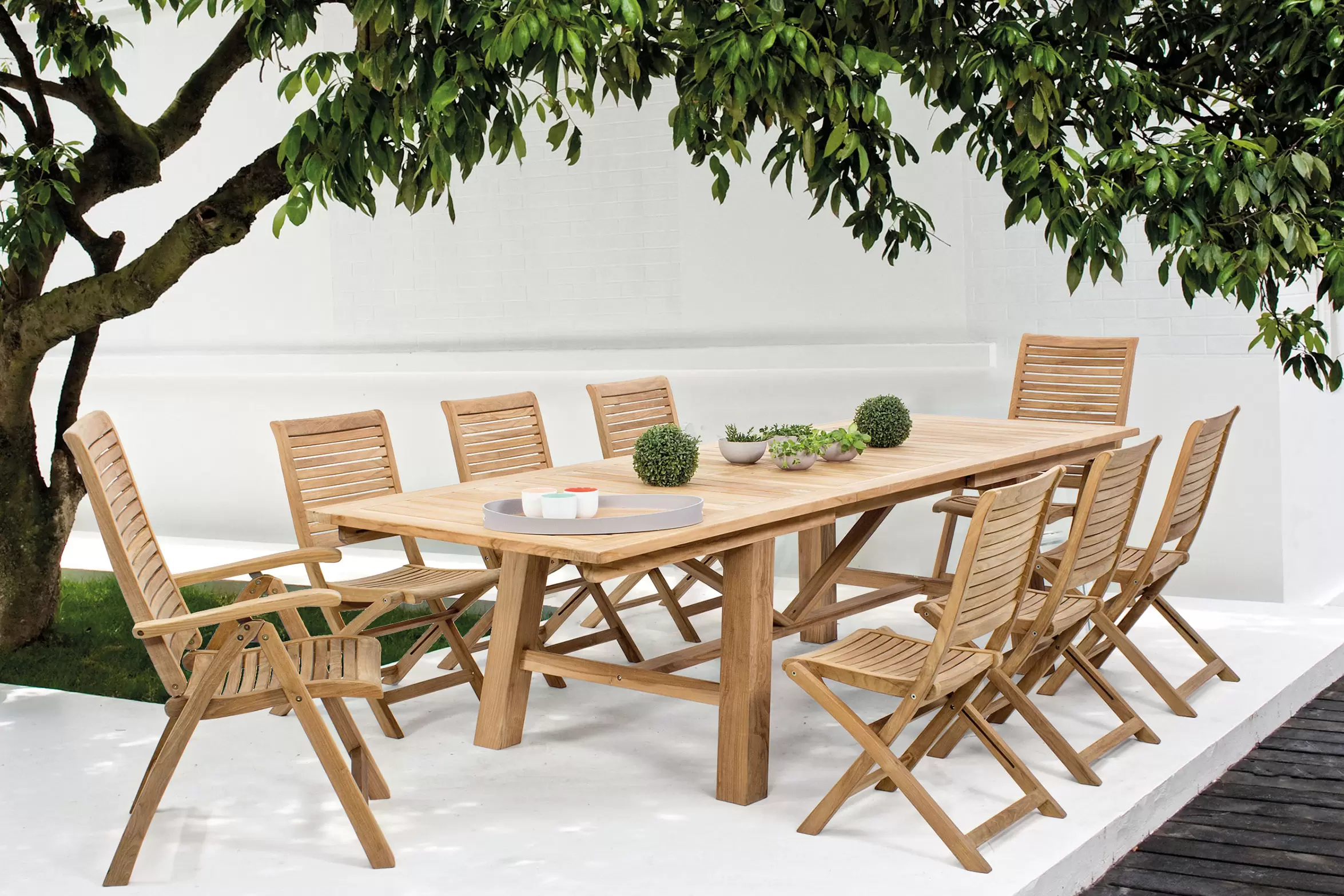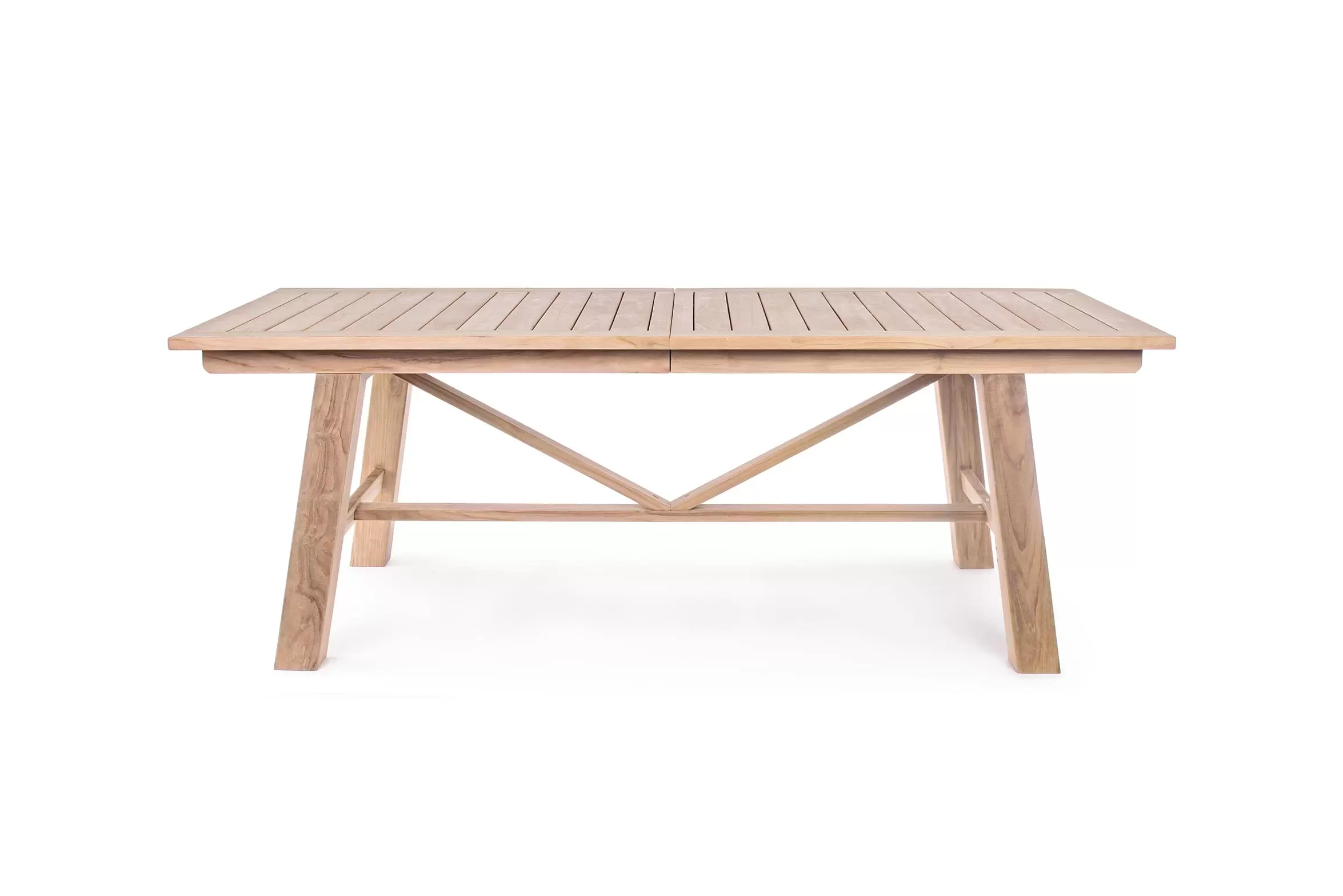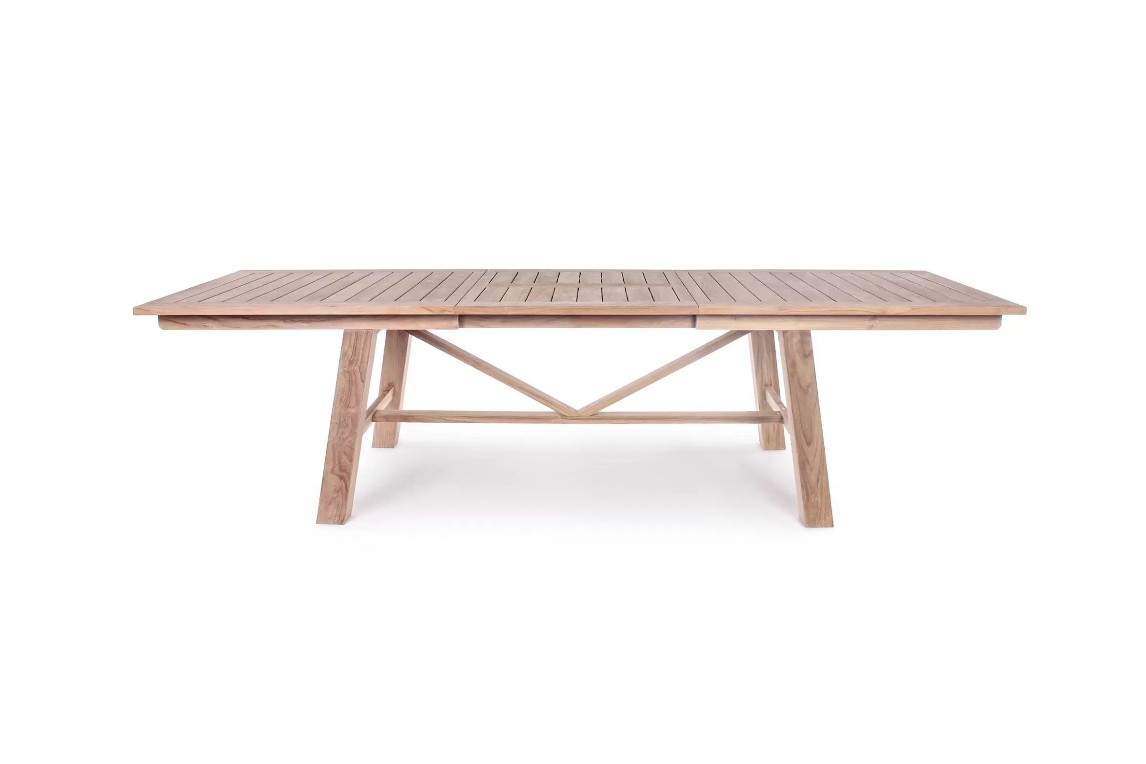 Stół z drewna teakowego do wnętrz, ogrodu zimowego i na zadaszony taras. Wydłużany blat z motylkowym systemem rozkładania.