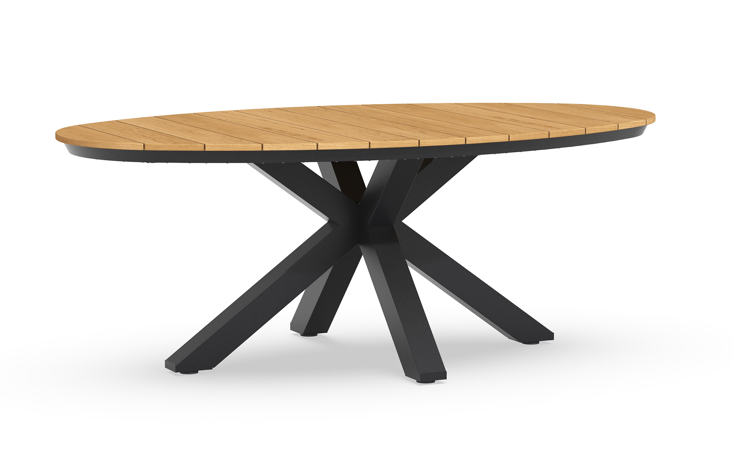Stół ogrodowy z blatem z drewna teak o podstawie aluminiowej malowanej proszkowo. Stół dostępny w 2 wersjach: 200x110 lub 220x130 cm.