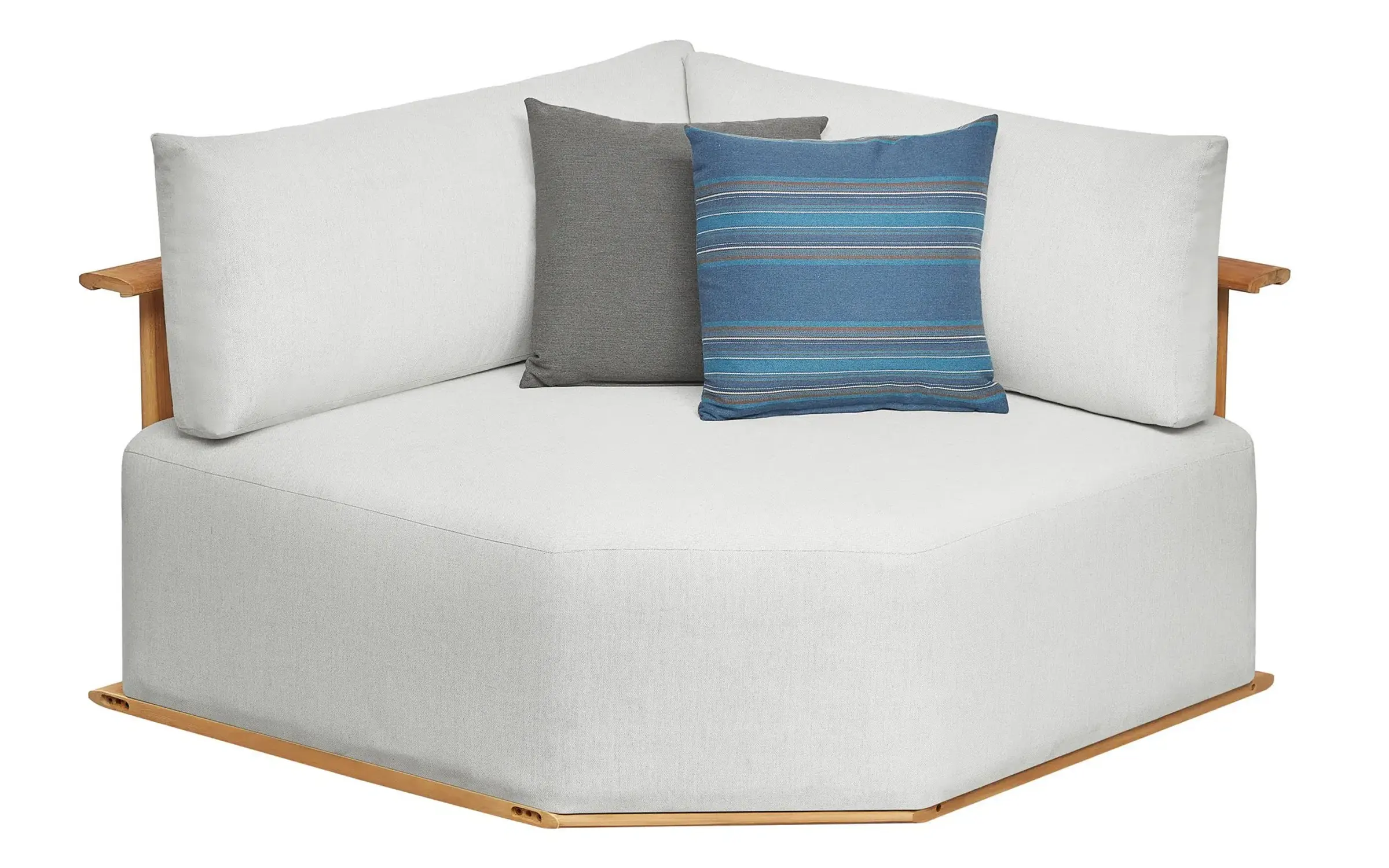 Poduszki Olefin są przystosowane do użytku na zewnątrz, łatwe w czyszczeniu, szybko schną, odporne na UV i warunki atmosferyczne.
