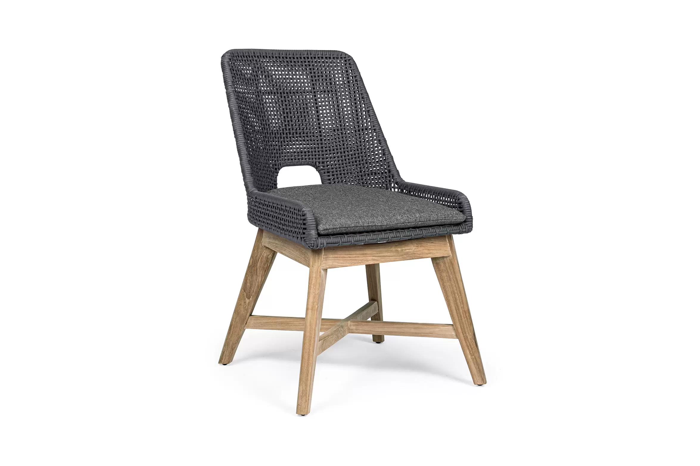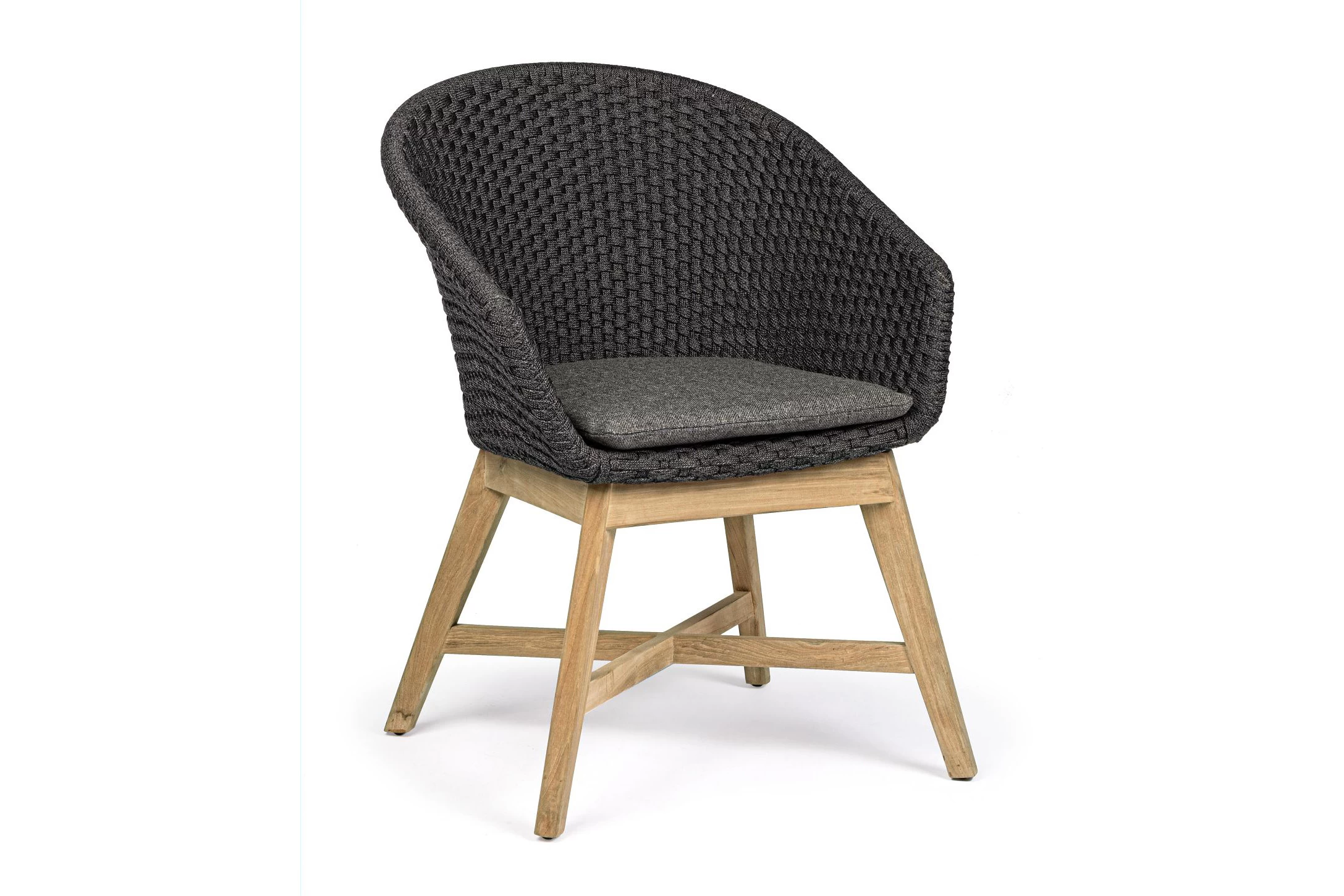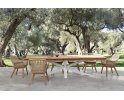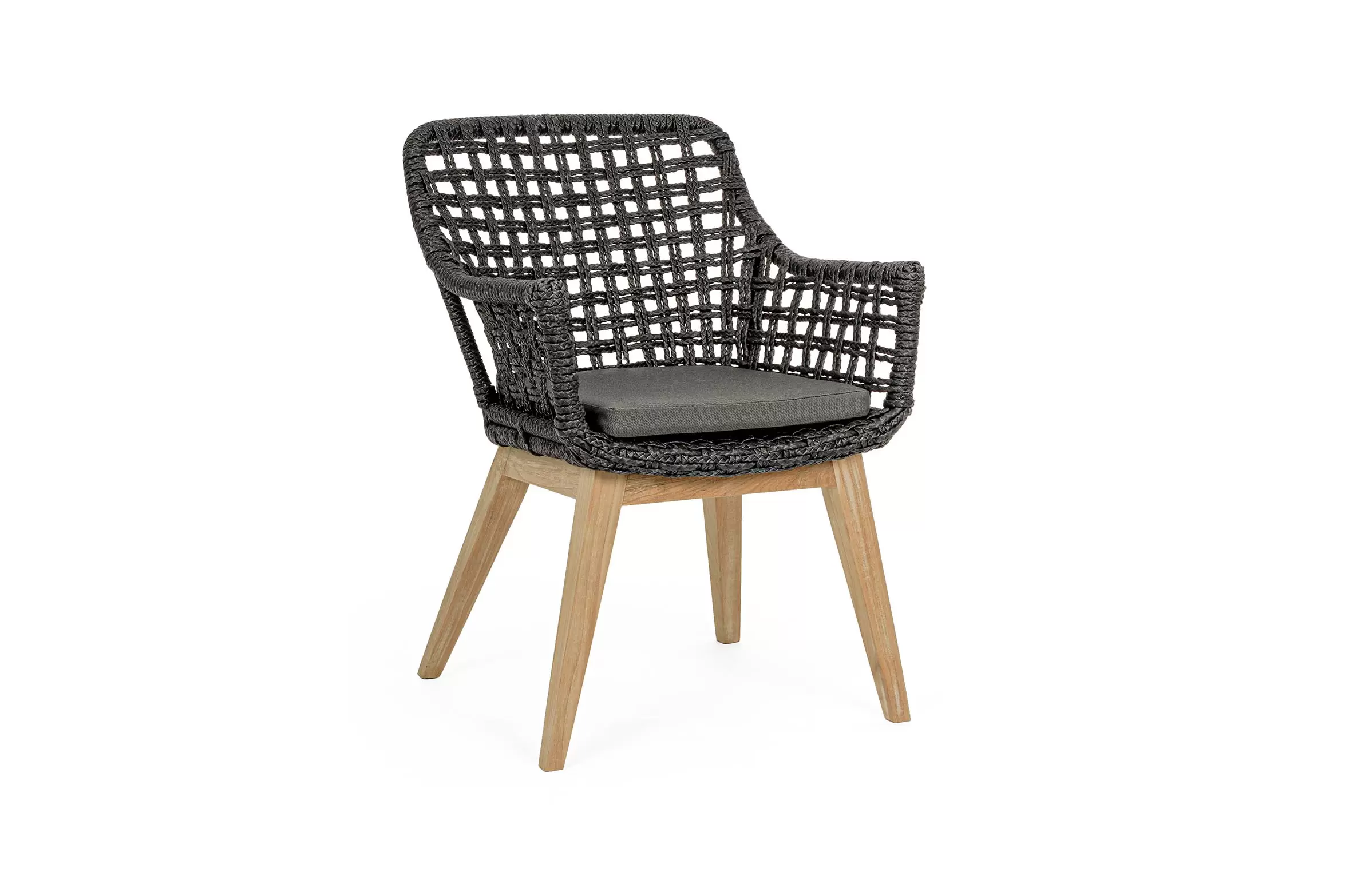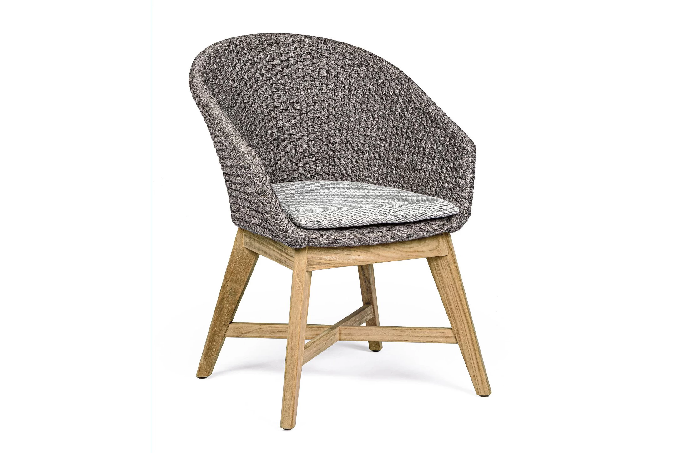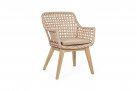 Fotele - podstawa z drewna teak. siedziska w zależności od modelu lina polipropylenowa lub tkanina Viro.