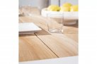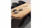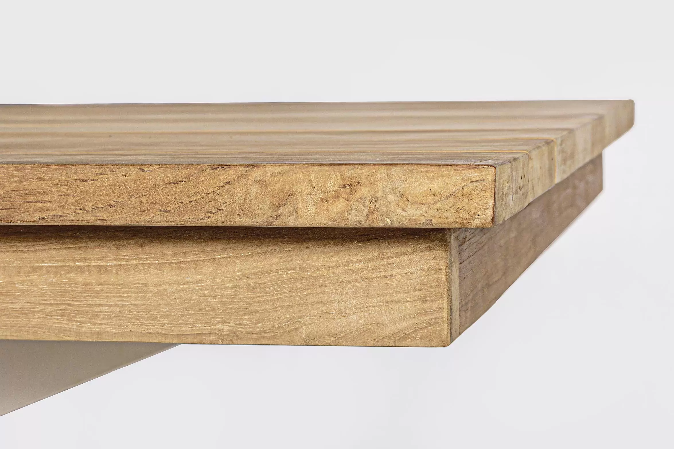 Aluminiowa konstrukcja krzyżowych nóg malowana proszkowo na kolor biały lub antracyt. Blat stołu z teku - svlk (prawne drewno indonezyjskie), z rustykalnym wykończeniem.