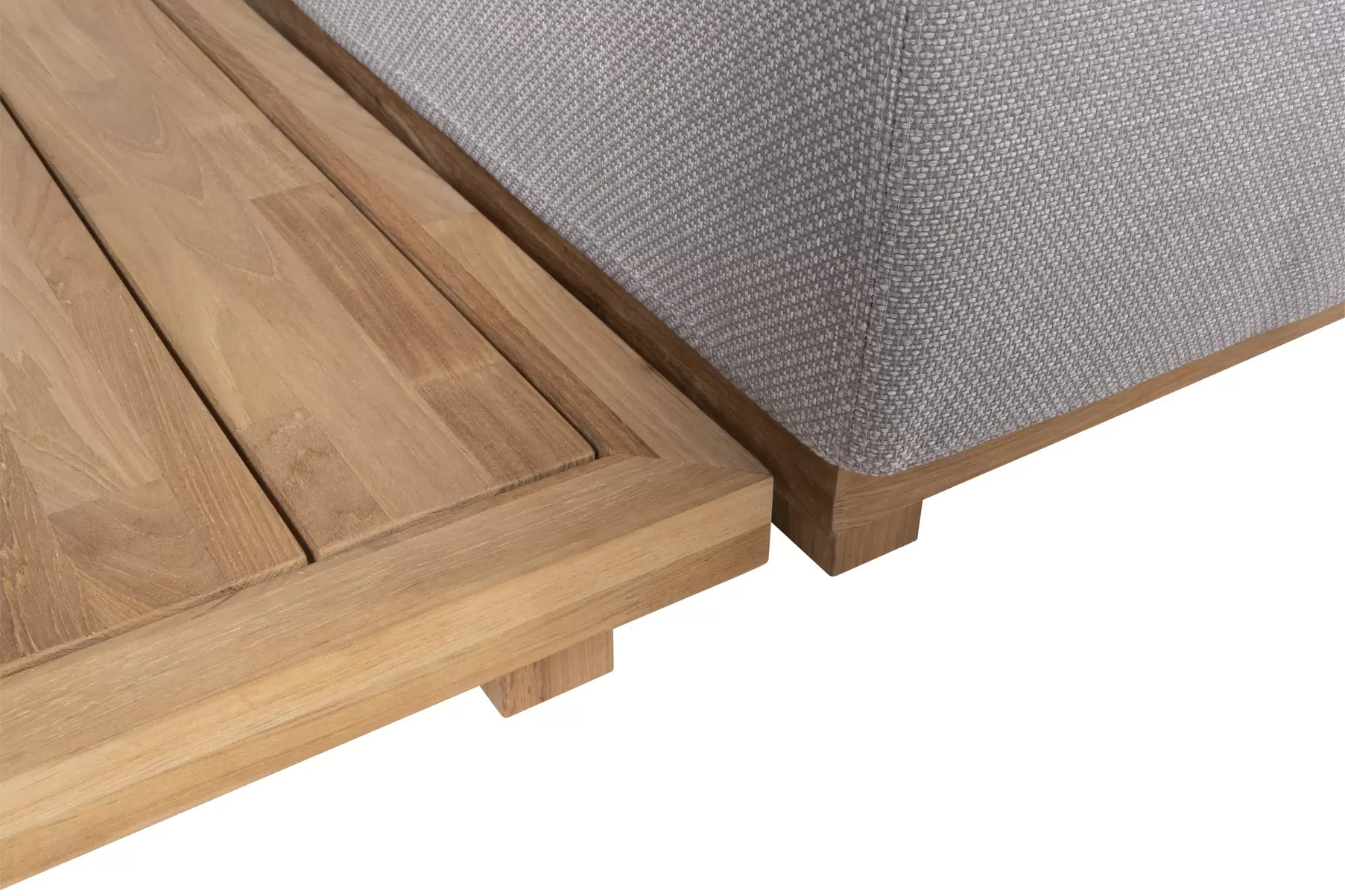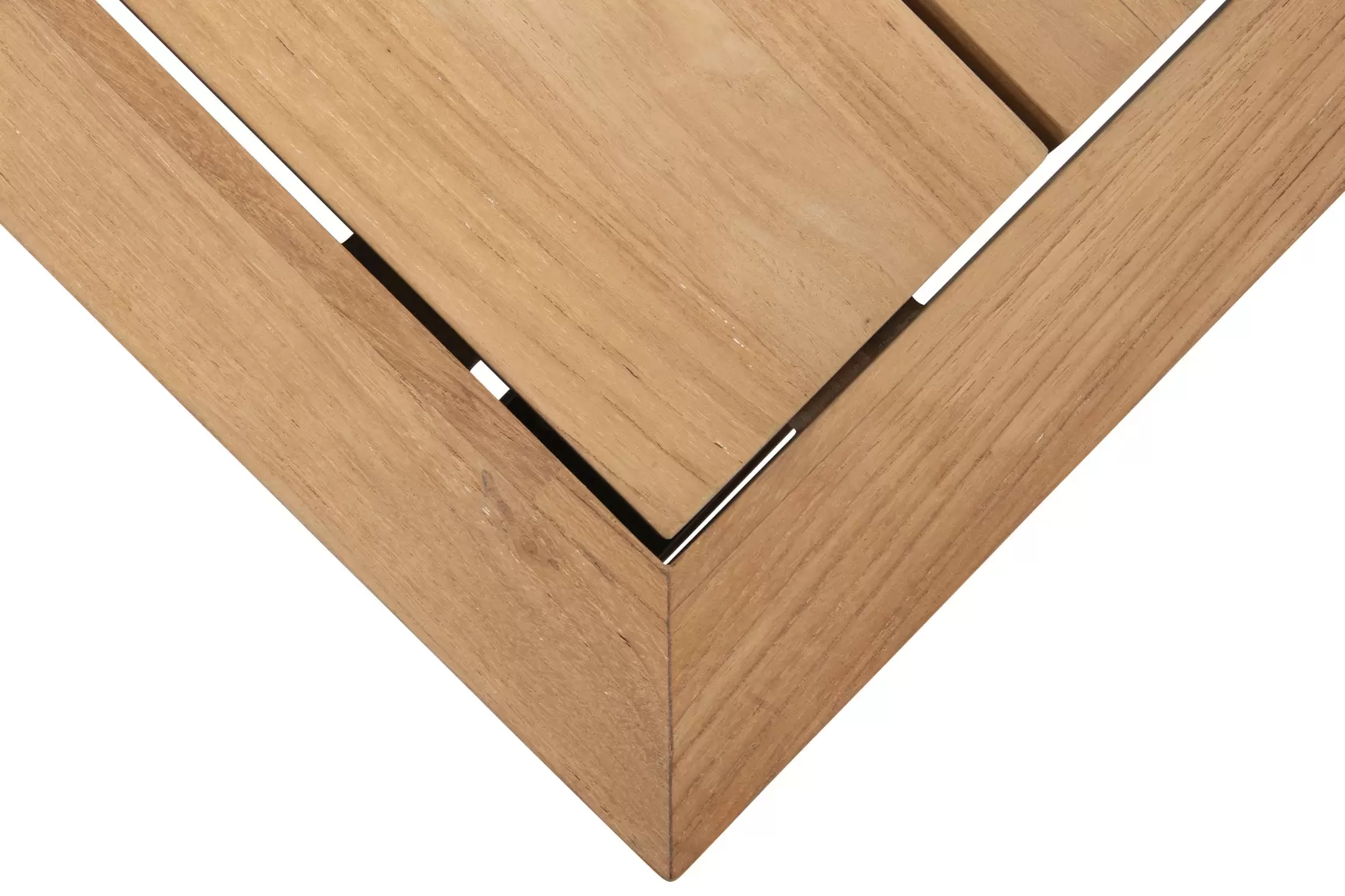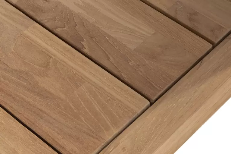 Zestaw został wyprodukowany z ekologicznego drewna tekowego certyfikowanego. Drewno tekowe doskonale nadaje się do użytku na zewnątrz i jest odporne na wpływy atmosferyczne. Zalecamy jednak regularną pielęgnację drewna w celu uzyskania pięknego wyglądu.