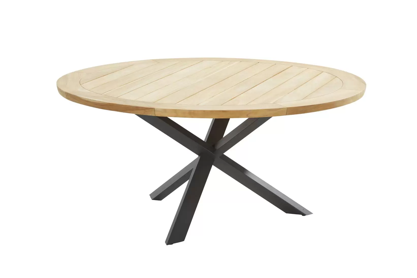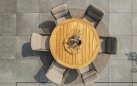 Stylowy i solidny stół jadalny PRADO 160 Taste by 4 Seasons ma podstawę z aluminium malowanego proszkowo lub podstawę teakową oraz blat z drewna tekowego o średnicy 160 cm.