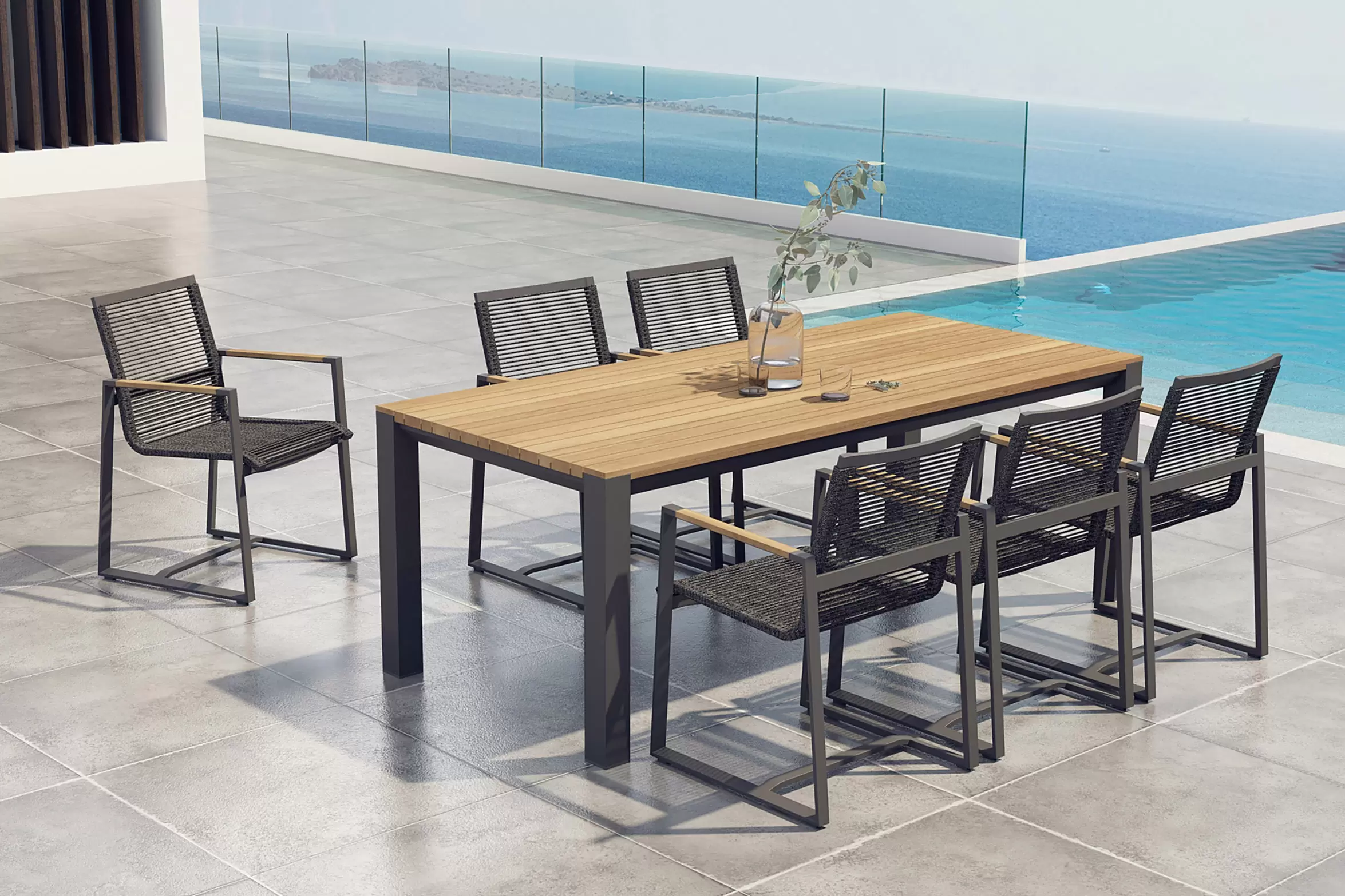 RIDGE Stół 220x95 aluminiowy z blatem teak