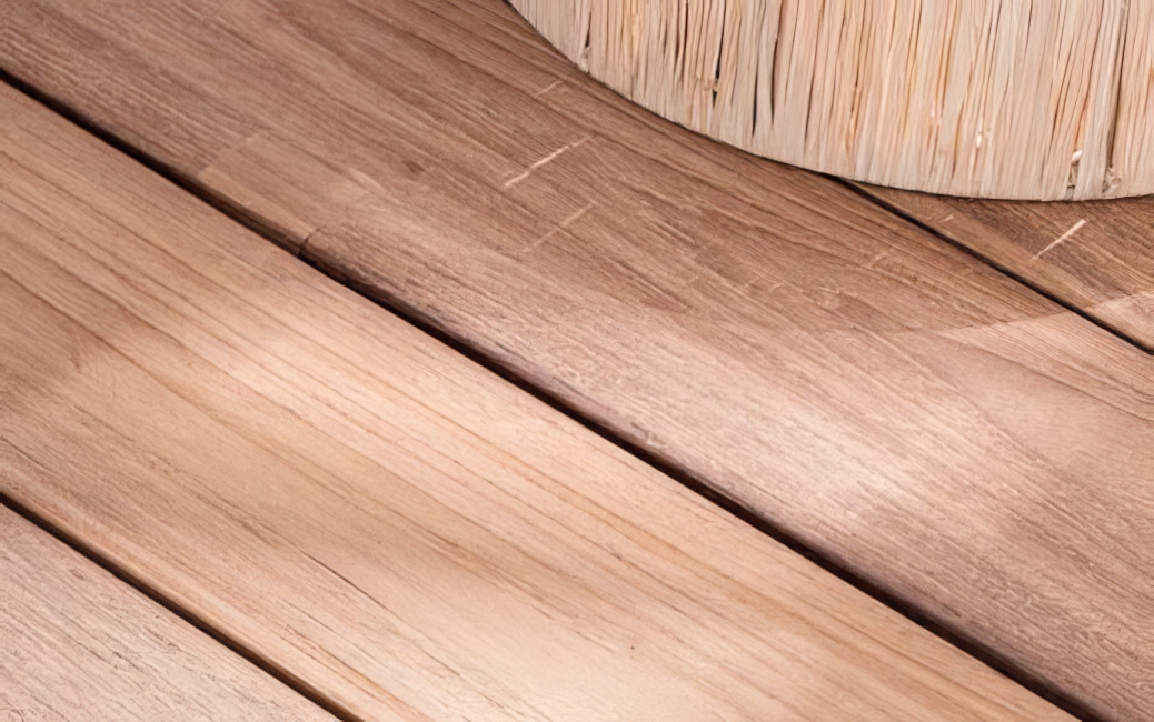 Drewno teakowe charakteryzuje się obecnością w drewnie kołków oraz przebarwień.