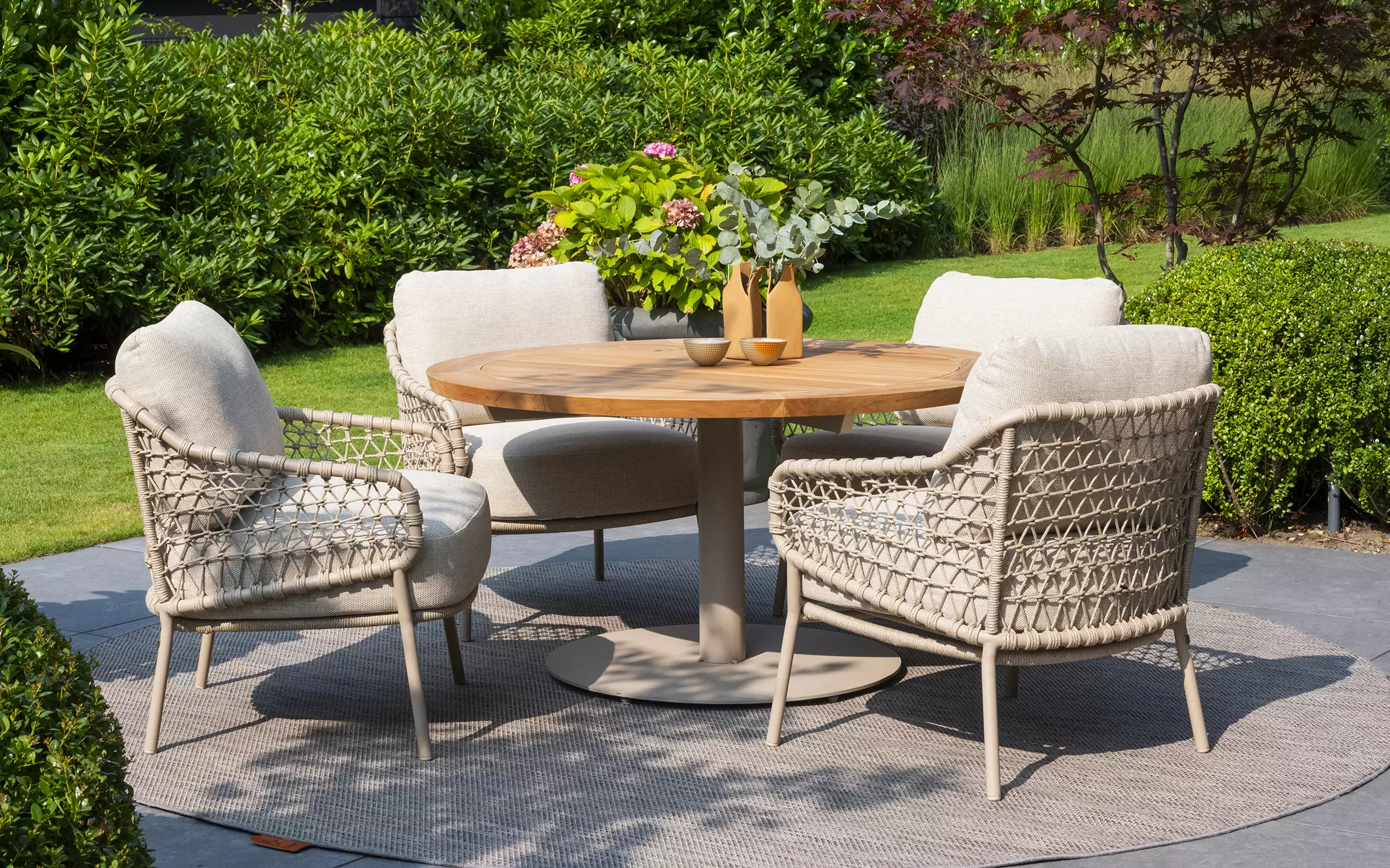 Ze względu na swoją określoną wysokość niski stół do jadalni można łączyć tylko z niskimi krzesłami do jadalni. Pomyśl o Protonie i/lub Calpi marki 4 Seasons Outdoor. W przypadku tych modeli stosunek jest idealny.
