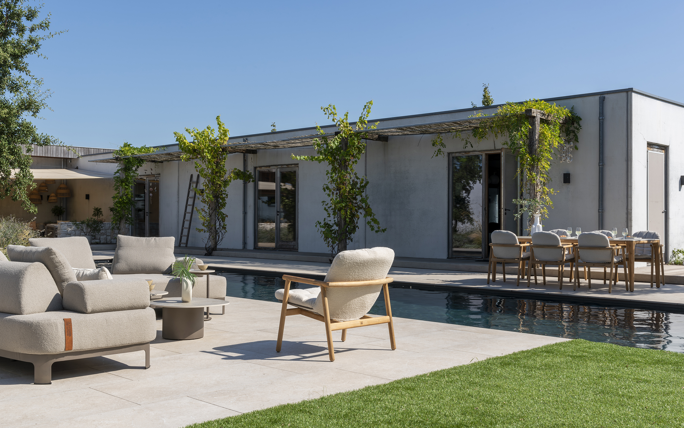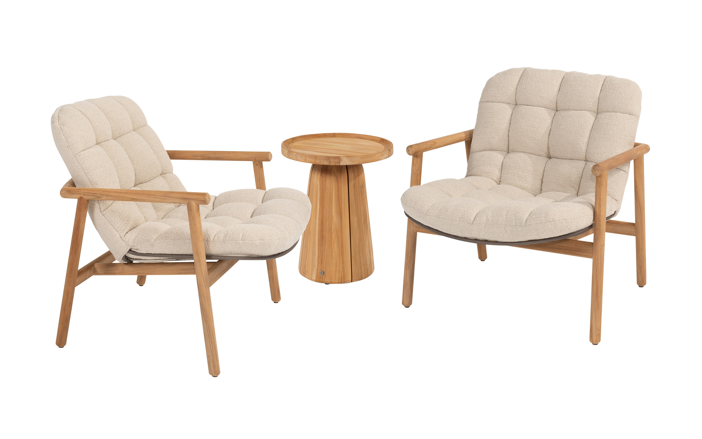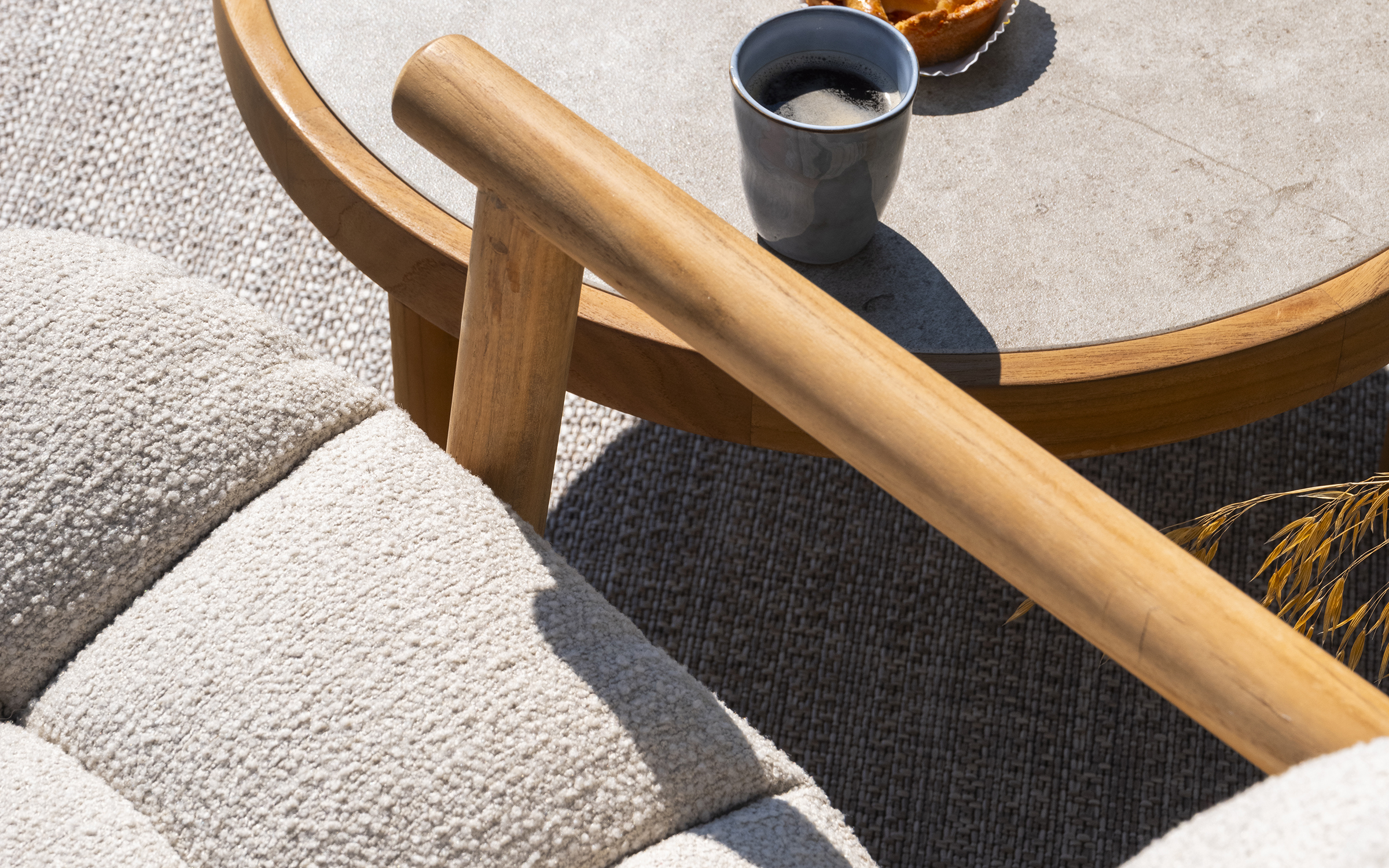 Zdejmowane poszewki obiciowe z materiału Boucle wyplecionego z odpornych na działanie UV i wody włókien polipropylenowych.