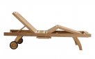 Leżak Skagen marki Hartman łączy naturalny urok drewna teakowego z funkcjonalnością regulowanego oparcia i części nożnej. Model można ustawić w pozycji całkowicie płaskiej. Wbudowany wysuwany stolik i kółka transportowe ułatwiają wygodne użytkowanie przy basenie, na tarasie i w ogrodzie.
