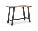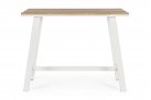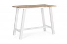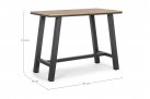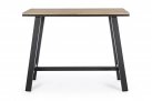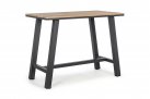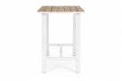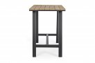 Stół barowy o konstrukcji aluminiowej z blatem aluminiowym pokrytym powłoką imitującą drewno.