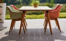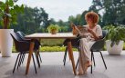 Stół SOPHIE 170 marki Hartman to elegancki model jadalniany wykonany z litego drewna teakowego. Charakterystycznym detalem są aluminiowe obręcze przy górnej części nóg, dostępne w trzech wariantach kolorystycznych: antracyt, biały oraz szary. Naturalny teak jest odporny na warunki atmosferyczne i z czasem szlachetnie patynuje, zachowując trwałość i urok przez wiele sezonów. Stół doskonale komponuje się z kolekcjami krzeseł SOPHIE, tworząc spójną i nowoczesną przestrzeń jadalnianą w ogrodzie lub na tarasie.