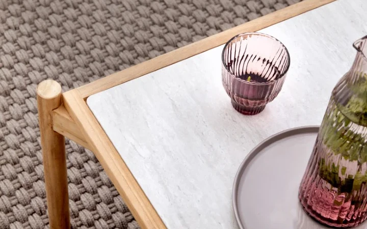 Blat stolików ceramiczny – estetyczny, odporny na zarysowania i warunki atmosferyczne.